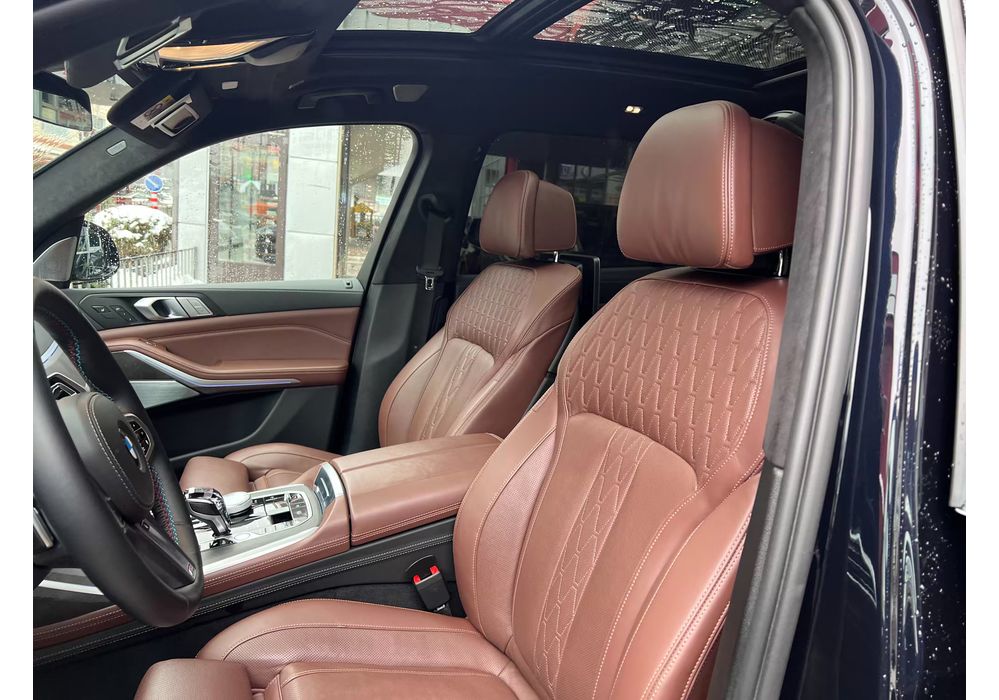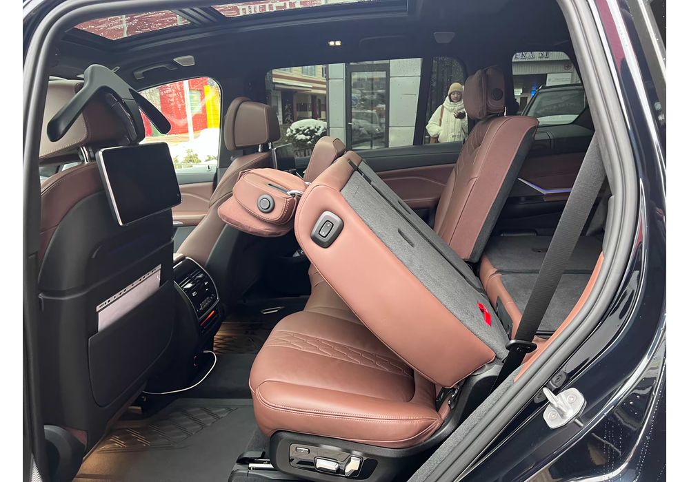 Стандартне оснащення «Ікс-сьомого» включає обробку салону шкірою Vernasca, автоматичний 4-зонний клімат-контроль, трисекційний панорамний дах і пакет освітлення з функціями Welcome Light Carpet і Dynamic Interior Light. Серед ключових елементів списку додаткового устаткування: 5-зонний автоматичний клімат-контроль, іонізатор і ароматизатор повітря, панорамний дах Sky Lounge, елементи управління зі скляною обробкою, стереосистема Bowers & Wilkins Diamond Surround Sound System і розважальна система Professional для пасажирів другого і третього ряду. Крім цього дизайн екстер'єру та інтер'єру можна кастомизировать в рамках лінії оснащення Design Pure Excellence, пакета M Sport і опцій BMW Individual.