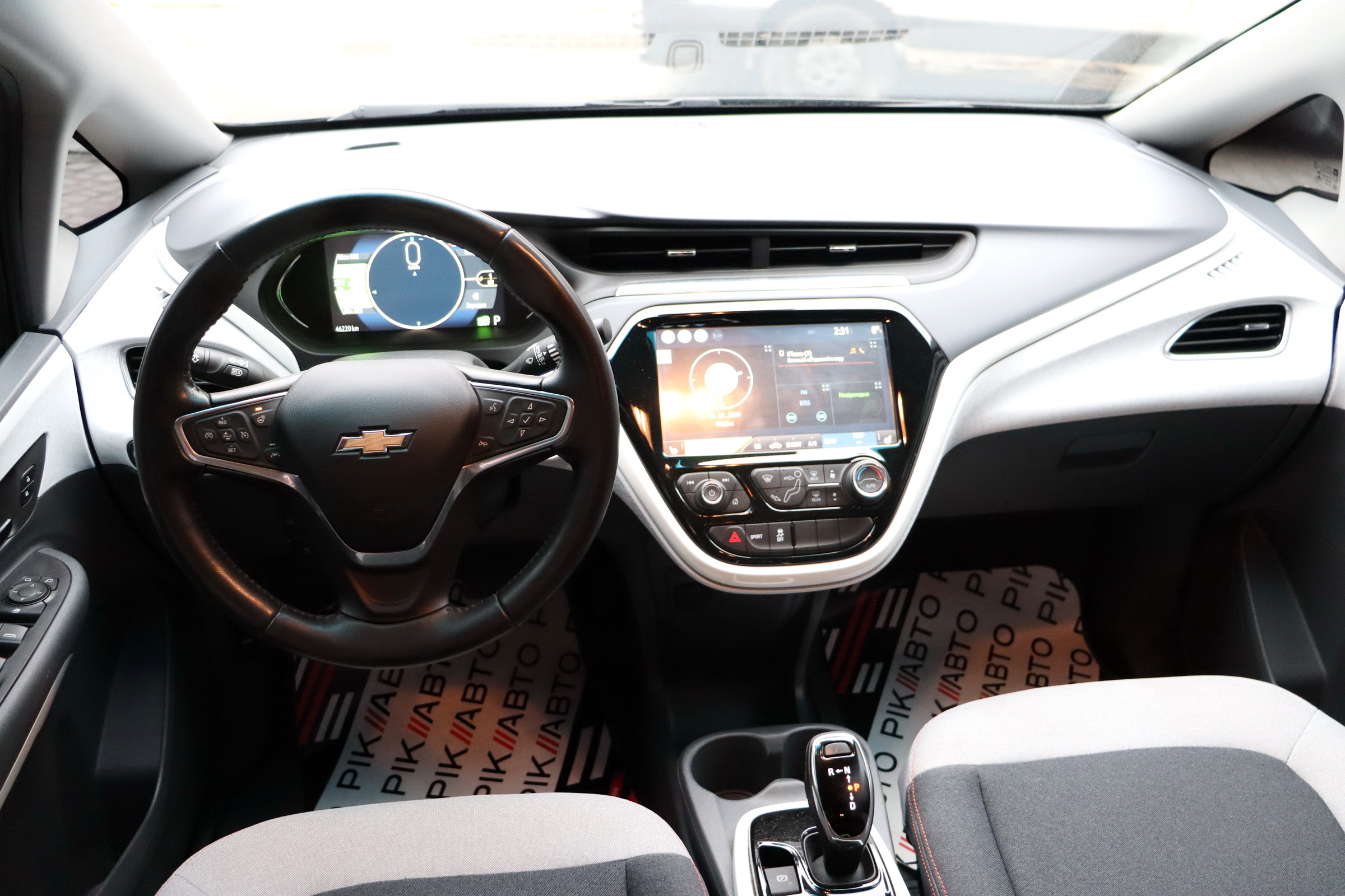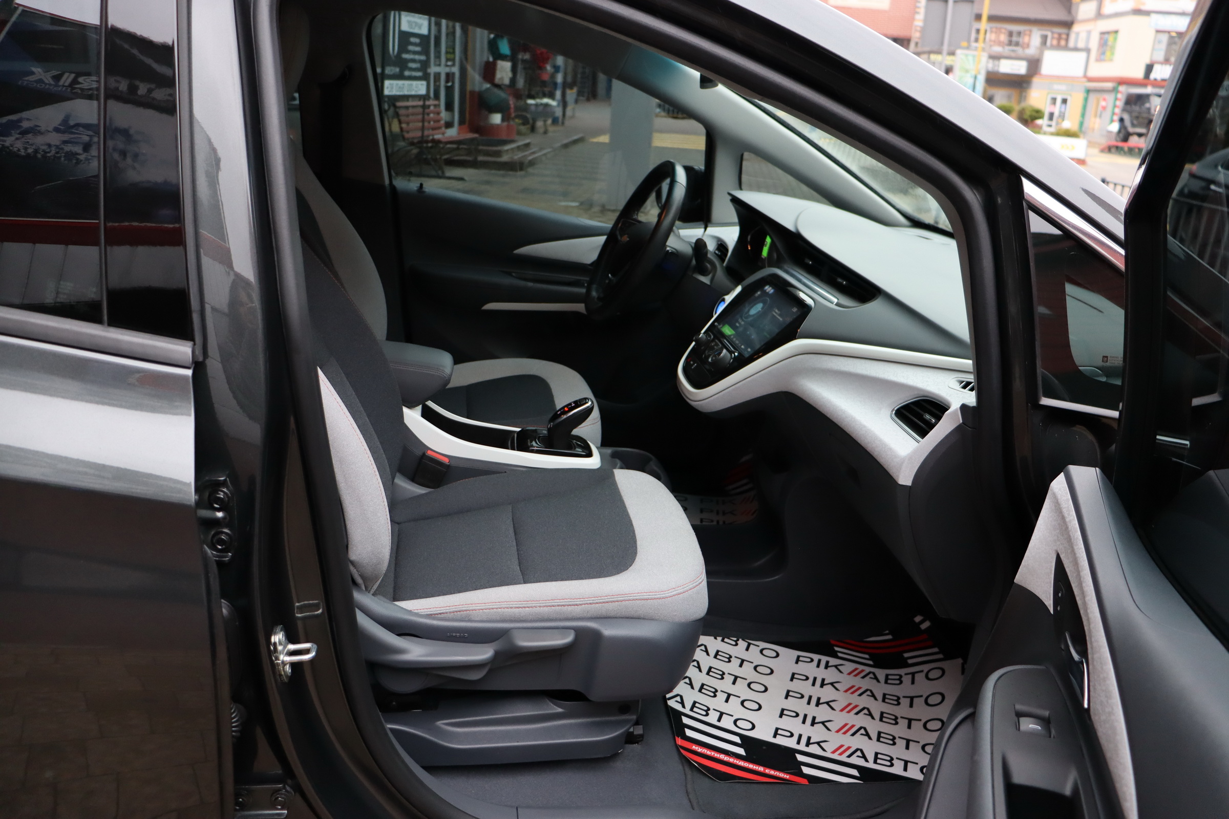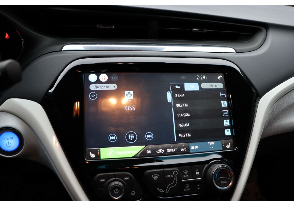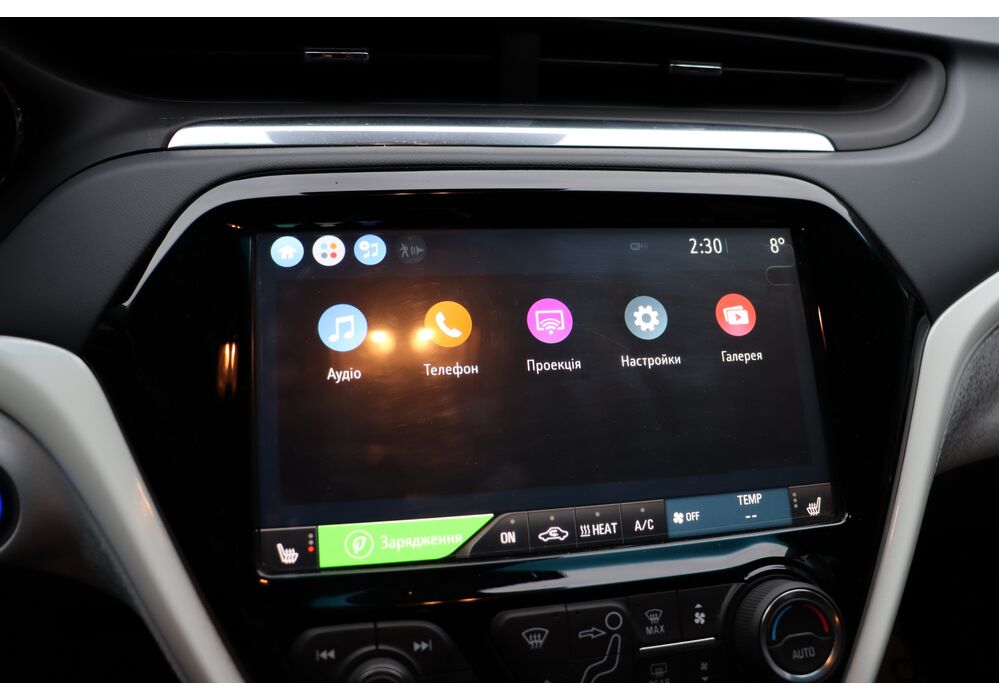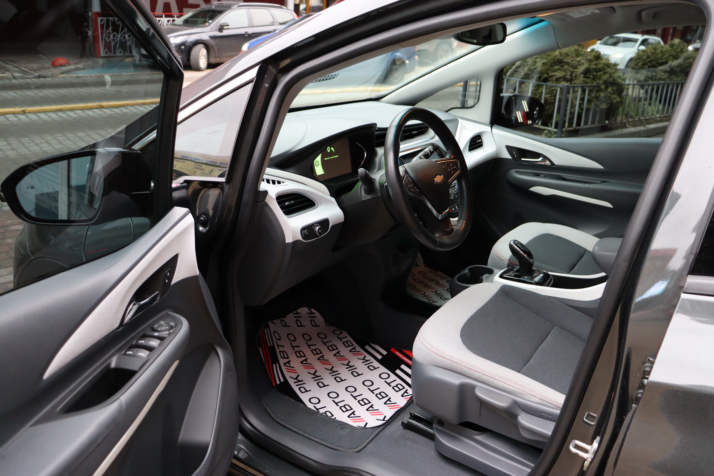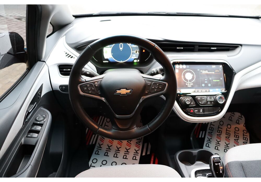 На центральній консолі Шевроле Болт EV розмістився 10,2-дюймовий сенсорний екран мультімедійкі MyLink з підтримкою установки додатків, навігацією з можливістю прокладки оптимального маршруту і зазначенням всіх зарядних станцій по близькості тощо. Є також камери кругового огляду, дистанційний запуск двигуна і функція попереднього кондиціонування салону.