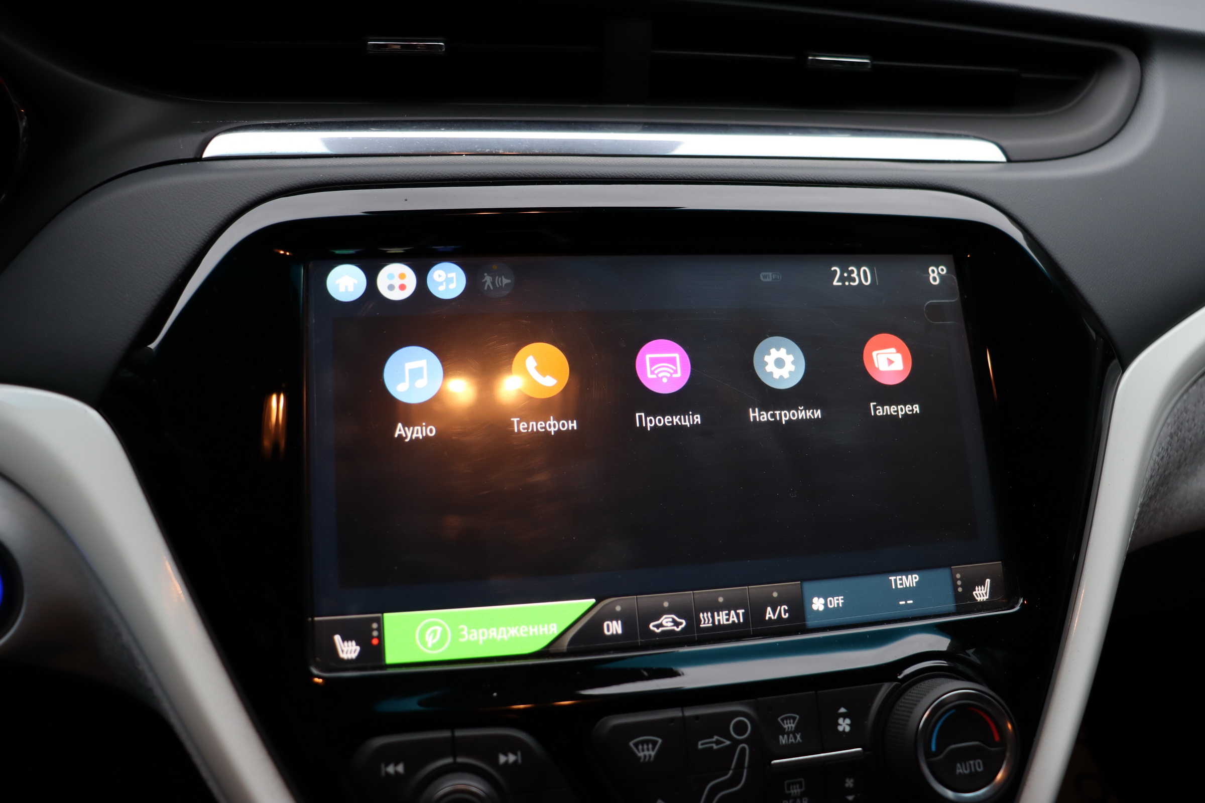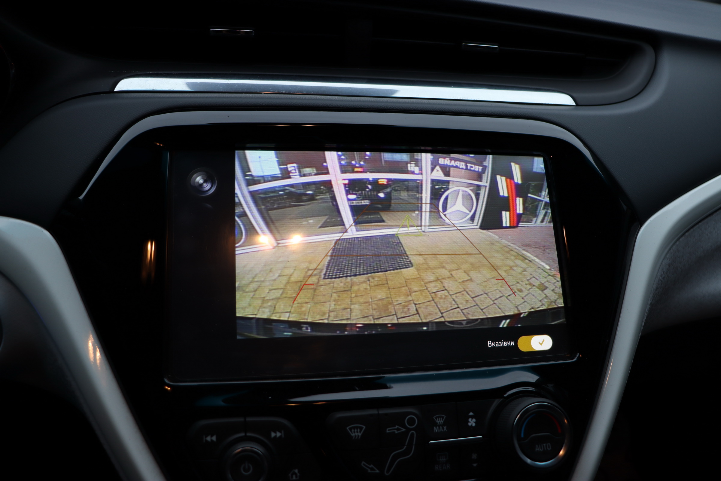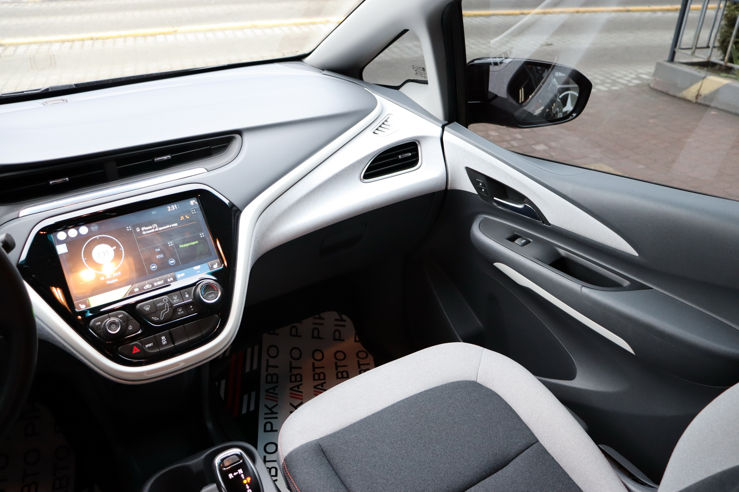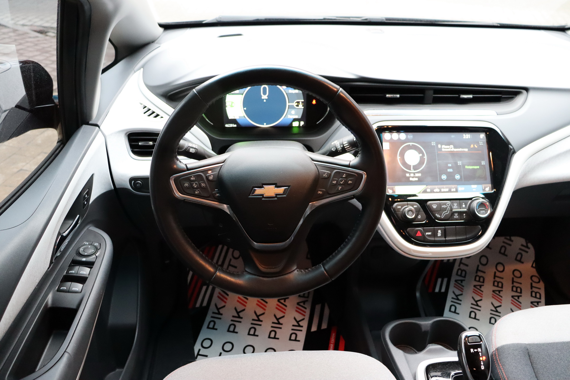 На центральній консолі Шевроле Болт EV розмістився 10,2-дюймовий сенсорний екран мультімедійкі MyLink з підтримкою установки додатків, навігацією з можливістю прокладки оптимального маршруту і зазначенням всіх зарядних станцій по близькості тощо. Є також камери кругового огляду, дистанційний запуск двигуна і функція попереднього кондиціонування салону.