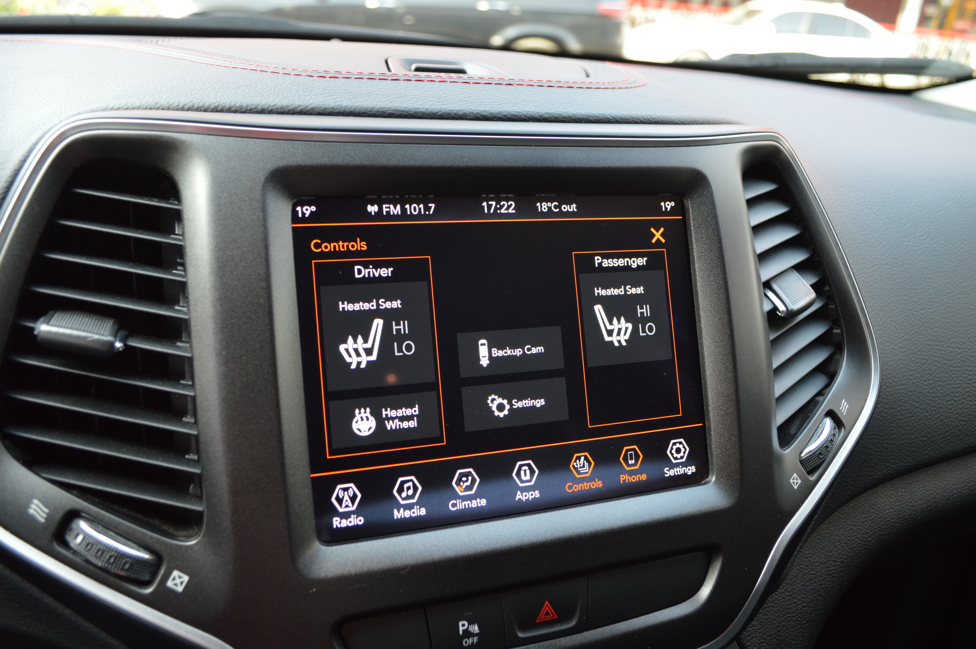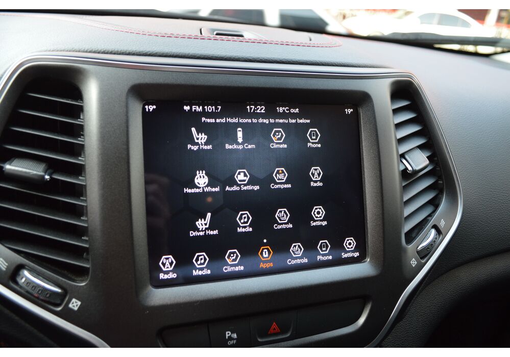 П'яте покоління Cherokee (презентоване до 2014-го модельного року) відрізнялося дуже нестандартним зовнішнім виглядом - передня оптика була «розподілена» за двома рівнями, внаслідок чого верхні фари були вже дуже вузькими, створюючи агресивний зовнішній вигляд. Таке оформлення стало приводом для критики, тому рестайлінг торкнувся головним чином саме передньої частини автомобіля - решітка радіатора зміщена трохи вниз, щоб виділити простір для більш широких фар, в яких світлодіоди (базове оснащення), покажчики поворотів і світлодіодні денні ходові вогні вміщено в єдиному блоці .