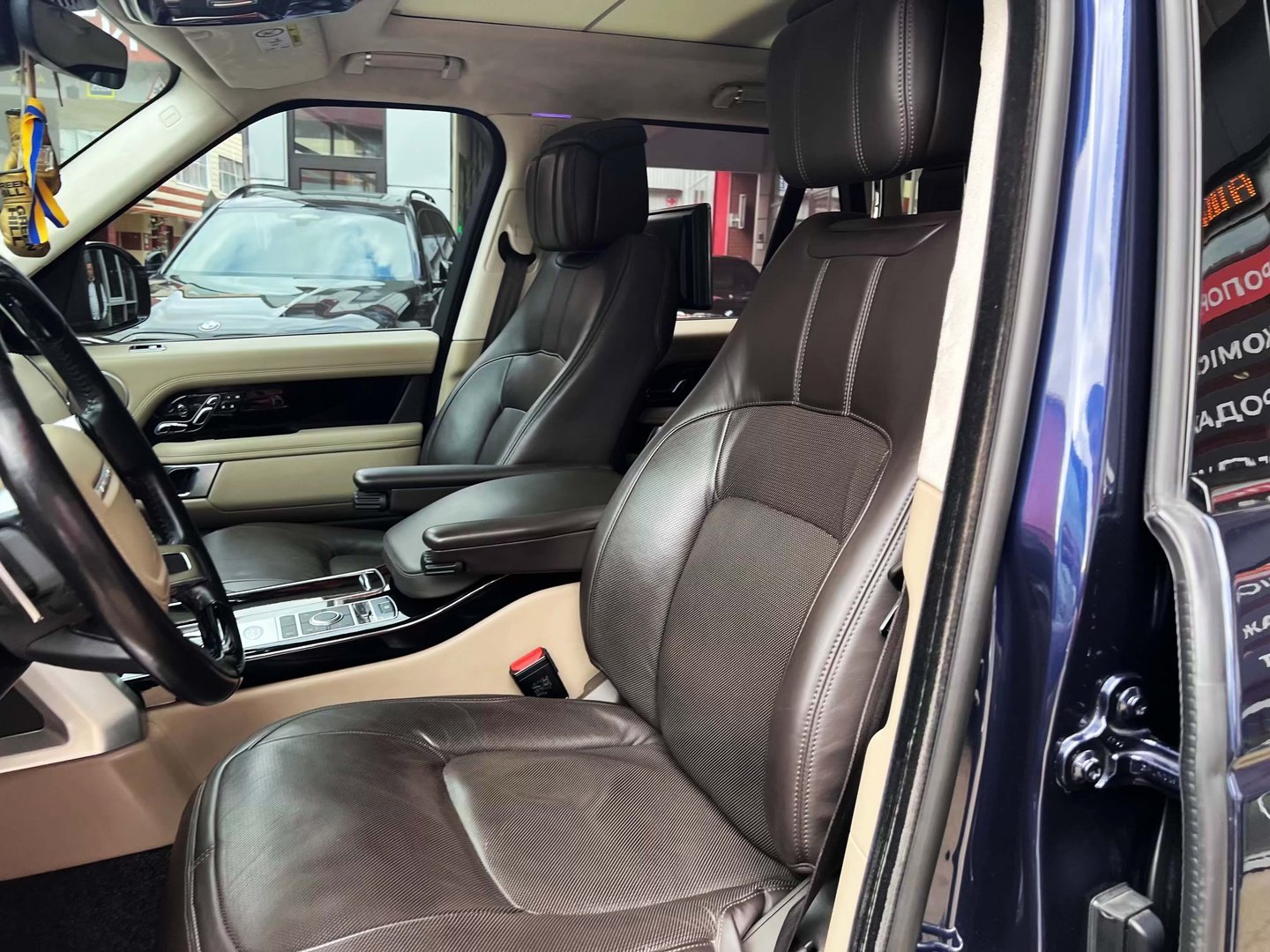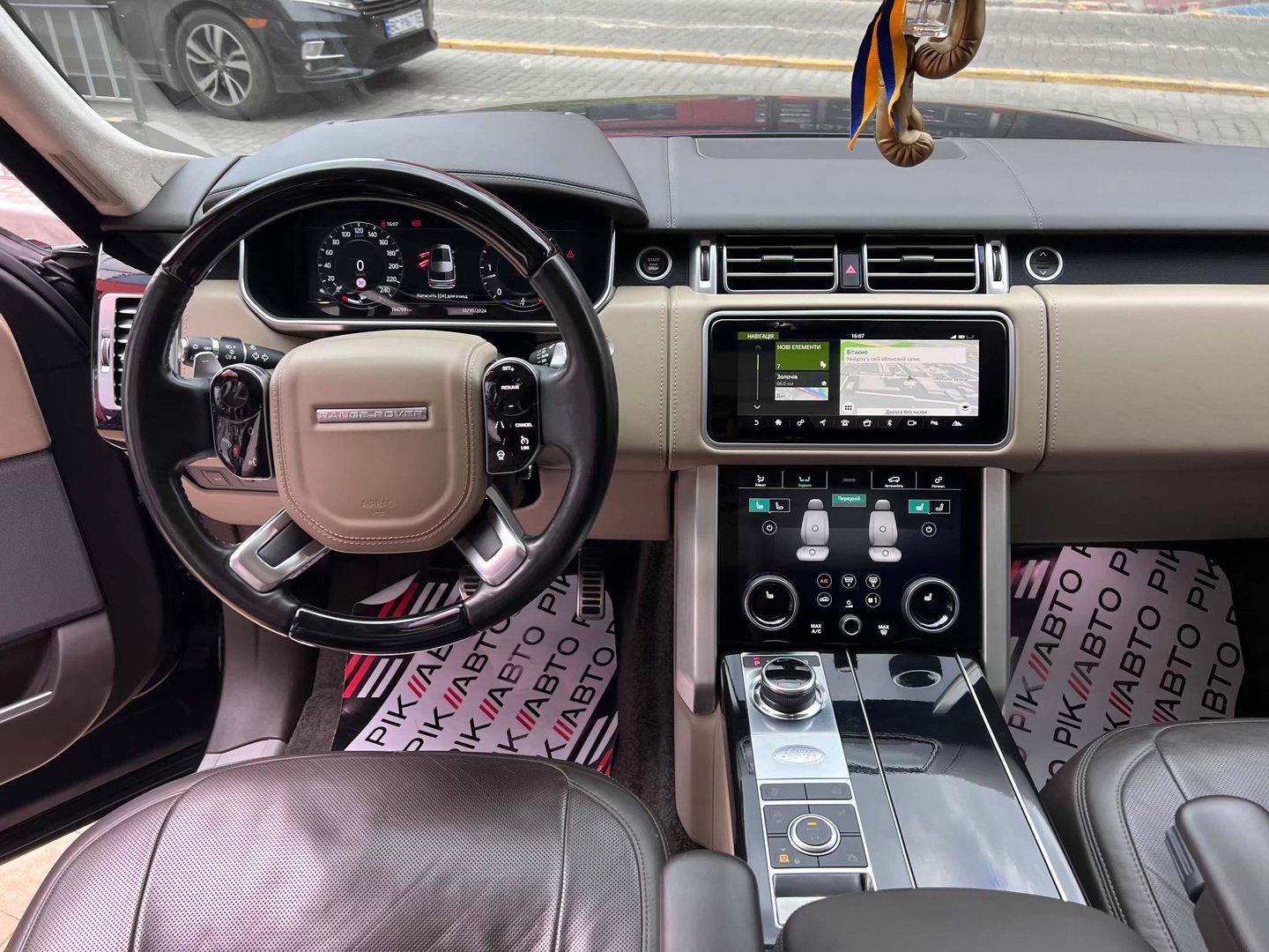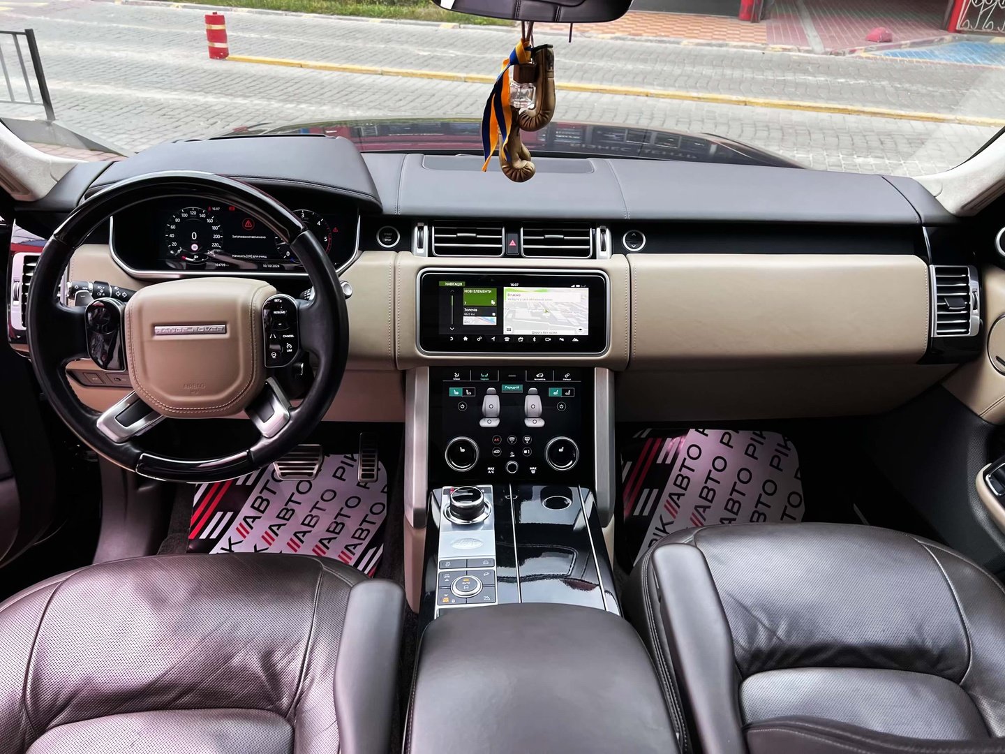 У салоні Range Rover - нове торпедо з сенсорної центральною консоллю, яка відповідає за настройки клімату і підвіски, обігрів сидінь, функції масажу та інші "фішки". Над нiй прописався 10-дюймовий екран, що виводить меню мультимедіа, навігаційні карти і картинки з камер кругового огляду. Ну а перед водієм облаштована нова цифрова "приборка" з поліпшеною графікою.