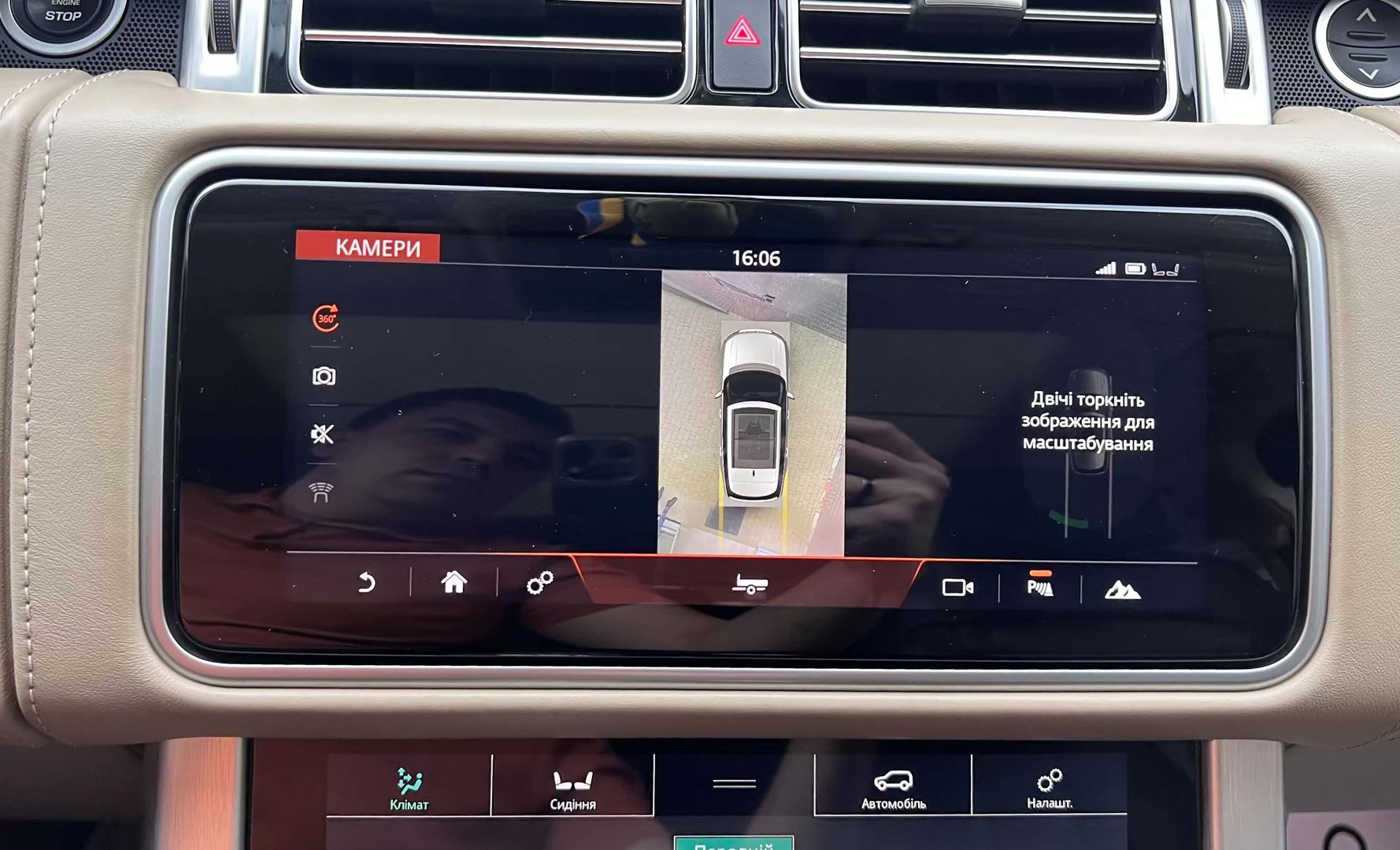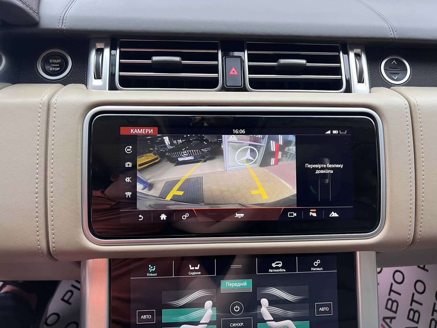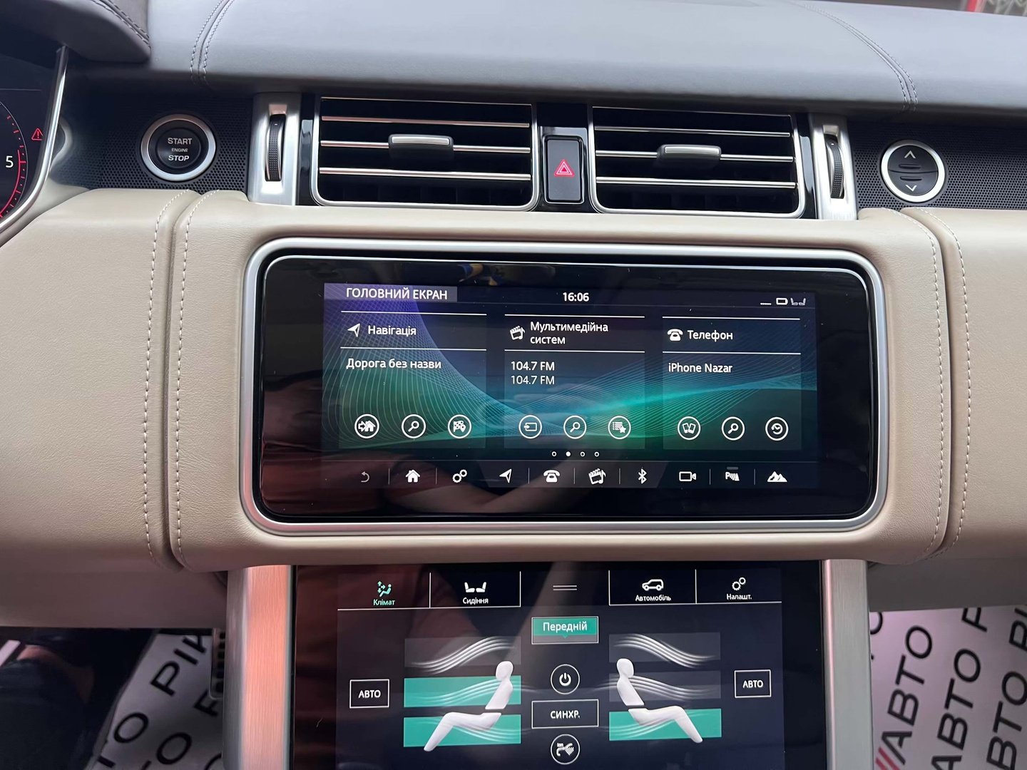 У салоні Range Rover - нове торпедо з сенсорної центральною консоллю, яка відповідає за настройки клімату і підвіски, обігрів сидінь, функції масажу та інші "фішки". Над нiй прописався 10-дюймовий екран, що виводить меню мультимедіа, навігаційні карти і картинки з камер кругового огляду. Ну а перед водієм облаштована нова цифрова "приборка" з поліпшеною графікою.
