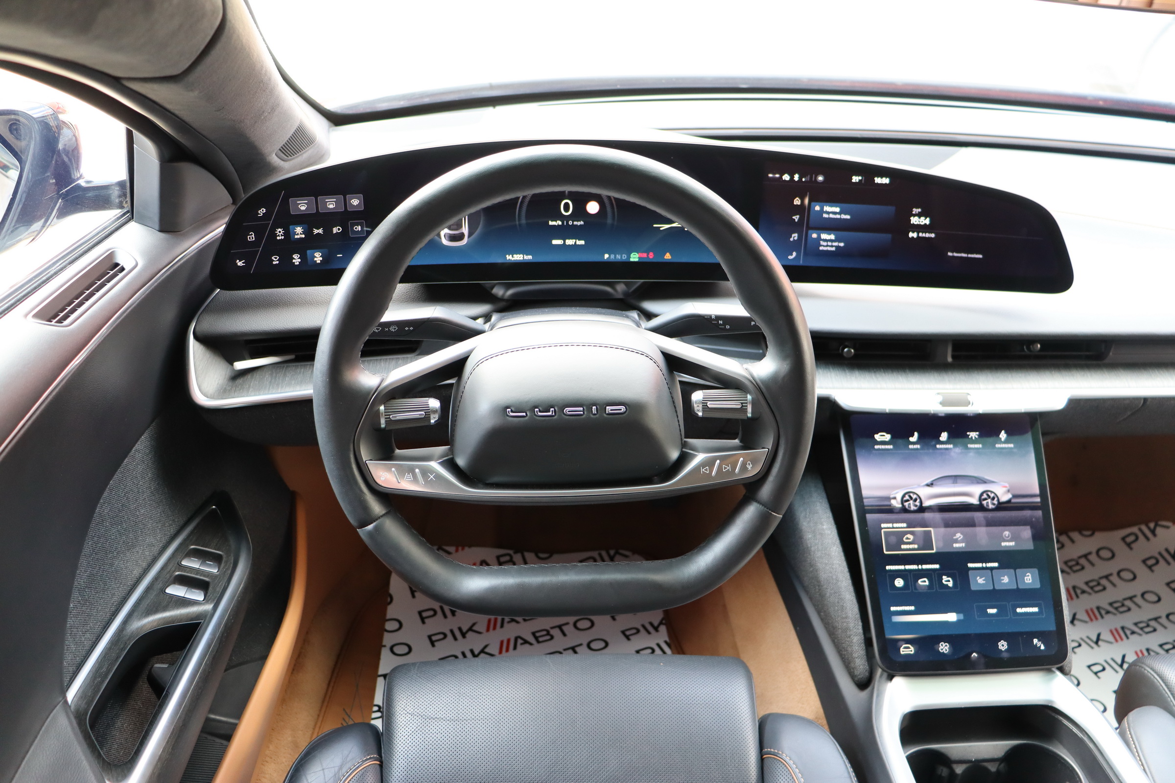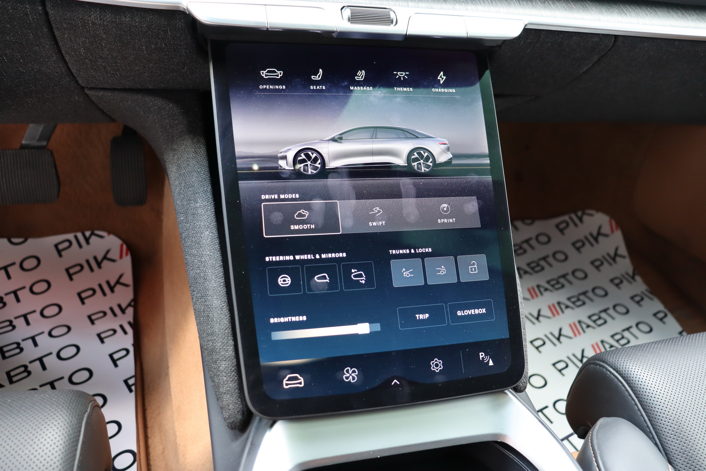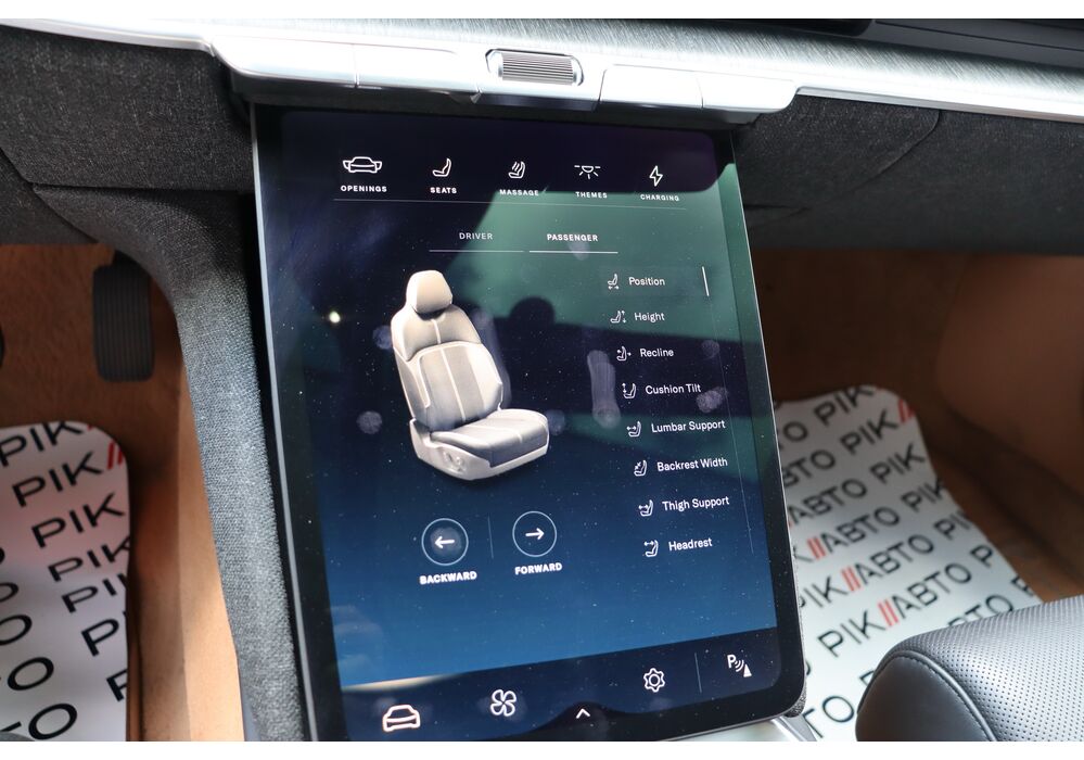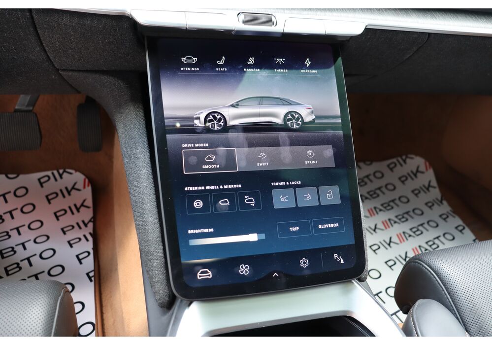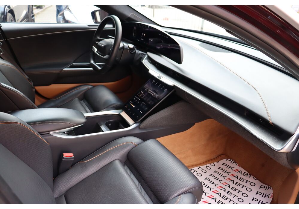 У салоні люксового електрокара встановлюється OLED-дисплей діагоналлю 34 дюйми з роздільною здатністю 5К, а також невеликий тачскрин, що забирається. Водію доступна система швидкого заряджання батарей, а також просунутий автопілот третього рівня.