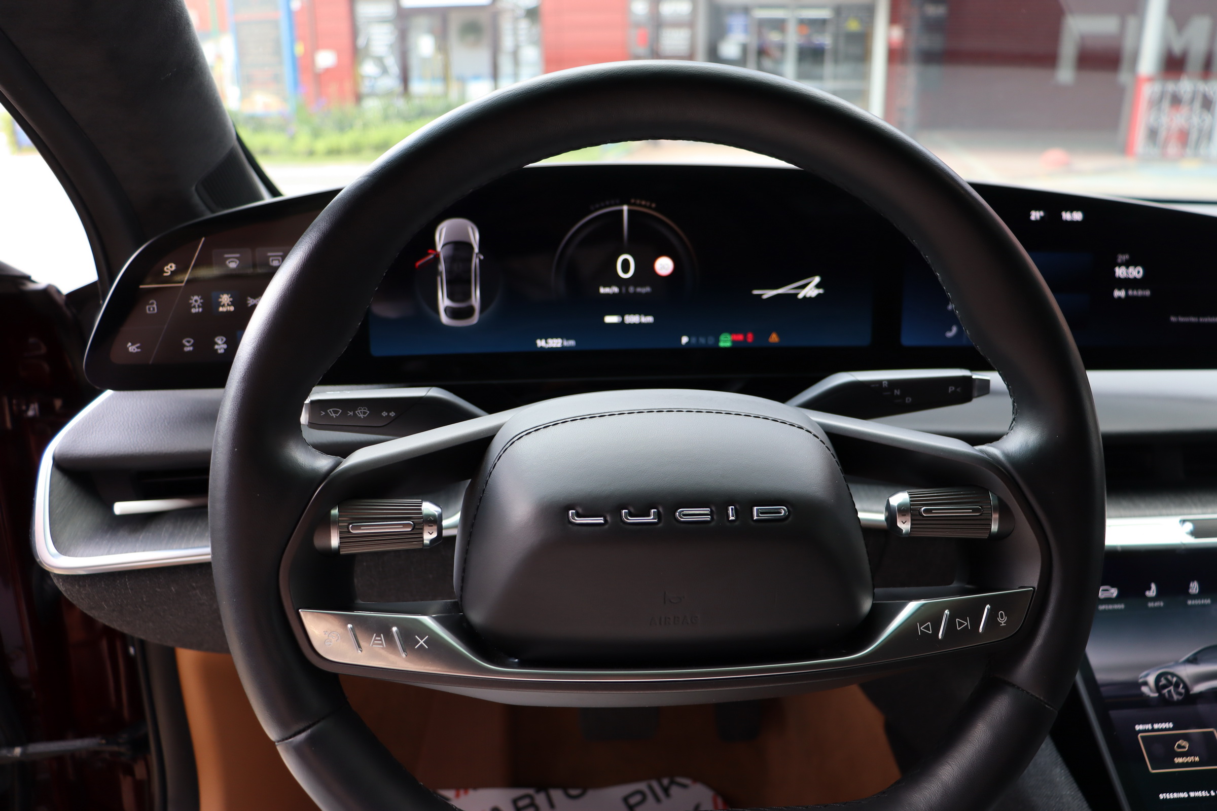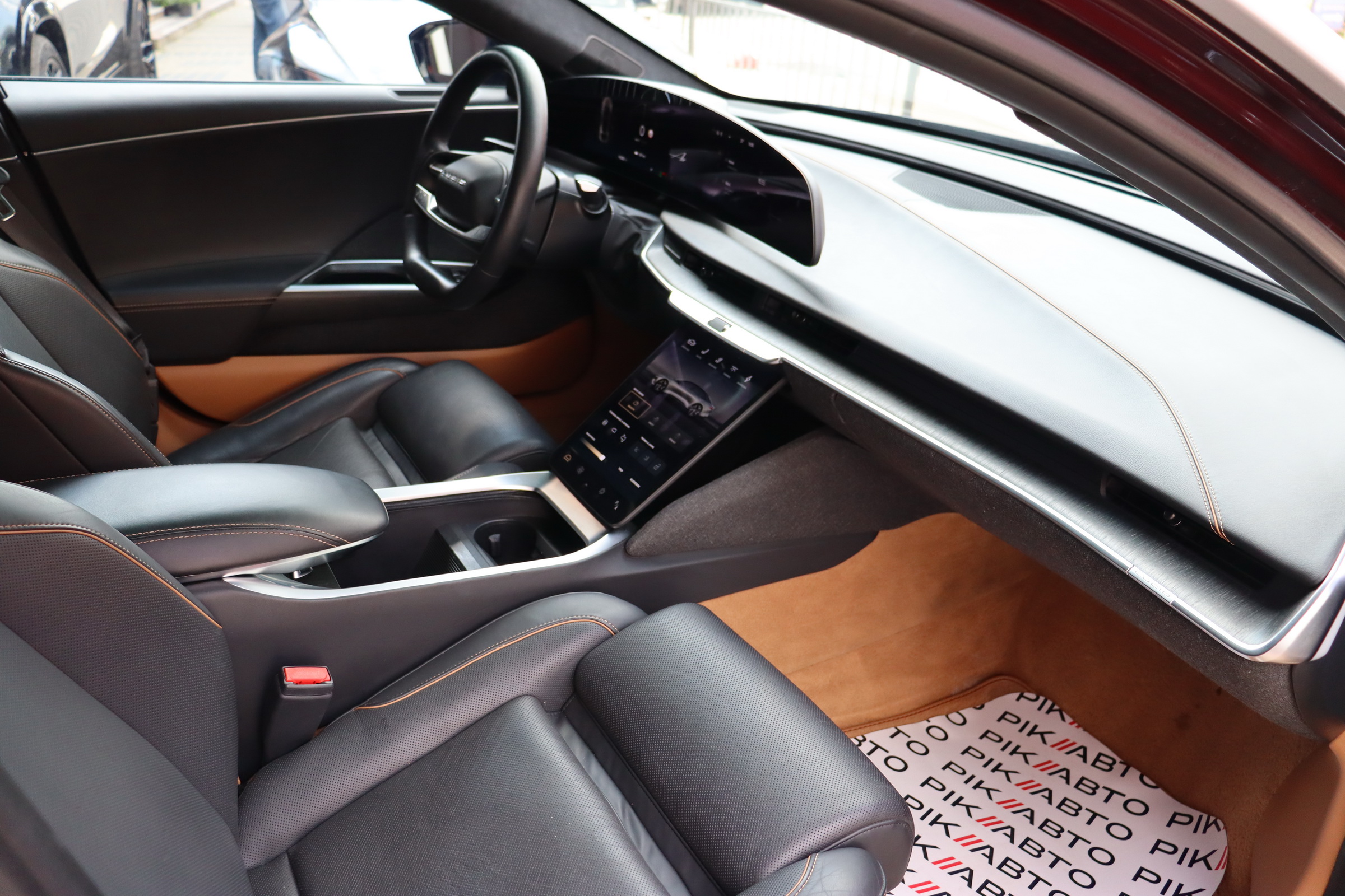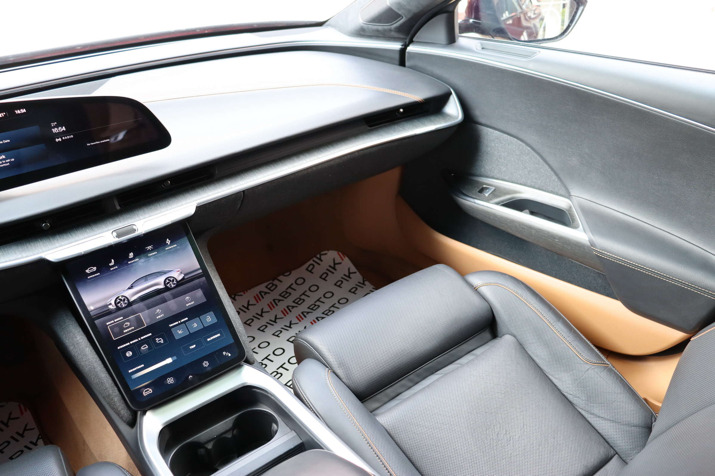 У салоні люксового електрокара встановлюється OLED-дисплей діагоналлю 34 дюйми з роздільною здатністю 5К, а також невеликий тачскрин, що забирається. Водію доступна система швидкого заряджання батарей, а також просунутий автопілот третього рівня.