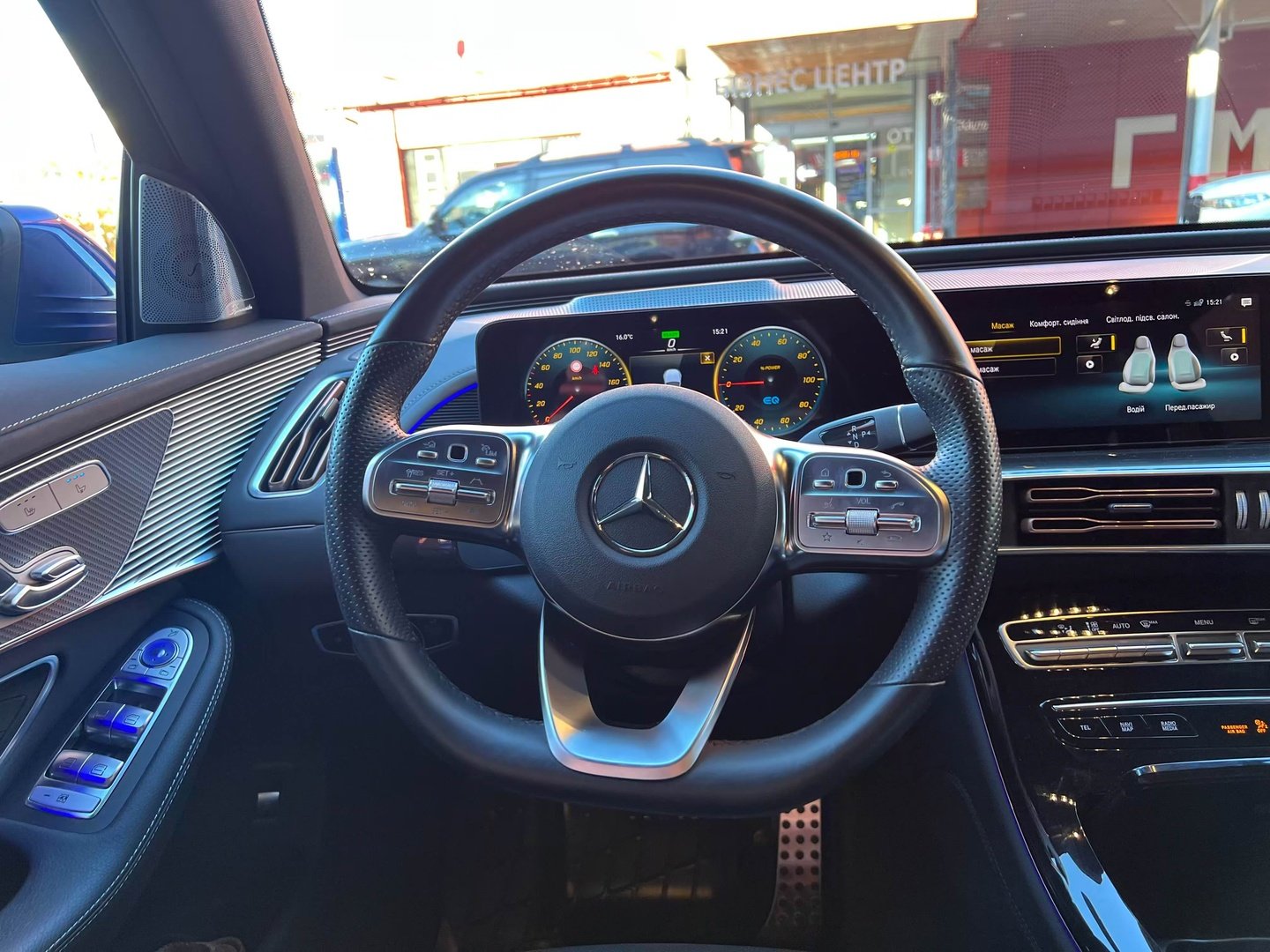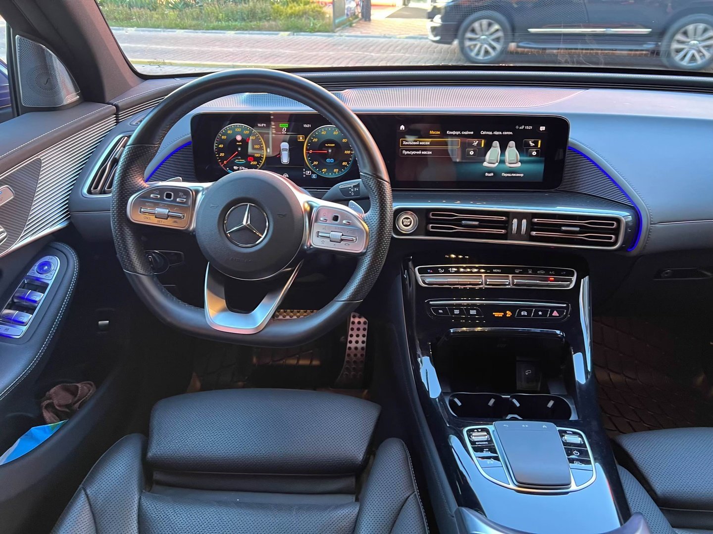 Взятий нами на тест електрокросовер був в спецверсії Edition 1886 році, що має на увазі R20-дюймові легкосплавні колеса, світлодіодну головну оптику Multibeam LED і салону Electric Art. До цього також додалися: пакет Energizing і забарвлення кузова в колір металік. А ще бічні підніжки і мультимедійна система MBUX, що включає навігацію з доповненою реальністю, що підвищило цінник автомобіля до 95 500 євро.