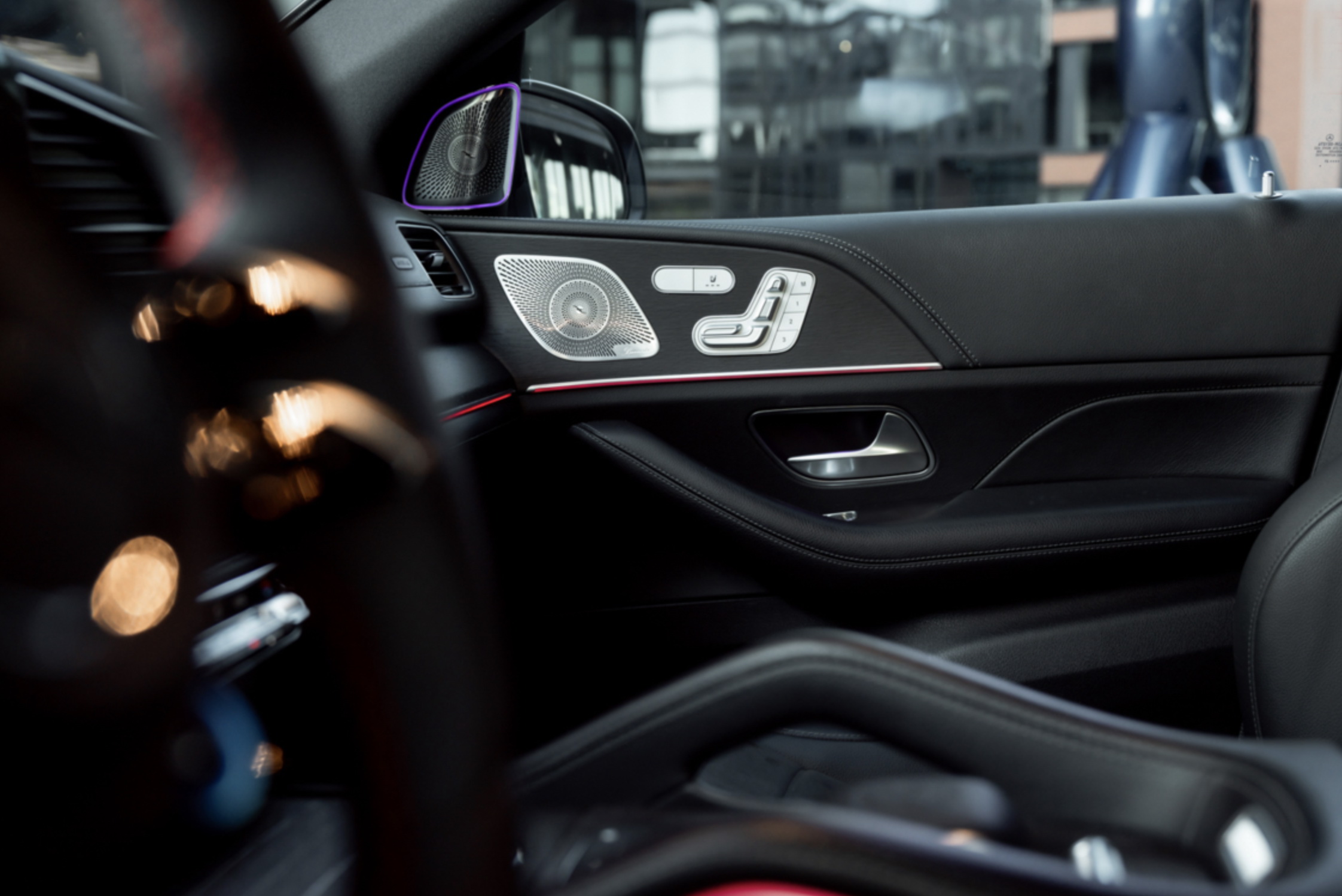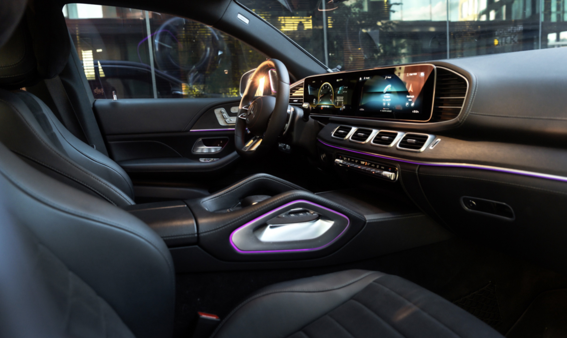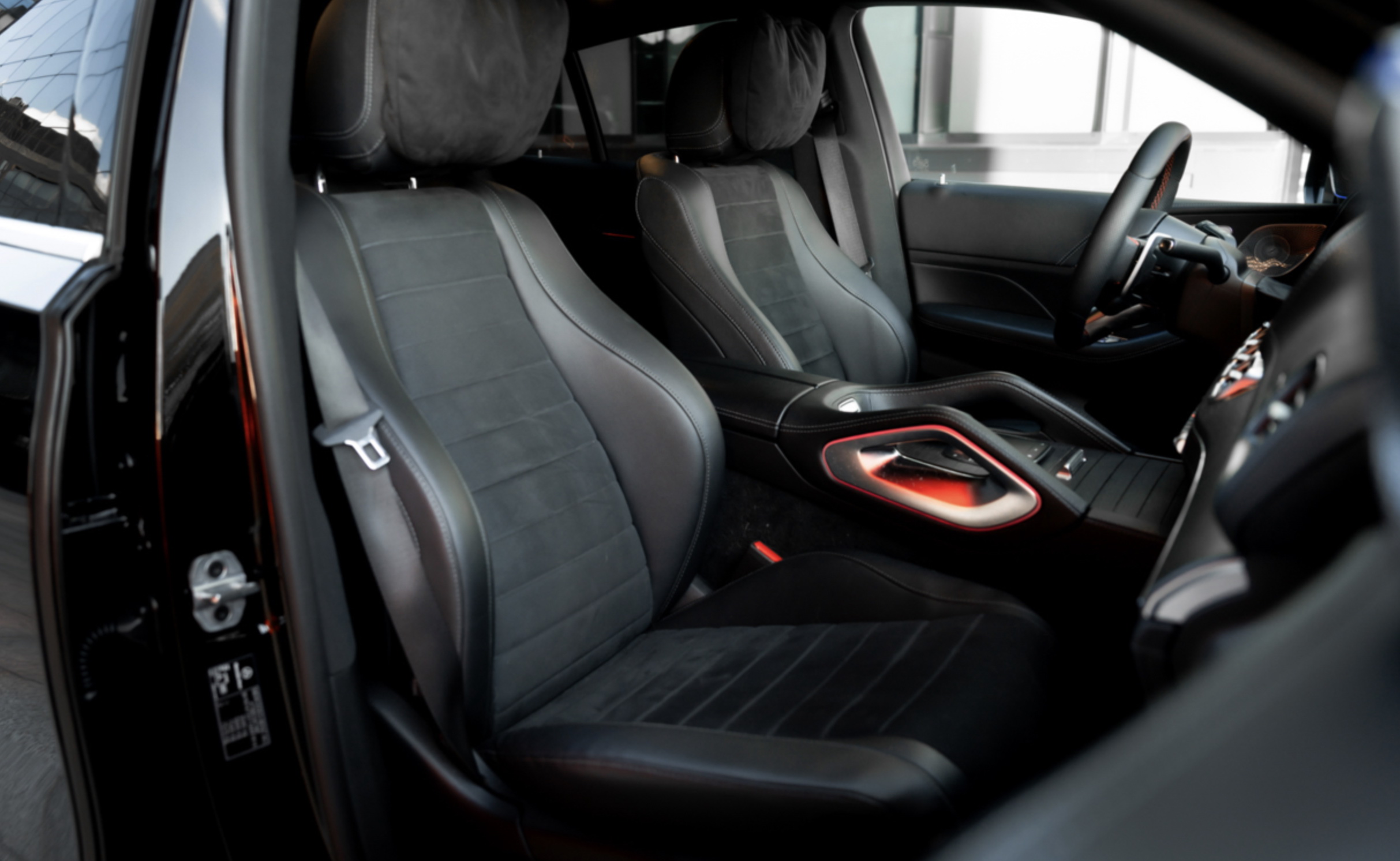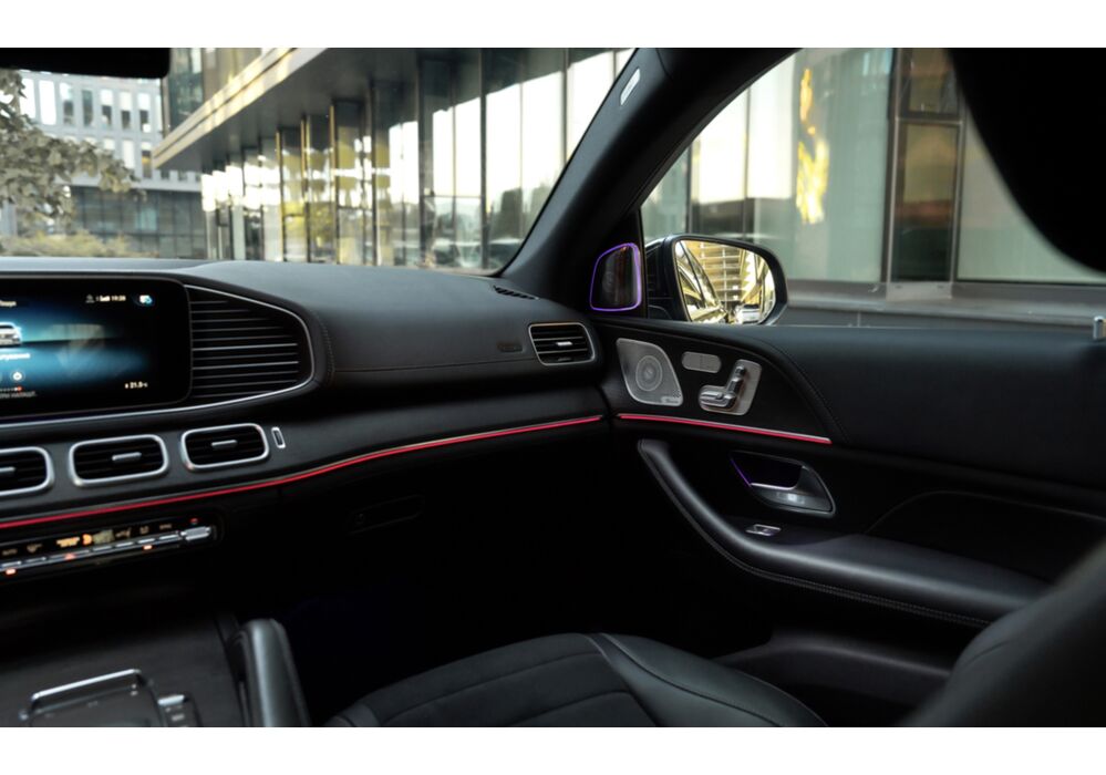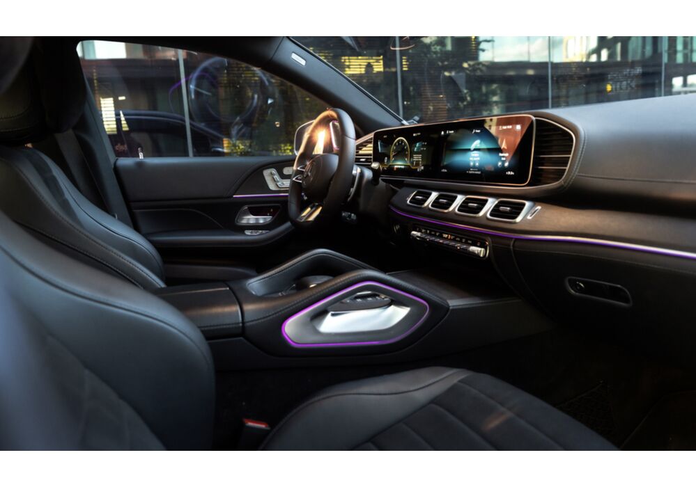 Інтер'єр виконаний в стилі звичайного GLE з віртуальної приборки і дисплеєм мультимедіа на єдиної консолі. Екрани мають розмір до 12,3 дюйма. Крісла з поліпшеною бічною підтримкою входять в "базу", так само як і особливий декор. А ще обробка стала багатшою. Наприклад, передня панель спочатку обшита штучною шкірою, тоді як у родича це опція.
