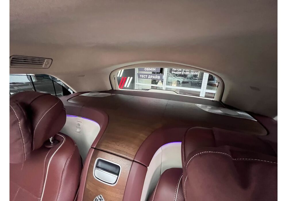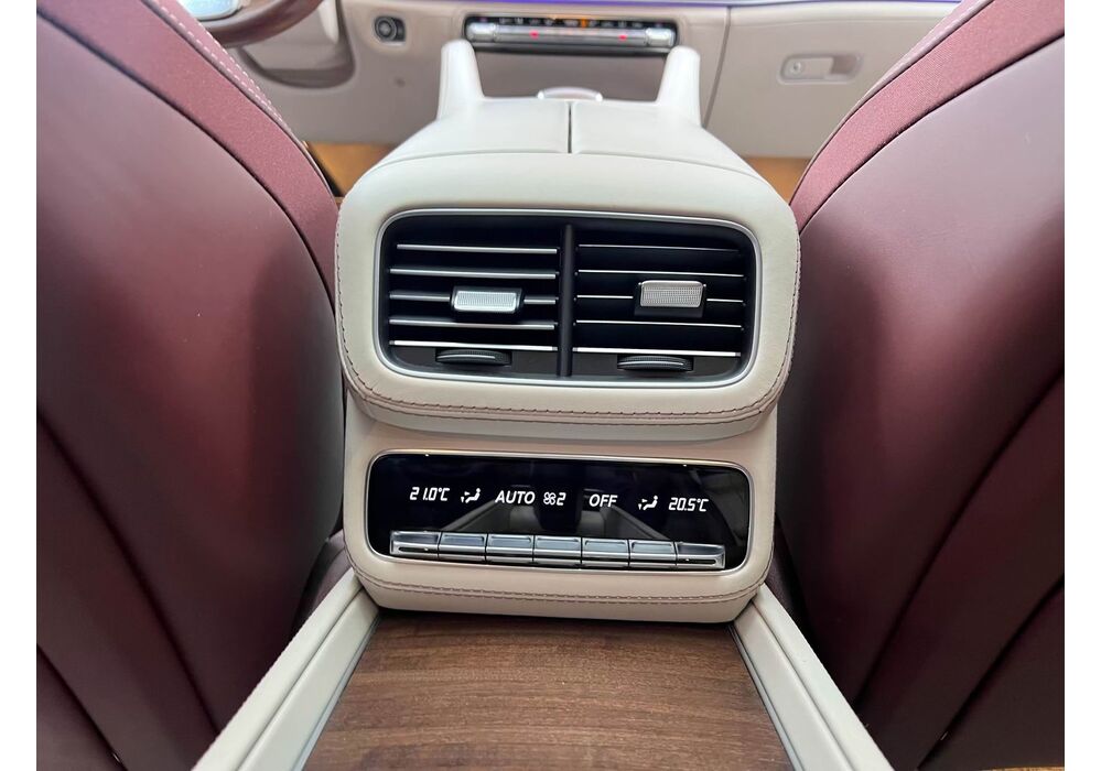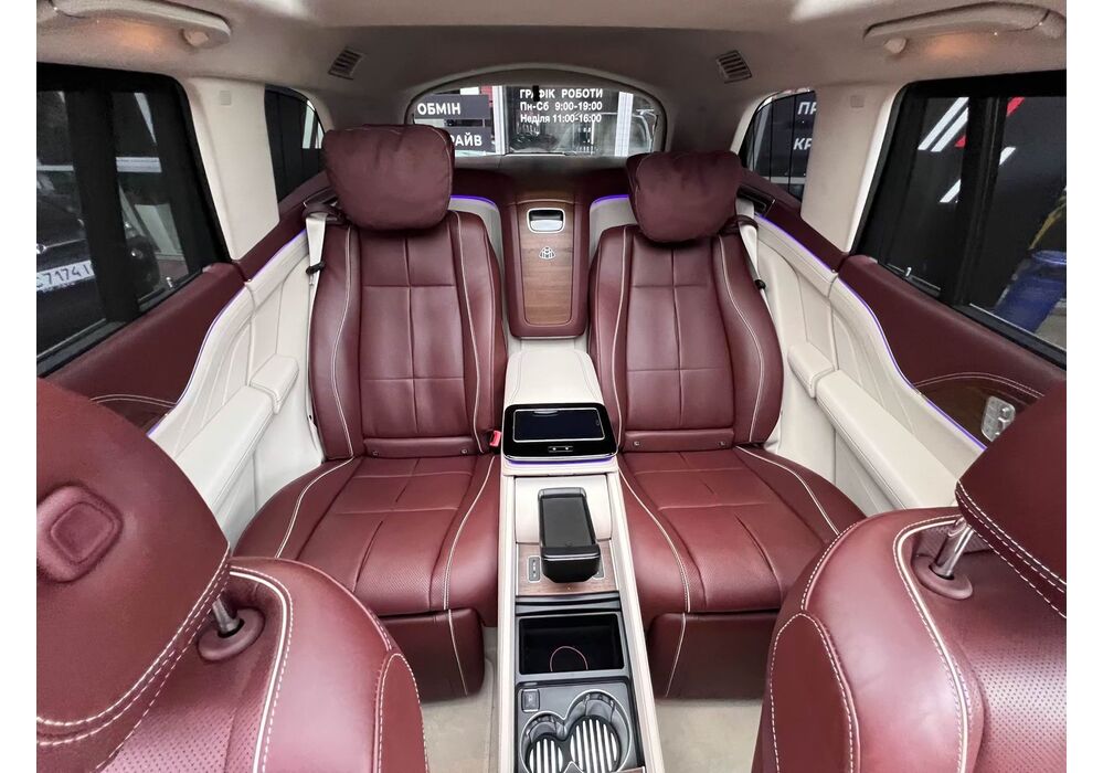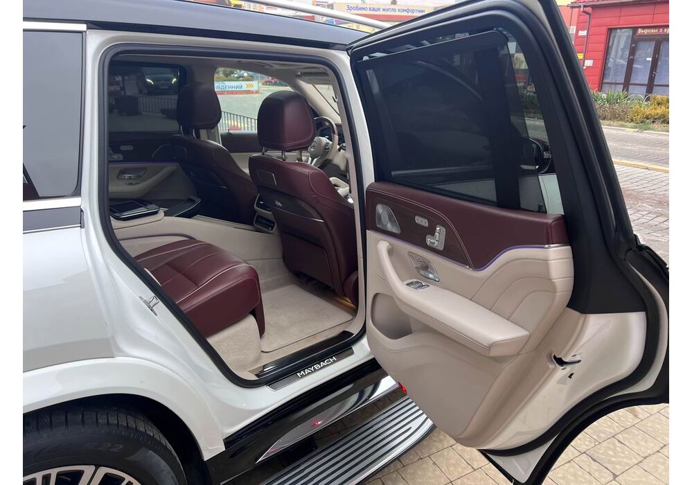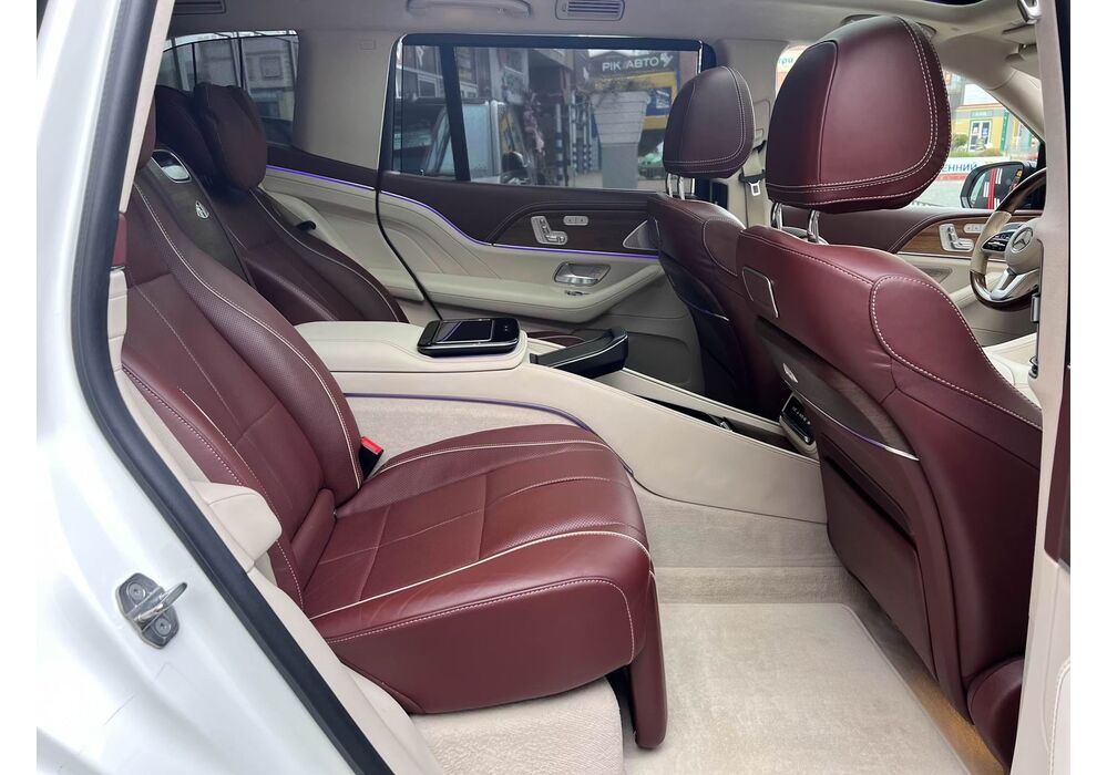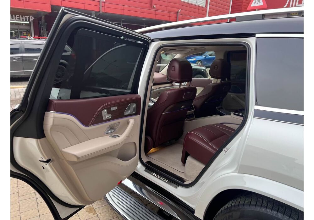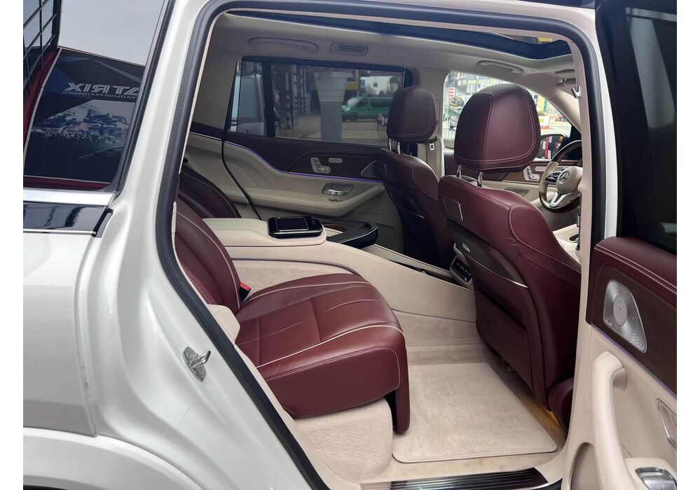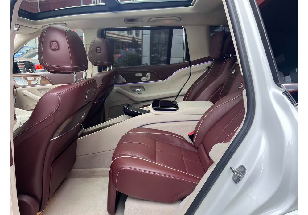 У Maybach GLS використана та ж колісна база, що й у стандартному кросовері, але задній ряд відсунутий назад на 120 мм. Його можна отримати в три або двомісному виконанні (третій ряд для моделі не передбачений взагалі, зате об'єм багажника за спинками другого ряду дорівнює 520 л). Двомісний варіант має крісла, спинки яких опускаються на кут в 43.5 градуса, підтримка гомілок входить у стандартну комплектацію, як і окремий планшет для управління мультимедіа, підсвічуванням і налаштуваннями крісел. За доплату задні пасажири можуть отримати холодильник на кількох пляшок та пару фірмових срібних склянок. Є також можливість замовити складні столики, які ховаються в центральний тунель, що поділяє пасажирів позаду, та розетки, що видають 230 В.