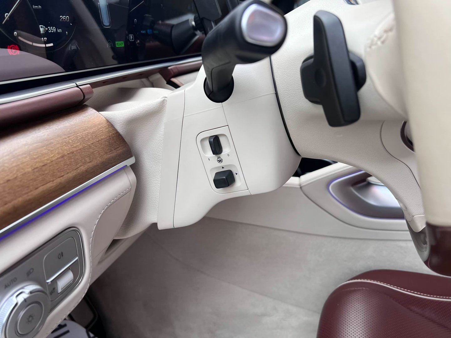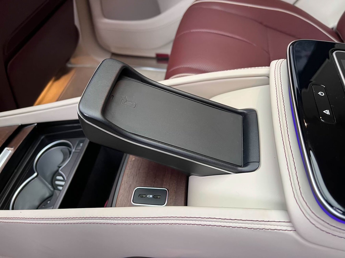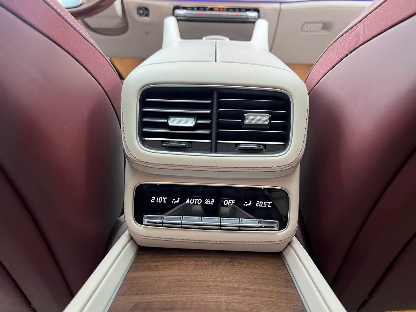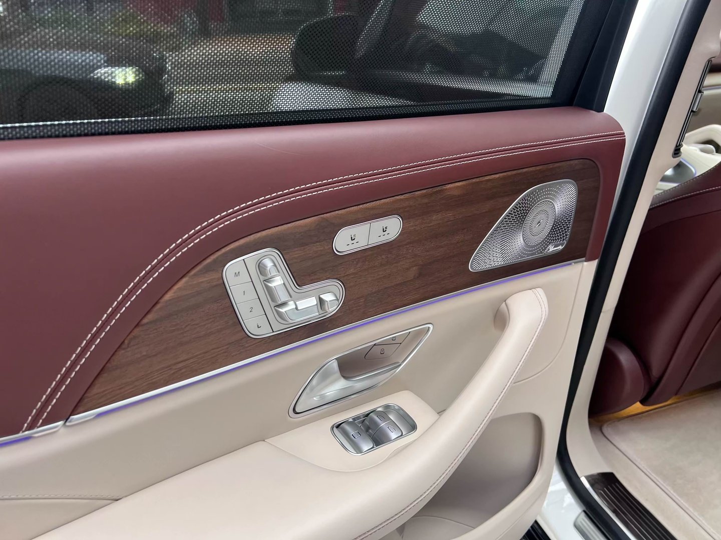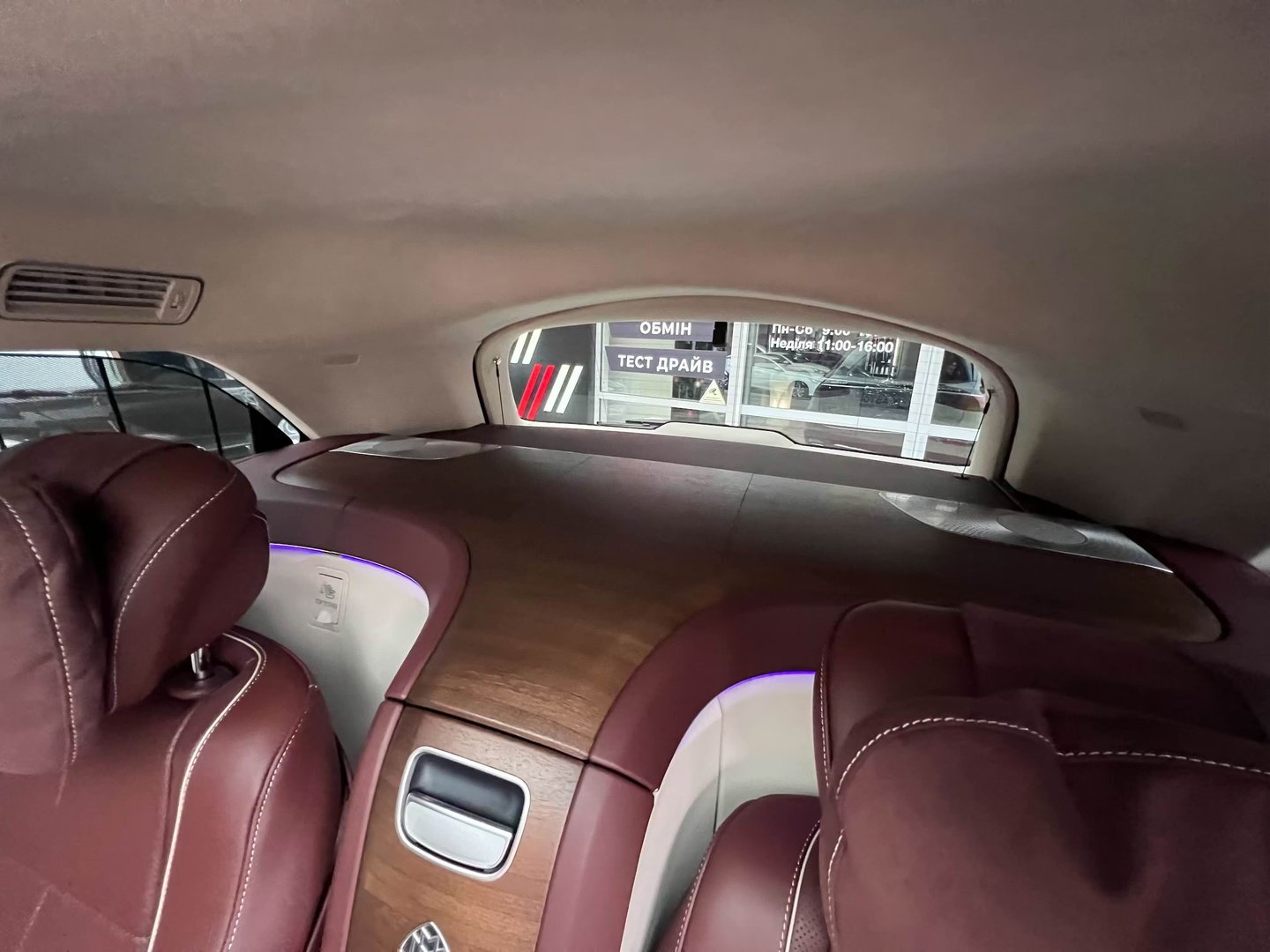 У Maybach GLS використана та ж колісна база, що й у стандартному кросовері, але задній ряд відсунутий назад на 120 мм. Його можна отримати в три або двомісному виконанні (третій ряд для моделі не передбачений взагалі, зате об'єм багажника за спинками другого ряду дорівнює 520 л). Двомісний варіант має крісла, спинки яких опускаються на кут в 43.5 градуса, підтримка гомілок входить у стандартну комплектацію, як і окремий планшет для управління мультимедіа, підсвічуванням і налаштуваннями крісел. За доплату задні пасажири можуть отримати холодильник на кількох пляшок та пару фірмових срібних склянок. Є також можливість замовити складні столики, які ховаються в центральний тунель, що поділяє пасажирів позаду, та розетки, що видають 230 В.