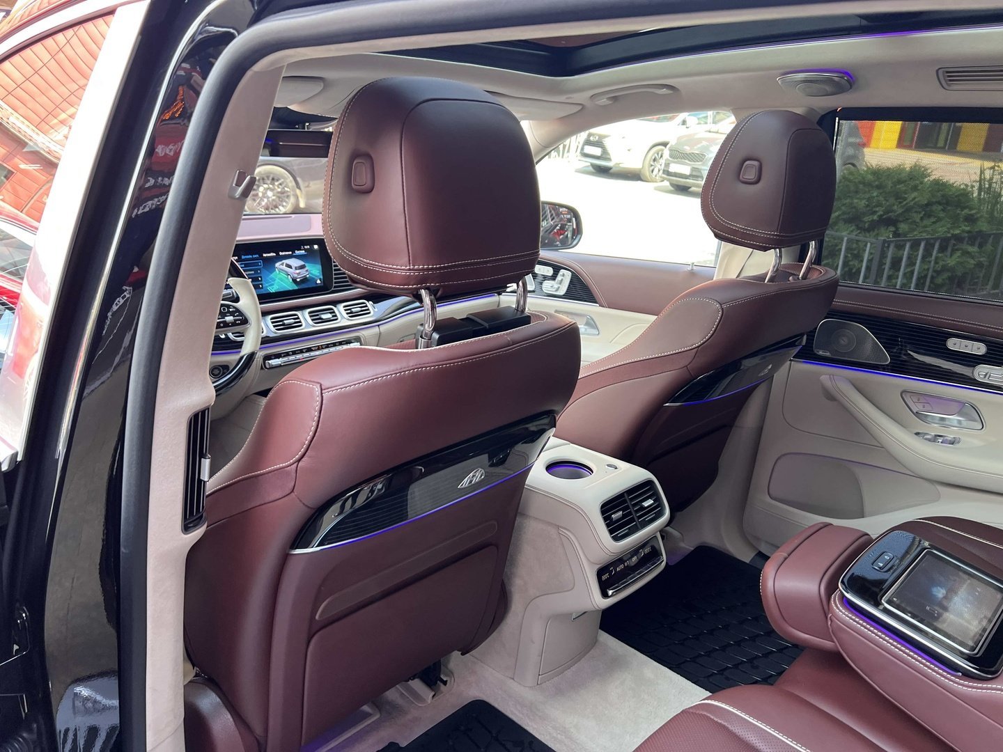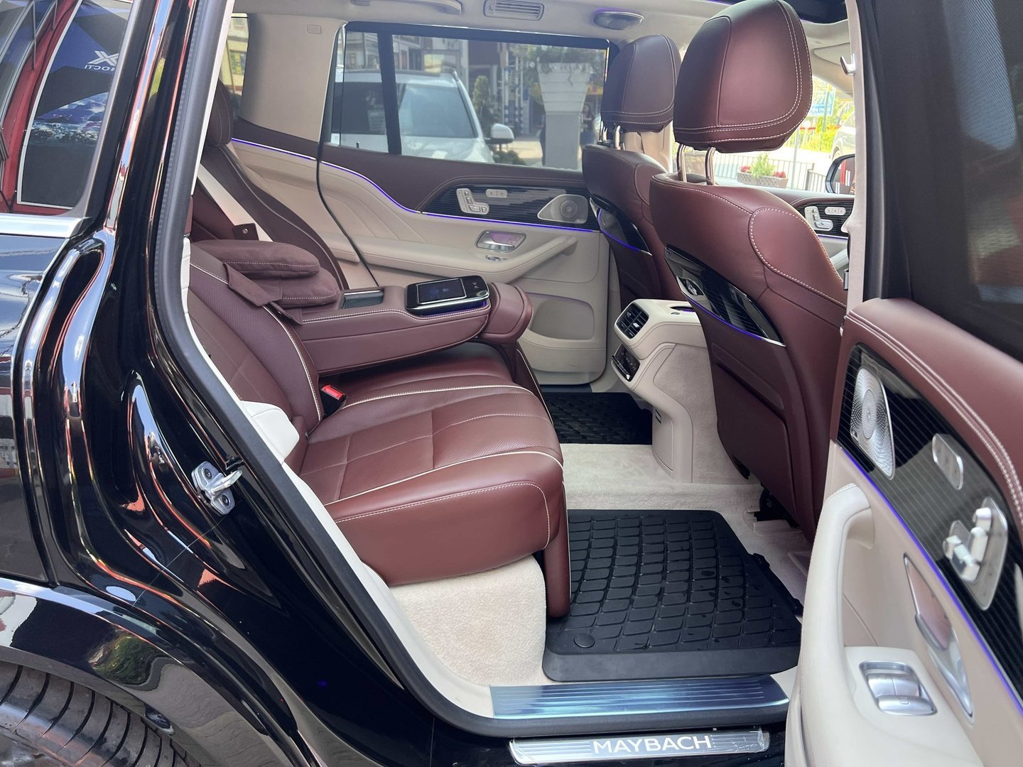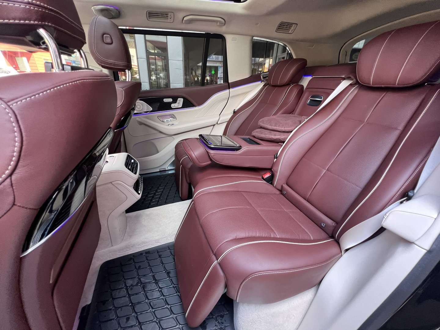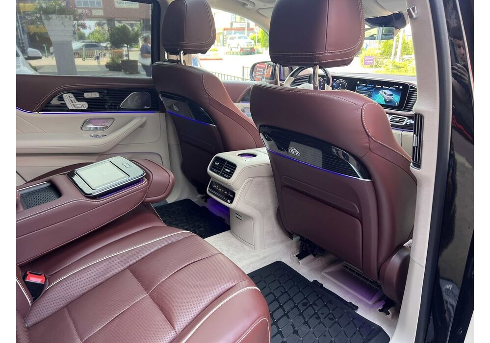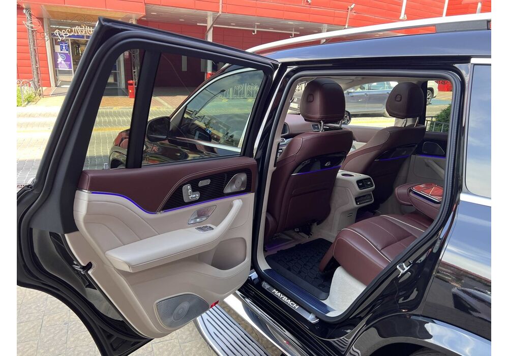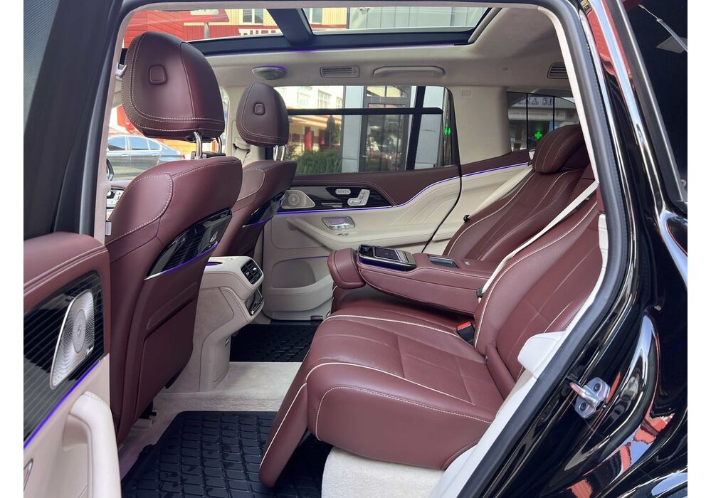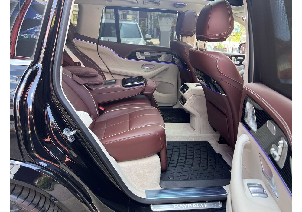 У Maybach GLS використана та ж колісна база, що й у стандартному кросовері, але задній ряд відсунутий назад на 120 мм. Його можна отримати в три або двомісному виконанні (третій ряд для моделі не передбачений взагалі, зате об'єм багажника за спинками другого ряду дорівнює 520 л). Двомісний варіант має крісла, спинки яких опускаються на кут в 43.5 градуса, підтримка гомілок входить у стандартну комплектацію, як і окремий планшет для управління мультимедіа, підсвічуванням і налаштуваннями крісел. За доплату задні пасажири можуть отримати холодильник на кількох пляшок та пару фірмових срібних склянок. Є також можливість замовити складні столики, які ховаються в центральний тунель, що поділяє пасажирів позаду, та розетки, що видають 230 В.