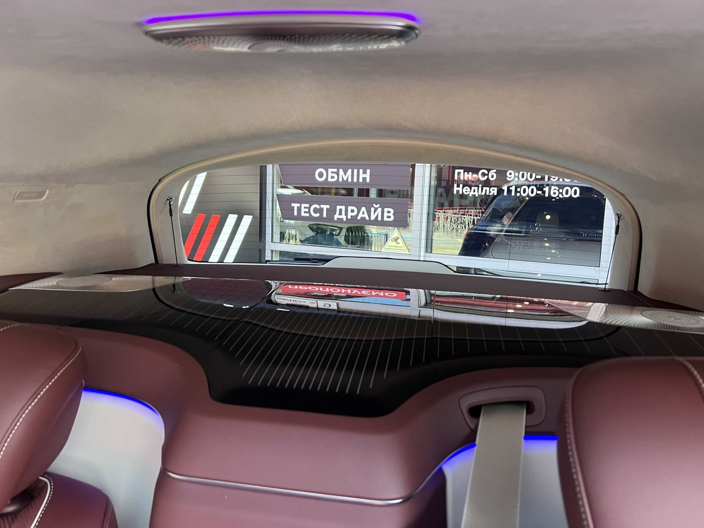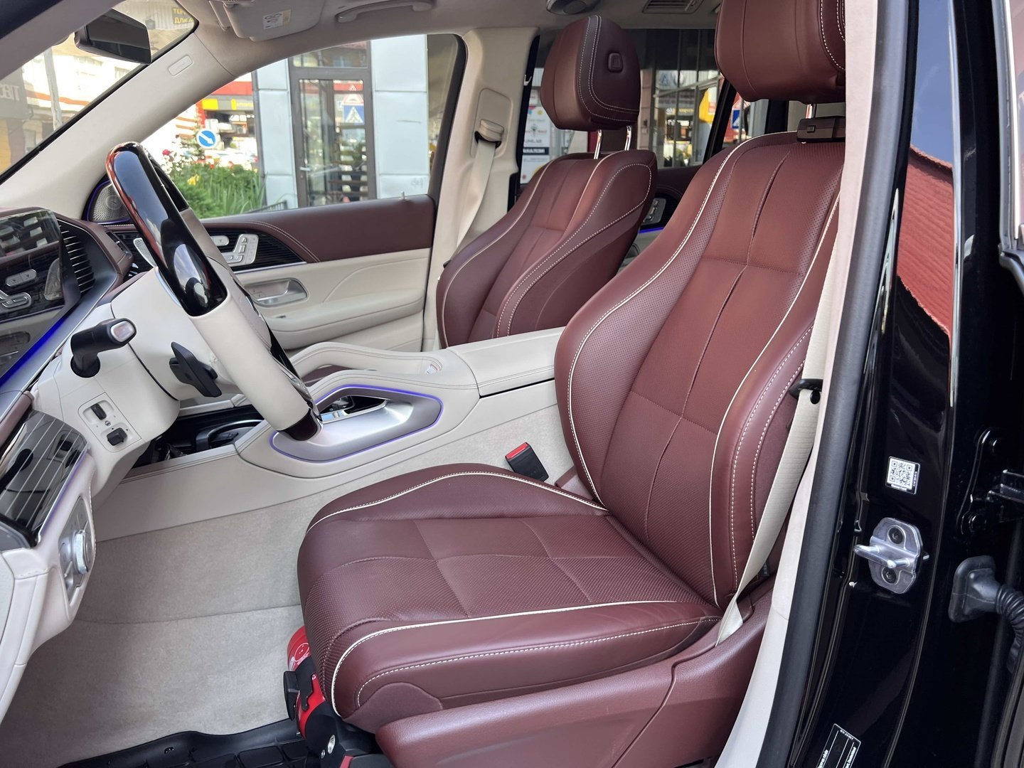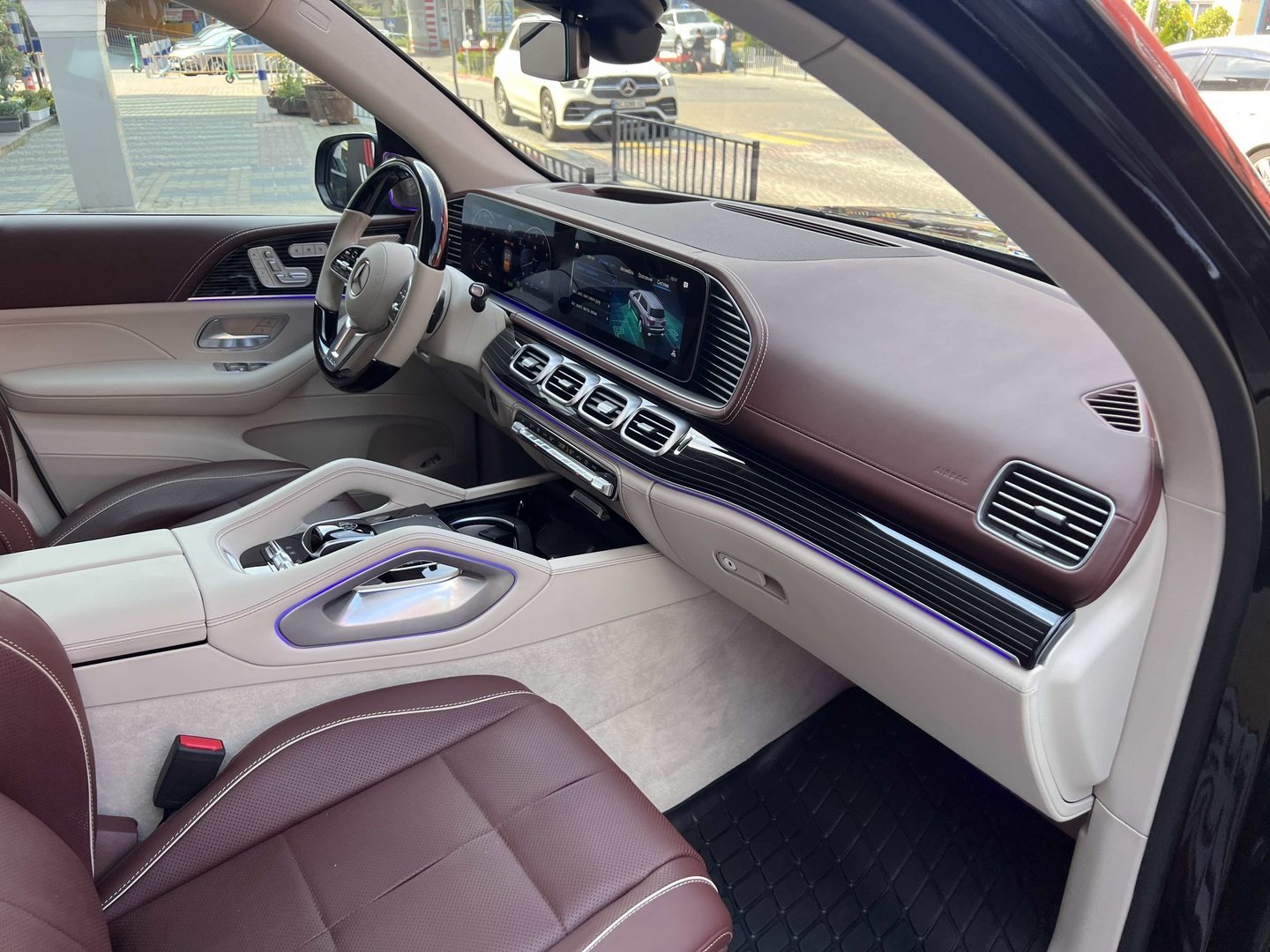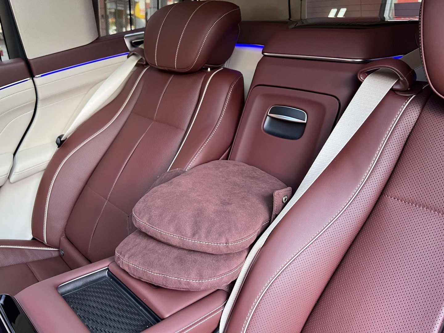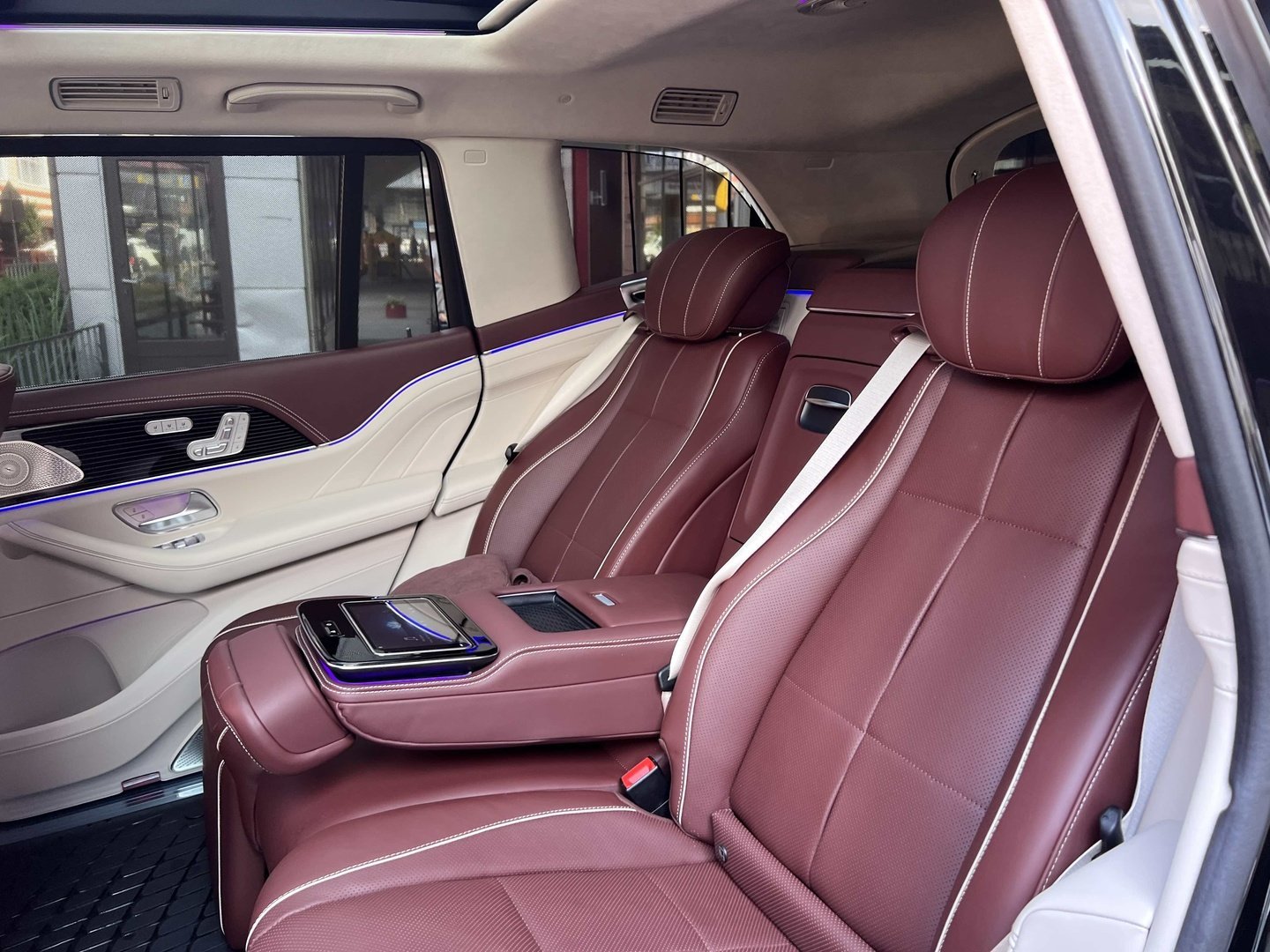 У Maybach GLS використана та ж колісна база, що й у стандартному кросовері, але задній ряд відсунутий назад на 120 мм. Його можна отримати в три або двомісному виконанні (третій ряд для моделі не передбачений взагалі, зате об'єм багажника за спинками другого ряду дорівнює 520 л). Двомісний варіант має крісла, спинки яких опускаються на кут в 43.5 градуса, підтримка гомілок входить у стандартну комплектацію, як і окремий планшет для управління мультимедіа, підсвічуванням і налаштуваннями крісел. За доплату задні пасажири можуть отримати холодильник на кількох пляшок та пару фірмових срібних склянок. Є також можливість замовити складні столики, які ховаються в центральний тунель, що поділяє пасажирів позаду, та розетки, що видають 230 В.
