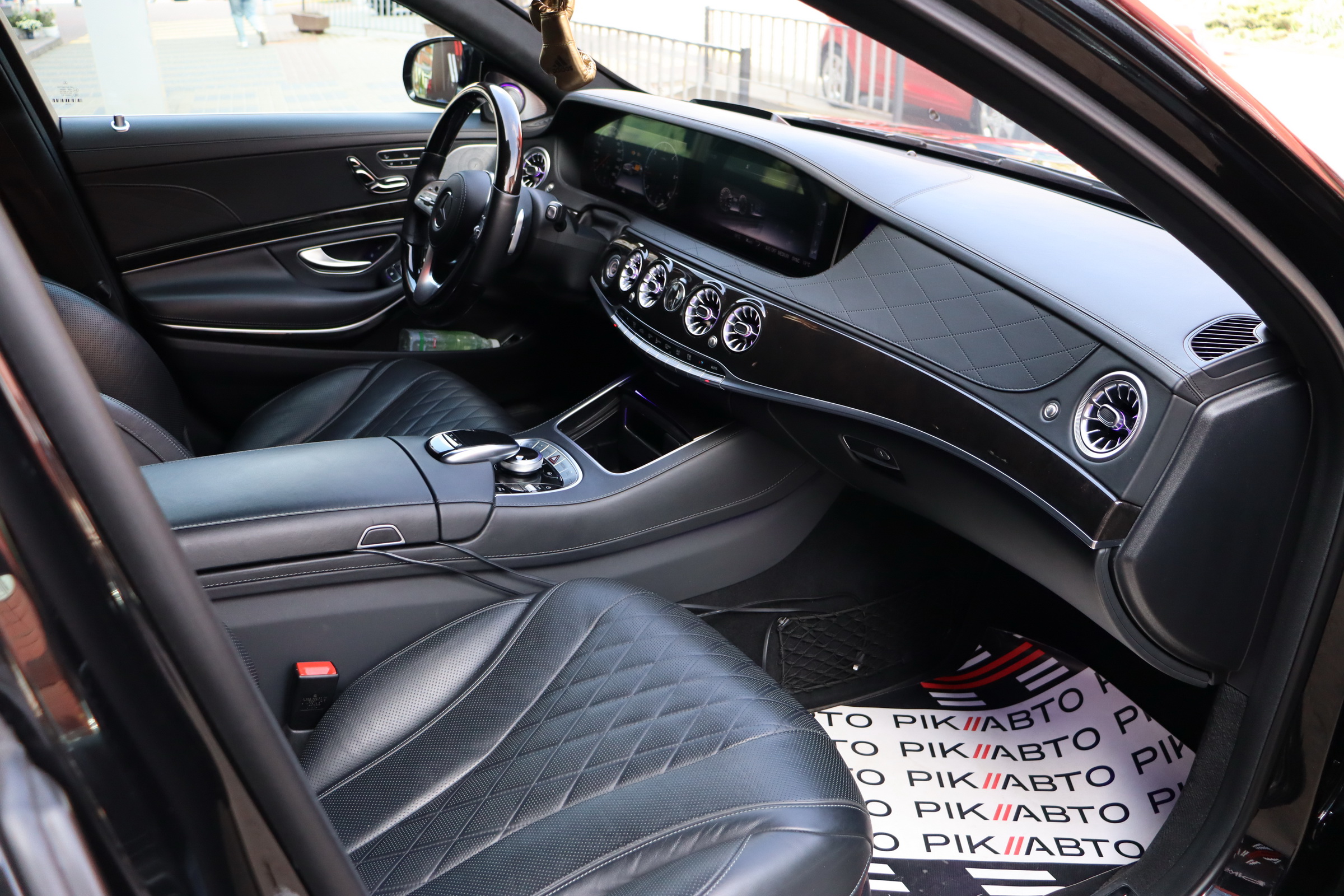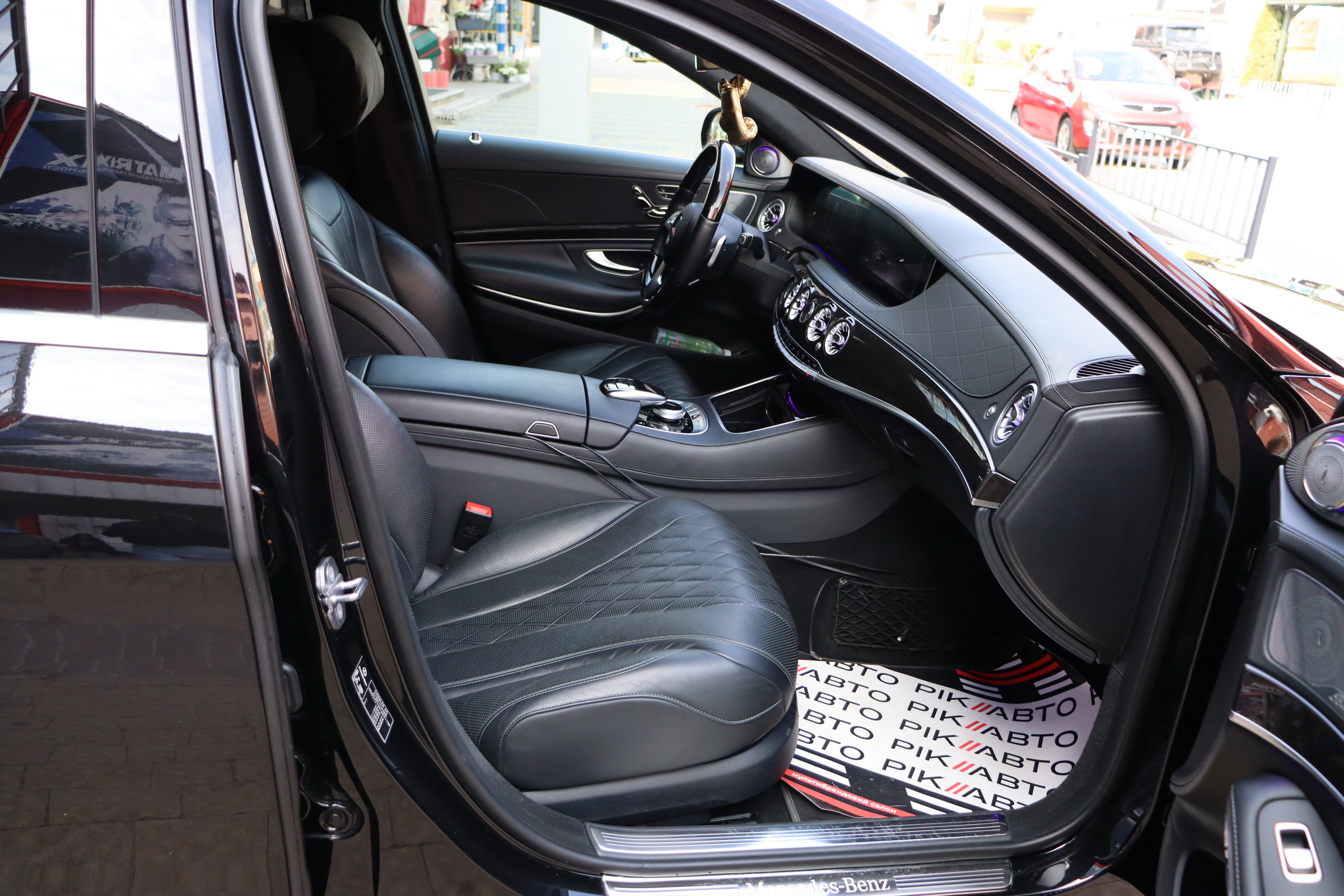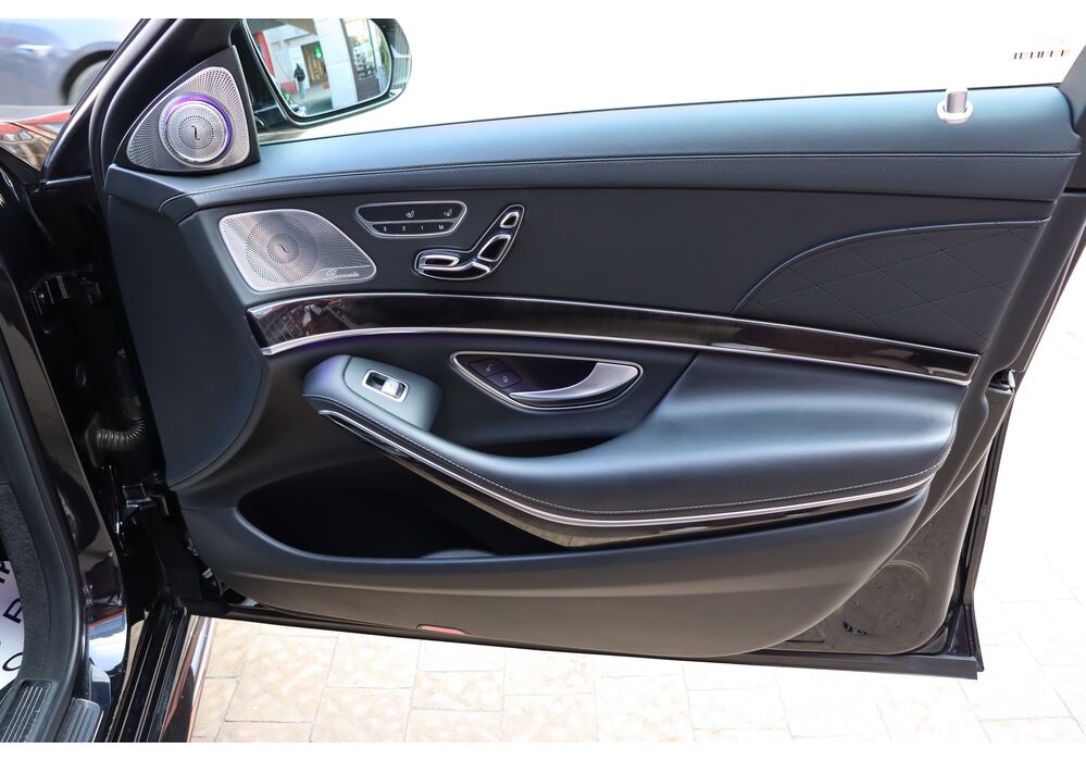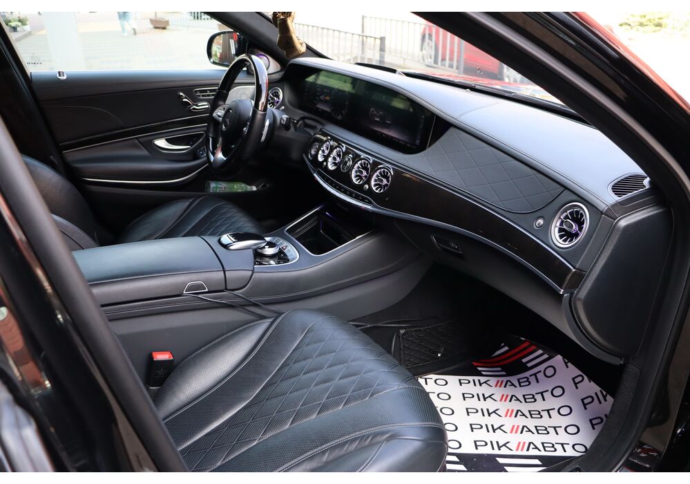 Безліч доробок зазнав і салон оновленого Мерседес S-клас. Першим в очі кидається, тепер уже трьохспицеве рульове колесо, на якому відтепер розміщені тачпади управління Медіасистеми. Крім того, пара 12.3-дюймових TFT дисплеїв інформаційно-розважальної системи та віртуального приладового щитка розміщені поруч за загальним захисним склом. Традиційно оновився і список оздоблювальних матеріалів. Величезний список додаткового обладнання поповнився опціональною системою Energizing Comfort Control, завідуючої роботою клімат-контролю і ароматизатора, обігріву, вентиляції і масажу в кріслах, контурної підсвічування салону і аудіосистеми, для створення певної атмосфери всередині авто. Крім того був доопрацьований адаптивний круїз-контроль і система утримання в смузі. Окремої згадки стоїть система Active Emergency Stop Assist, здатна припаркувати седан, якщо водій засне за кермом.
