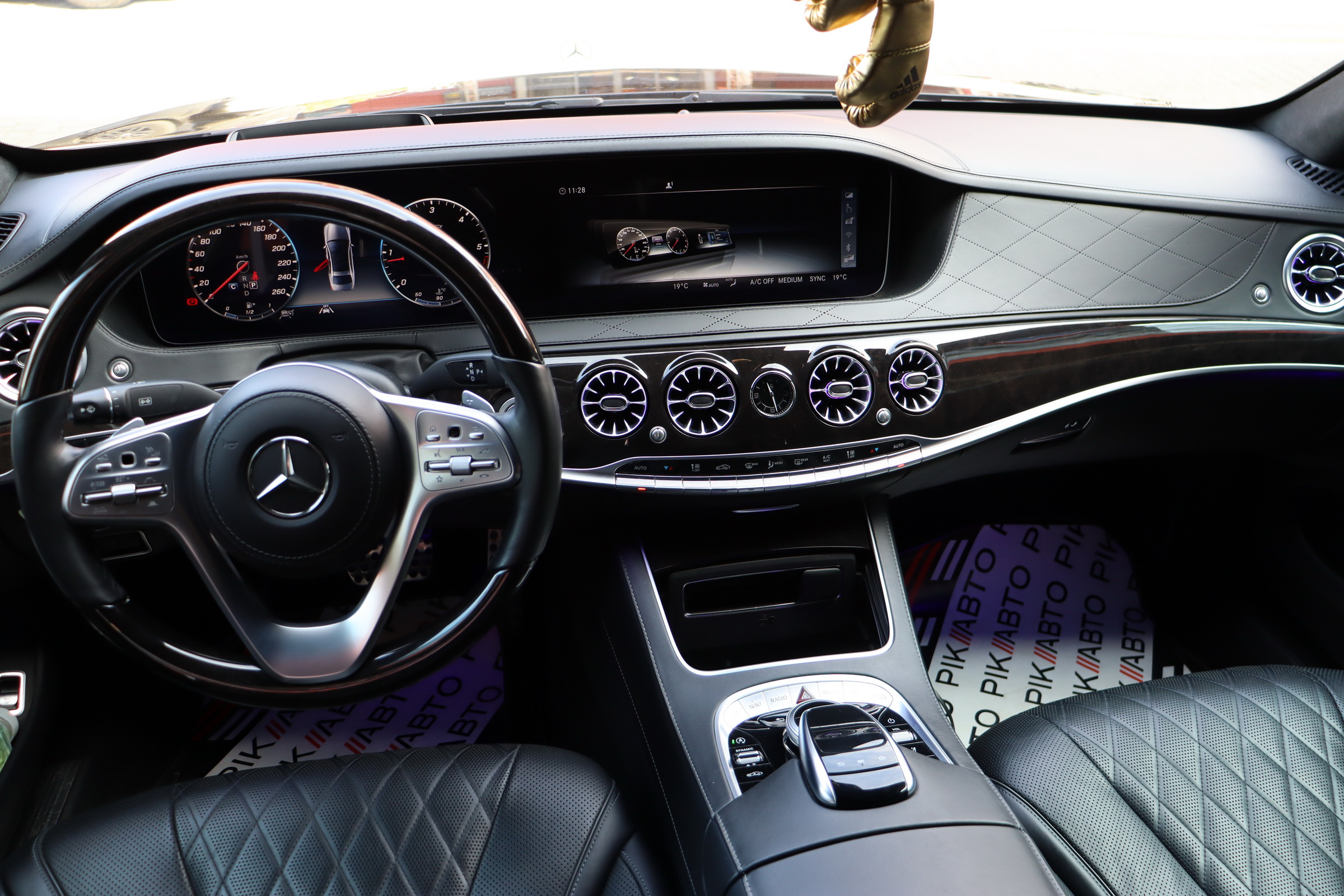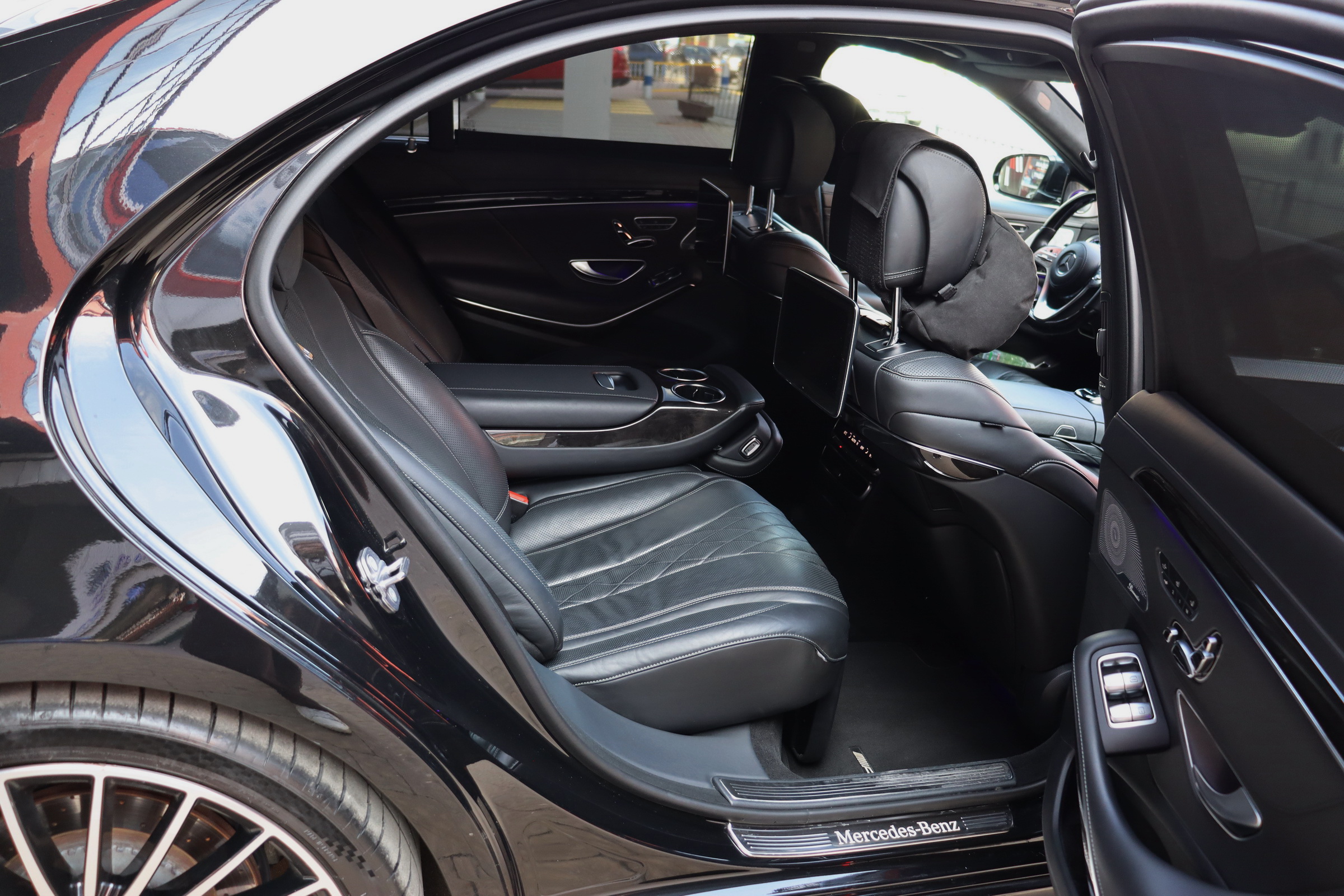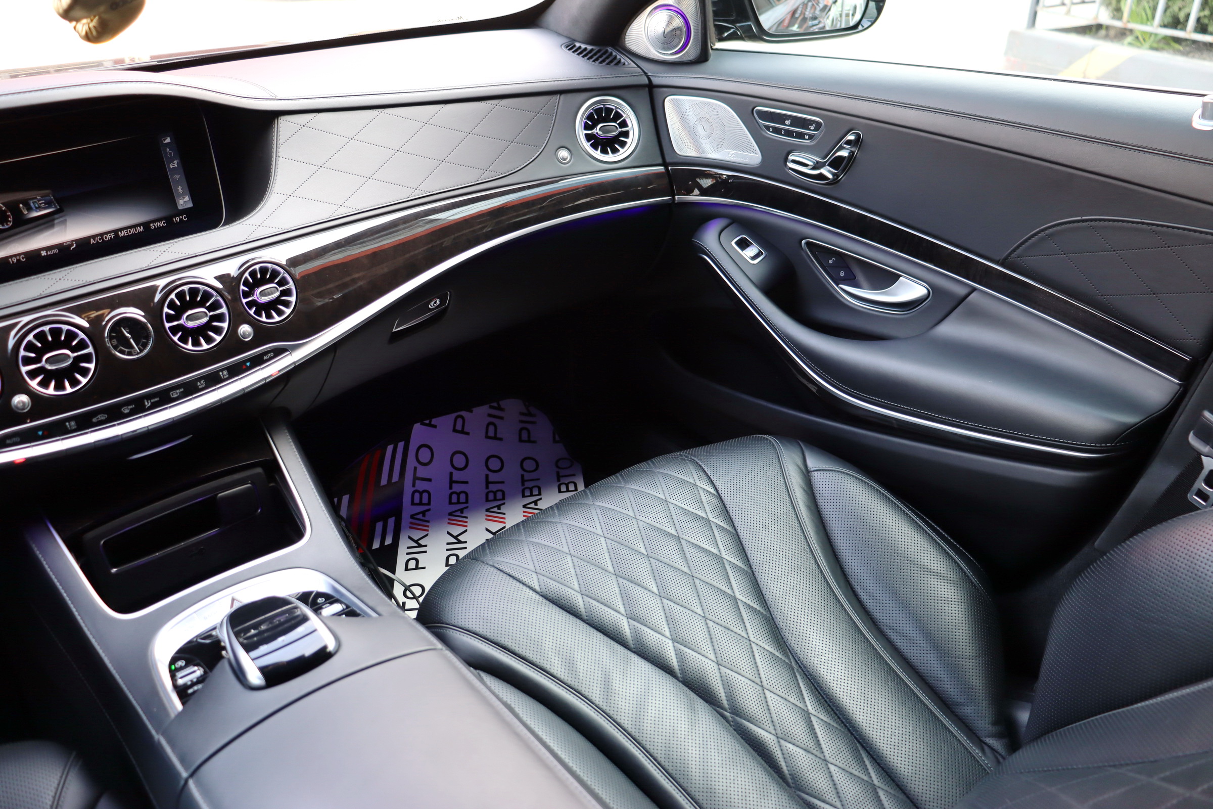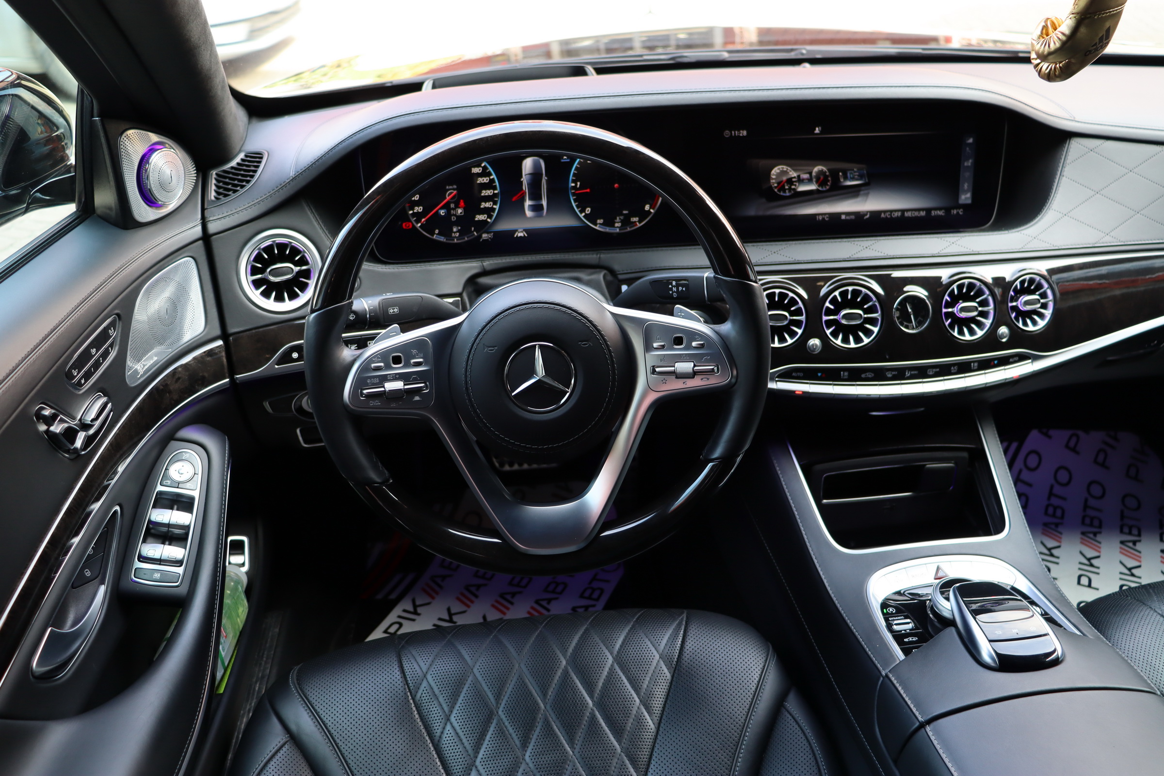 Безліч доробок зазнав і салон оновленого Мерседес S-клас. Першим в очі кидається, тепер уже трьохспицеве рульове колесо, на якому відтепер розміщені тачпади управління Медіасистеми. Крім того, пара 12.3-дюймових TFT дисплеїв інформаційно-розважальної системи та віртуального приладового щитка розміщені поруч за загальним захисним склом. Традиційно оновився і список оздоблювальних матеріалів. Величезний список додаткового обладнання поповнився опціональною системою Energizing Comfort Control, завідуючої роботою клімат-контролю і ароматизатора, обігріву, вентиляції і масажу в кріслах, контурної підсвічування салону і аудіосистеми, для створення певної атмосфери всередині авто. Крім того був доопрацьований адаптивний круїз-контроль і система утримання в смузі. Окремої згадки стоїть система Active Emergency Stop Assist, здатна припаркувати седан, якщо водій засне за кермом.