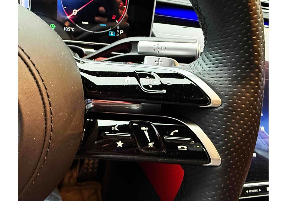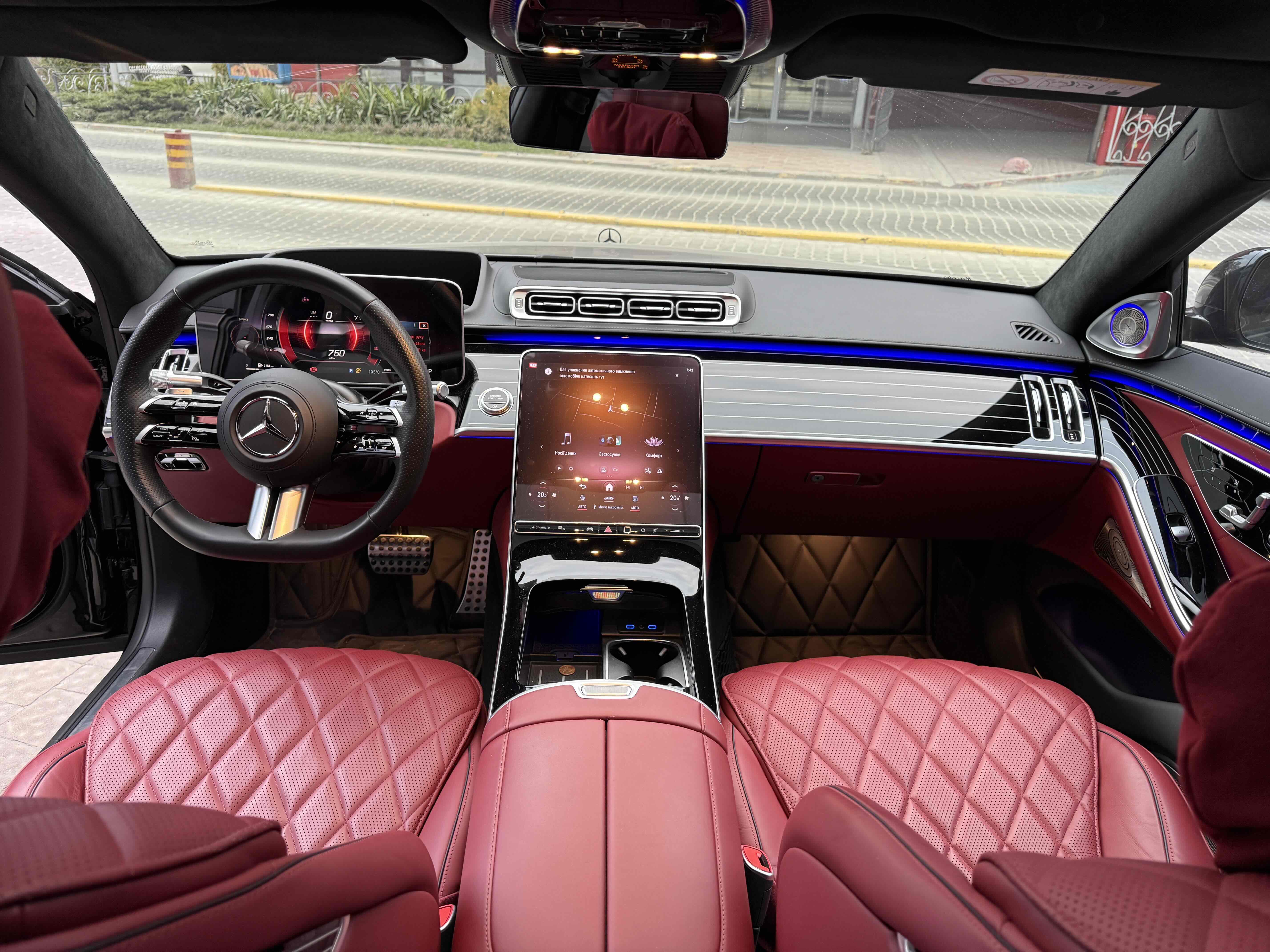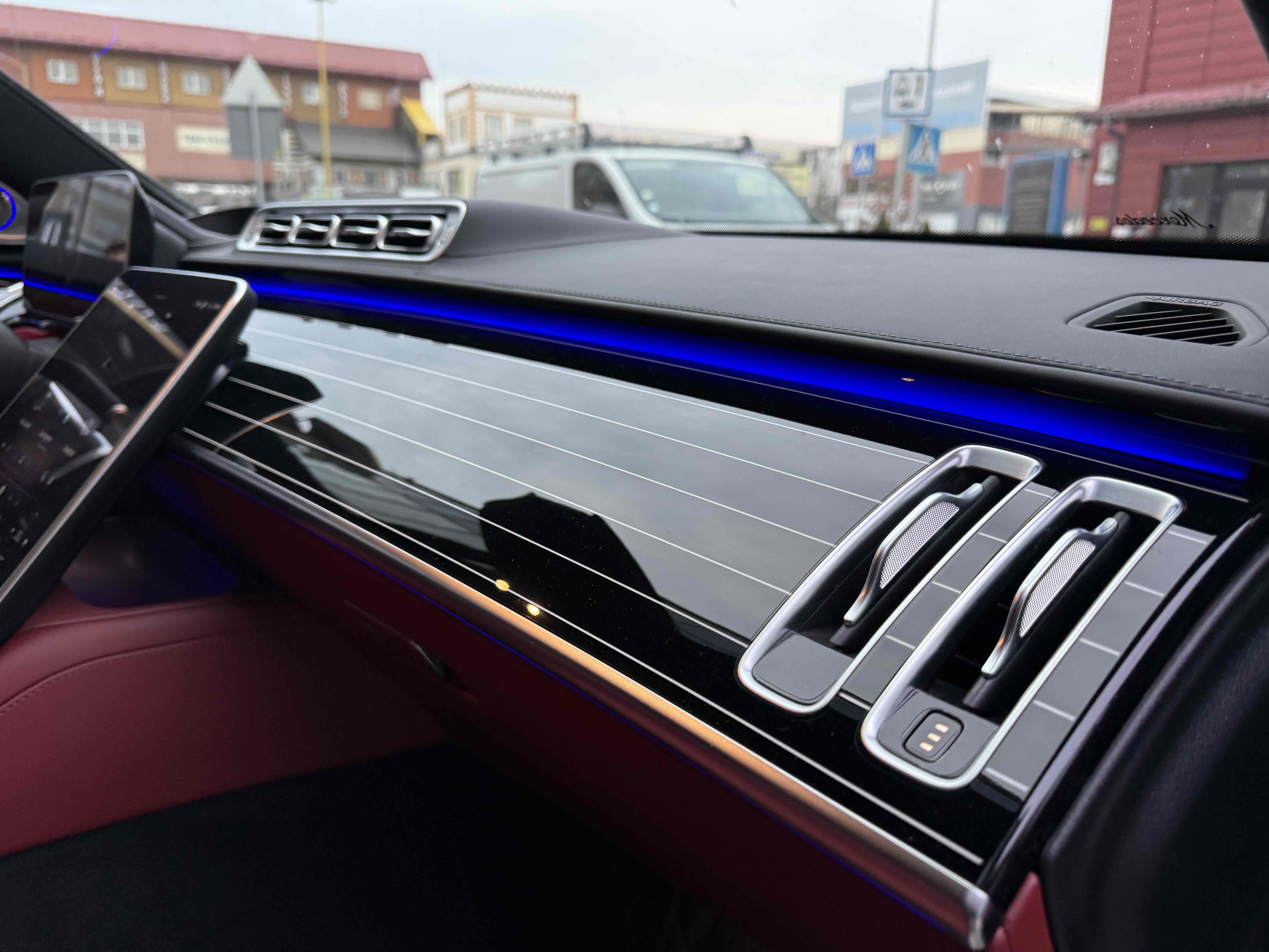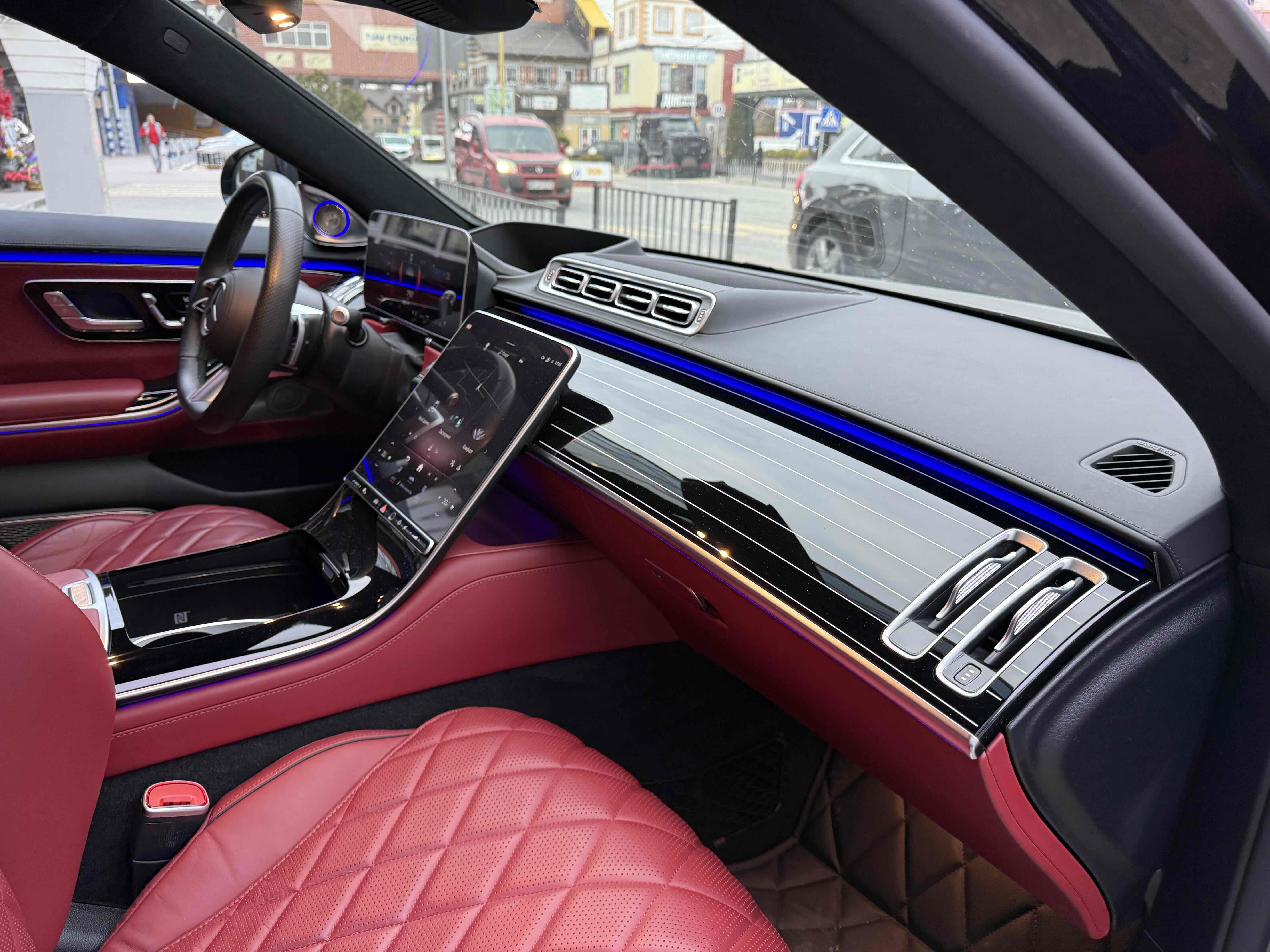 Усередині зі зміною поколінь змінилося майже все: і архітектура передньої панелі, і оформлення дверних карт (як спереду, так і ззаду), і digital-інструментарій, і матеріали обробки. Як і раніше масивним залишився центральний тунель, але і він втратив фірмові тачпад і шайбу. Зате тепер на ньому розташувався 11.9- або 12.8-дюймовий OLED (в залежності від комплектації) сенсорний вертикальний планшет, який відповідає за різні настройки систем автомобіля, а також за управління клімат-контролем. Стандартний 12.3-дюймовий дисплей на приладовій панелі може (опціонально) видавати тривимірне зображення. Воно створюється за допомогою двох камер, що стежать за напрямком погляду водія. Завдяки цим же камерам розпізнається особа водія, відповідно, використовуватимуться його профілю (втім, розпізнавати користувача Mercedes вміє також по відбитку пальця і по голосу). Вишенькою на торті є проекційний дисплей, який в більш просунутій версії створює «картинку» додаткової реальності (наприклад, в реальному часі проектує покажчик потрібного місця для повороту).