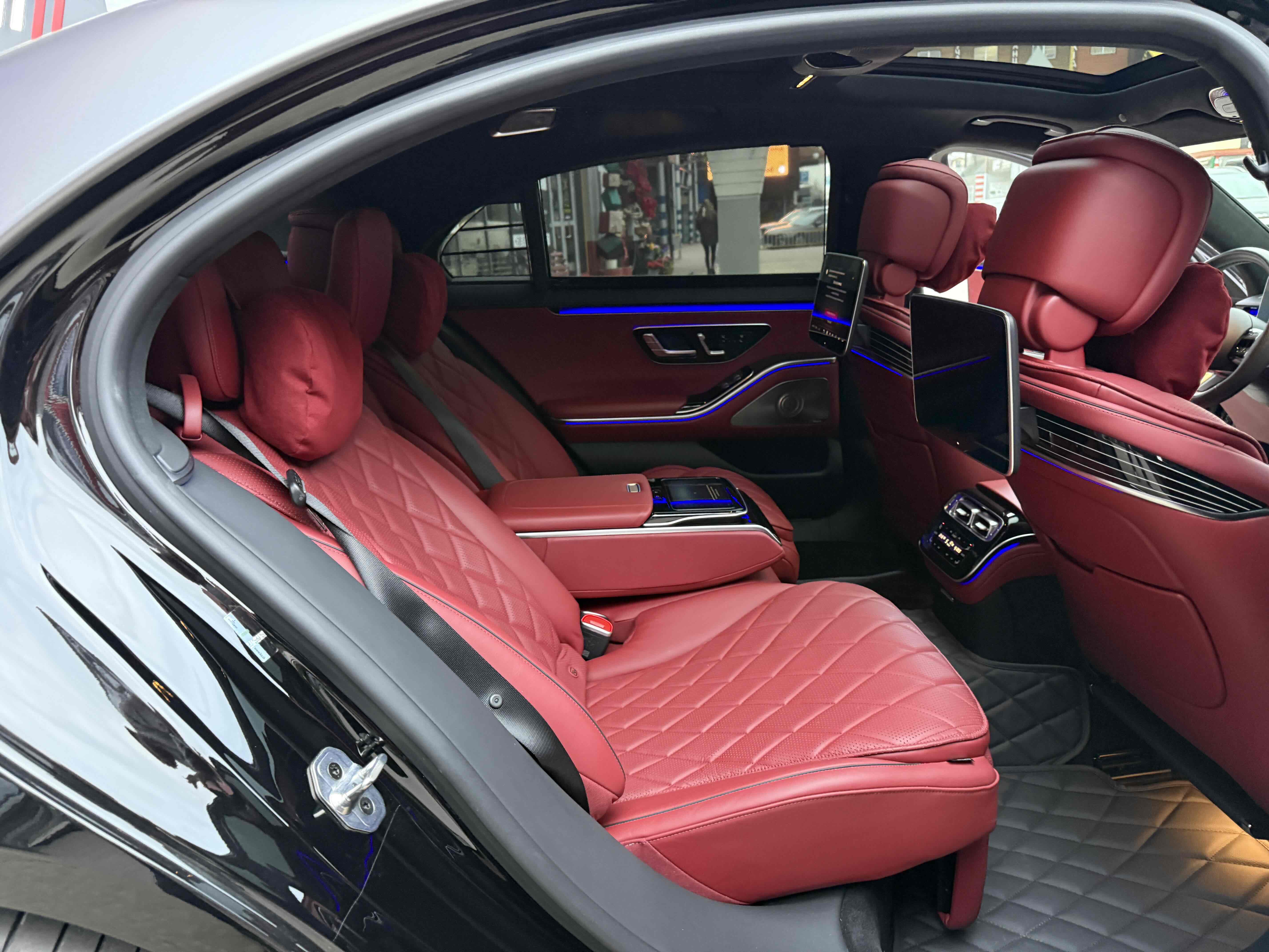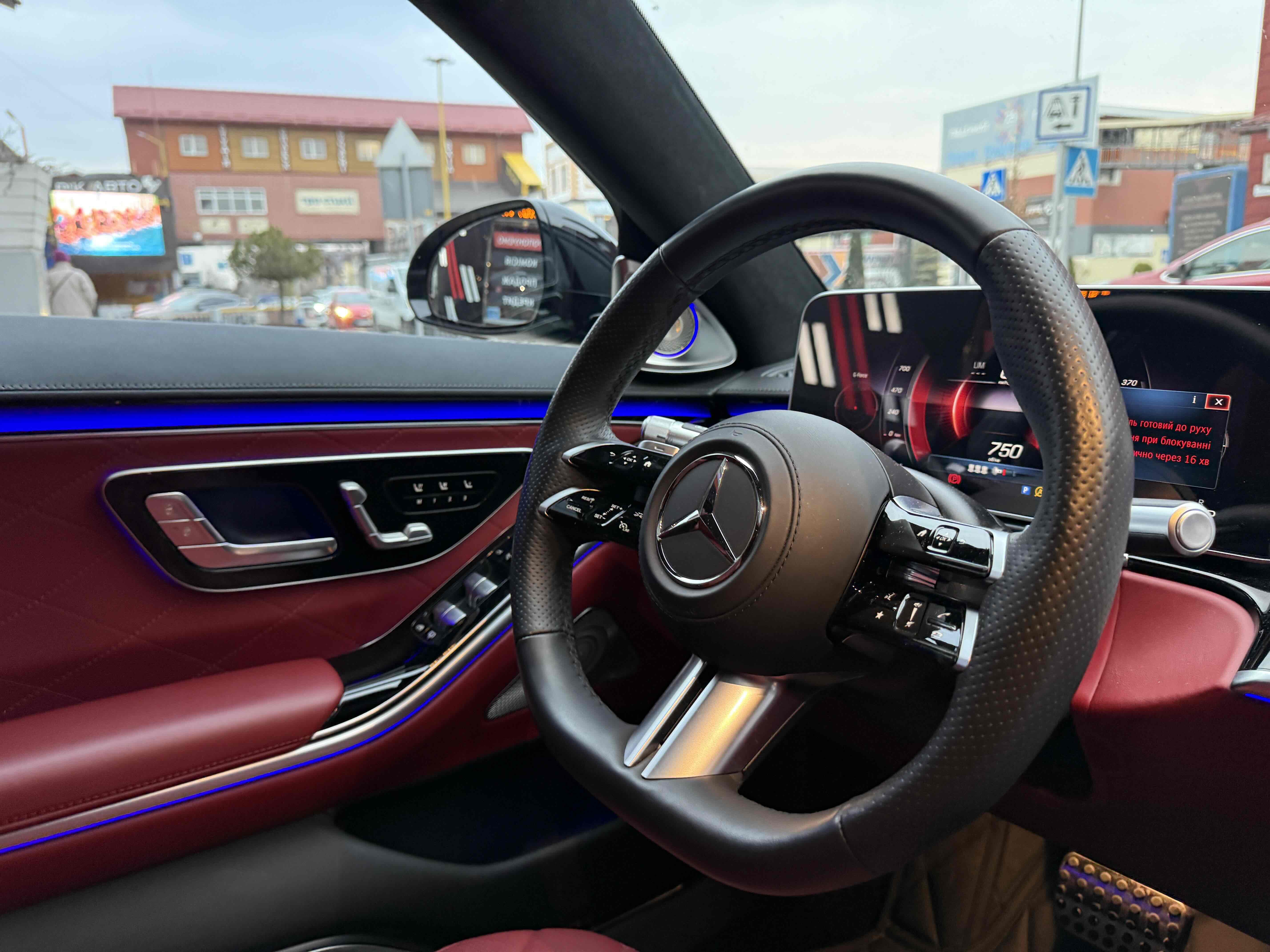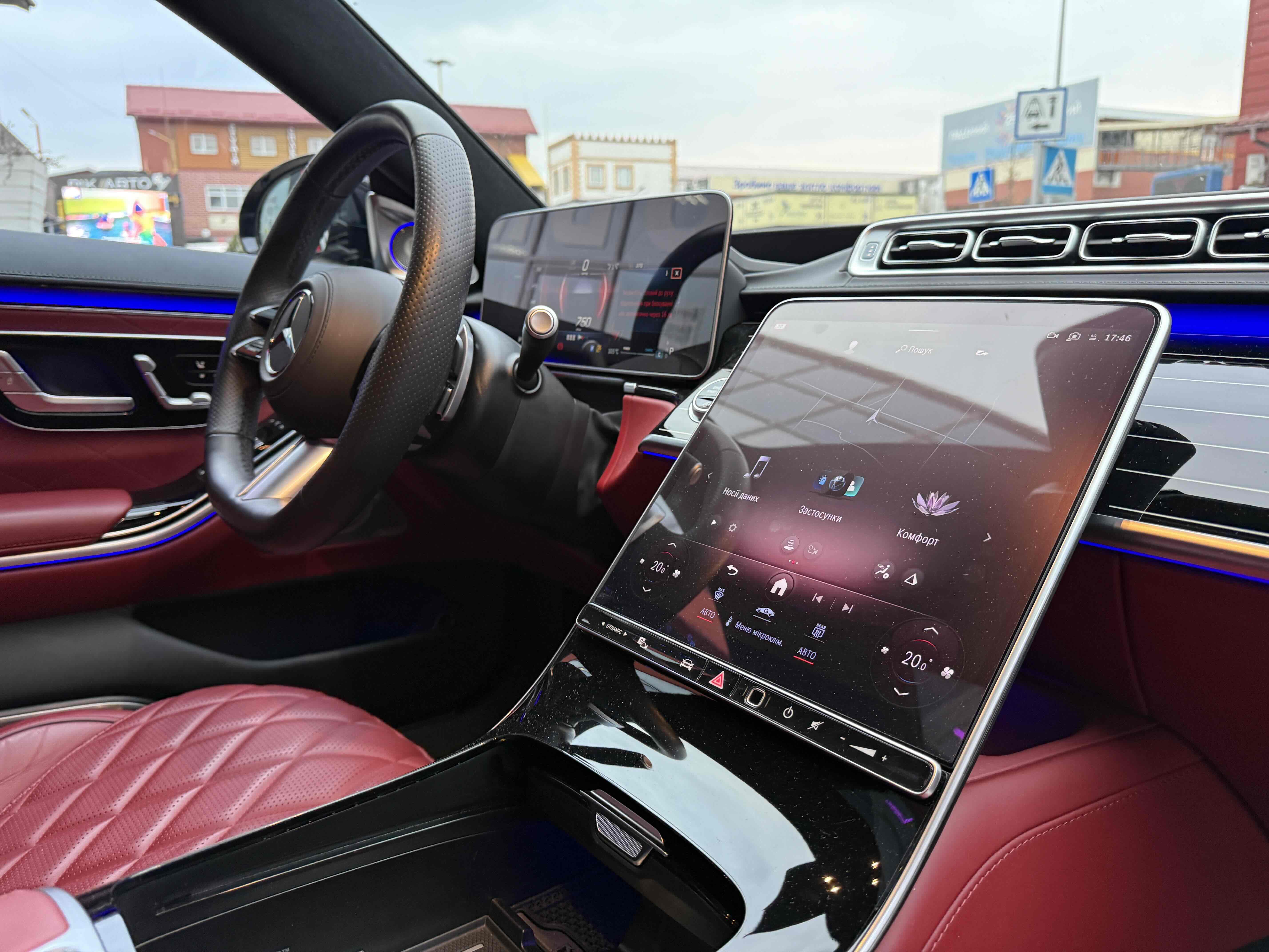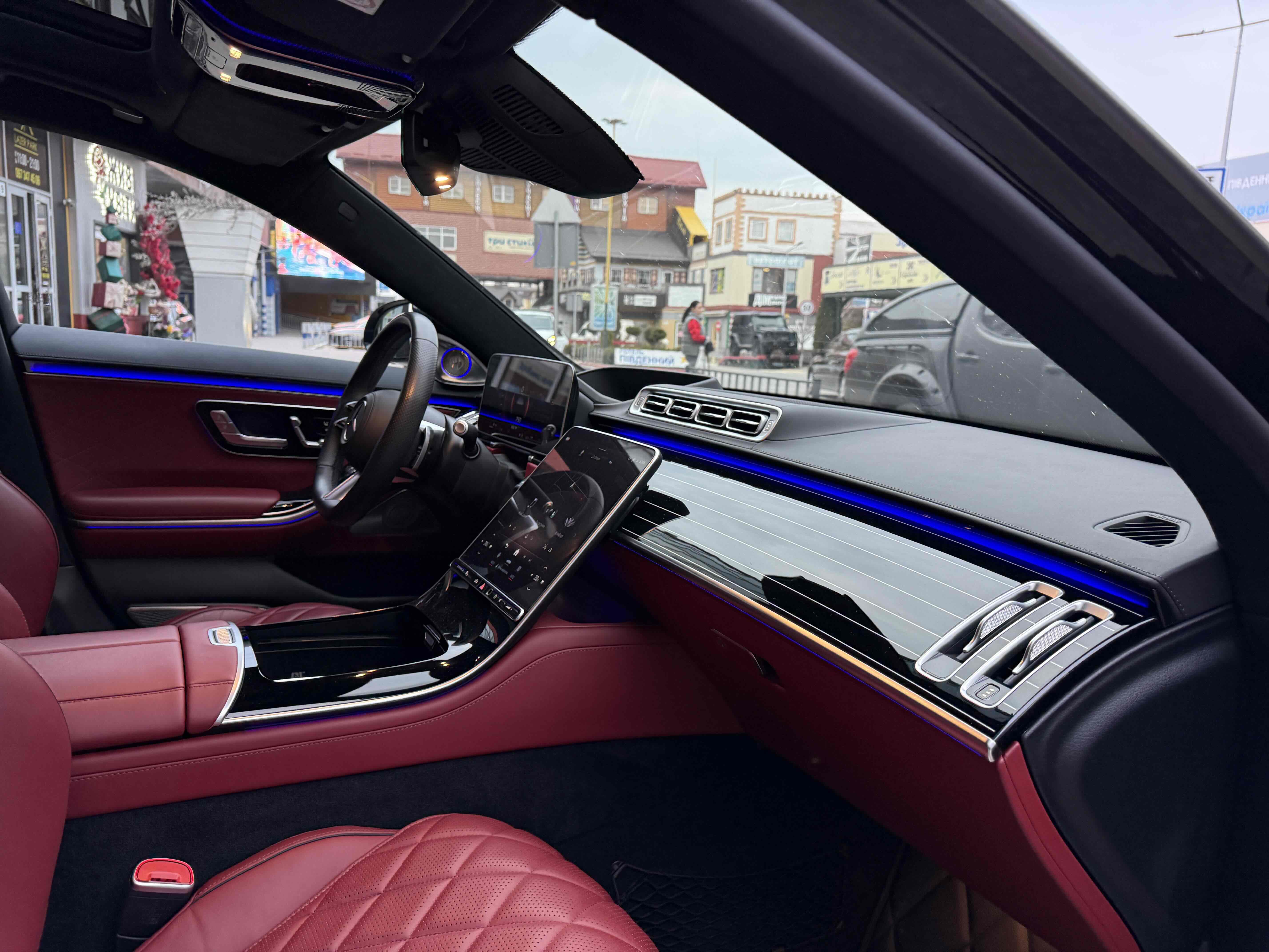Усередині зі зміною поколінь змінилося майже все: і архітектура передньої панелі, і оформлення дверних карт (як спереду, так і ззаду), і digital-інструментарій, і матеріали обробки. Як і раніше масивним залишився центральний тунель, але і він втратив фірмові тачпад і шайбу. Зате тепер на ньому розташувався 11.9- або 12.8-дюймовий OLED (в залежності від комплектації) сенсорний вертикальний планшет, який відповідає за різні настройки систем автомобіля, а також за управління клімат-контролем. Стандартний 12.3-дюймовий дисплей на приладовій панелі може (опціонально) видавати тривимірне зображення. Воно створюється за допомогою двох камер, що стежать за напрямком погляду водія. Завдяки цим же камерам розпізнається особа водія, відповідно, використовуватимуться його профілю (втім, розпізнавати користувача Mercedes вміє також по відбитку пальця і по голосу). Вишенькою на торті є проекційний дисплей, який в більш просунутій версії створює «картинку» додаткової реальності (наприклад, в реальному часі проектує покажчик потрібного місця для повороту).