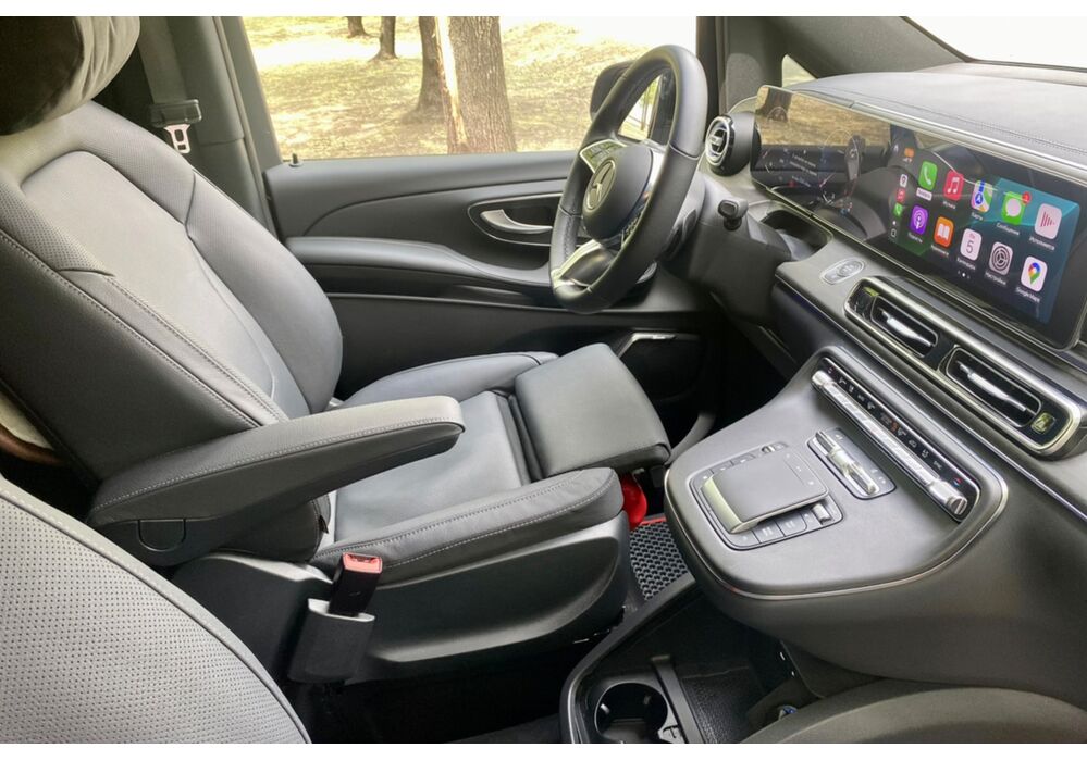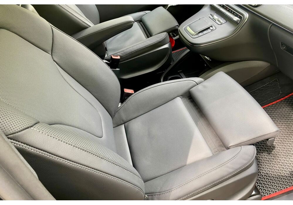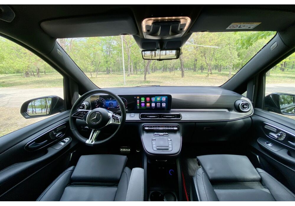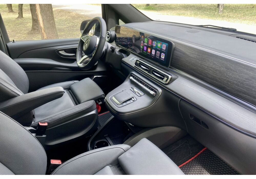 В інтер'єрі Mercedes-Benz V-класу 2019-2020 року також нічого глобального не відбулося - салон був змінений точково. Трохи змінилася архітектура передньої панелі, в яку вдало вписалися стильні вентиляційні отвори, що нагадують авіаційні турбіни, на щитку приладів змінилися циферблати, а інструментарій на центральній консолі розташувався зручніше. Змінилося і якість оздоблювальних матеріалів для оновленого V-Класу тепер в якості опції стала доступна дорожча шкіра Lugano і Nappa.