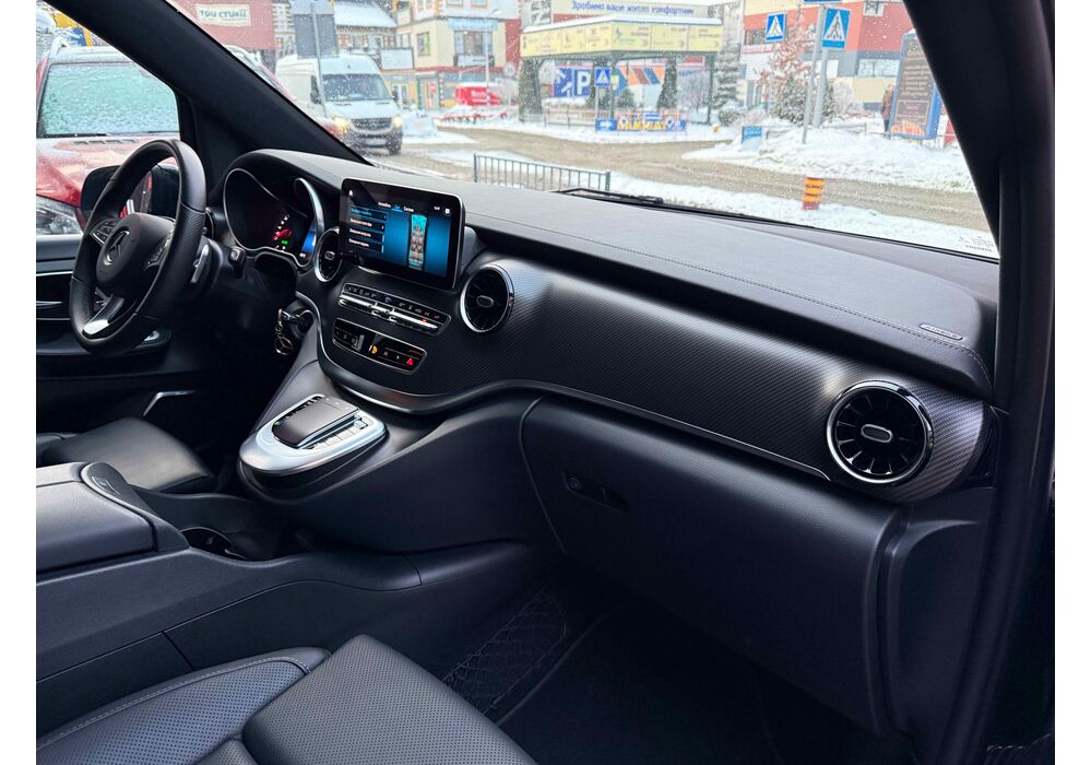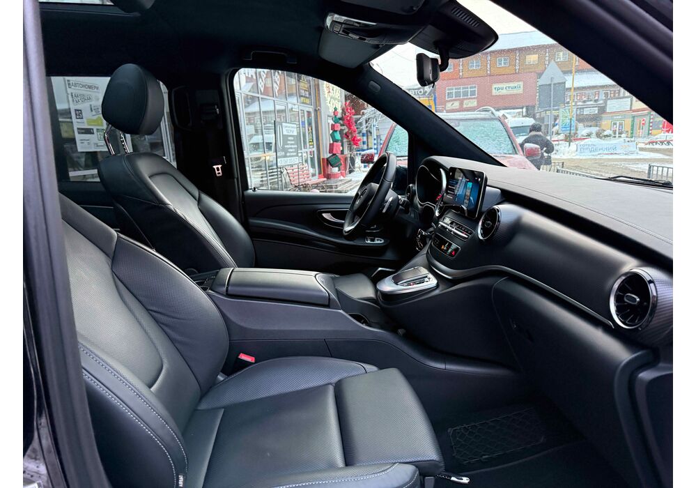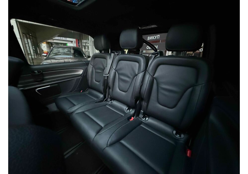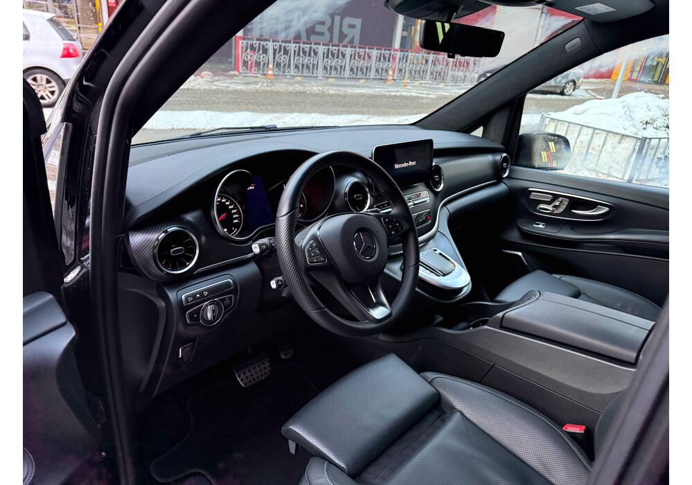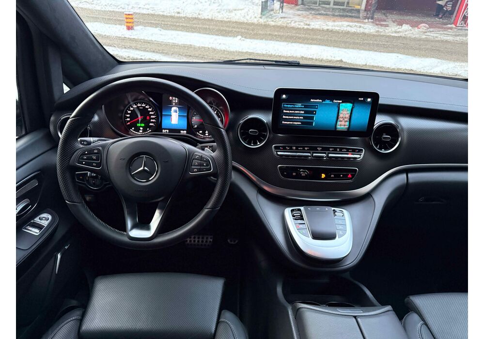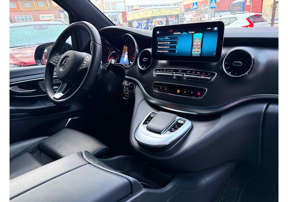 В інтер'єрі Mercedes-Benz V-класу 2019-2020 року також нічого глобального не відбулося - салон був змінений точково. Трохи змінилася архітектура передньої панелі, в яку вдало вписалися стильні вентиляційні отвори, що нагадують авіаційні турбіни, на щитку приладів змінилися циферблати, а інструментарій на центральній консолі розташувався зручніше. Змінилося і якість оздоблювальних матеріалів для оновленого V-Класу тепер в якості опції стала доступна дорожча шкіра Lugano і Nappa.