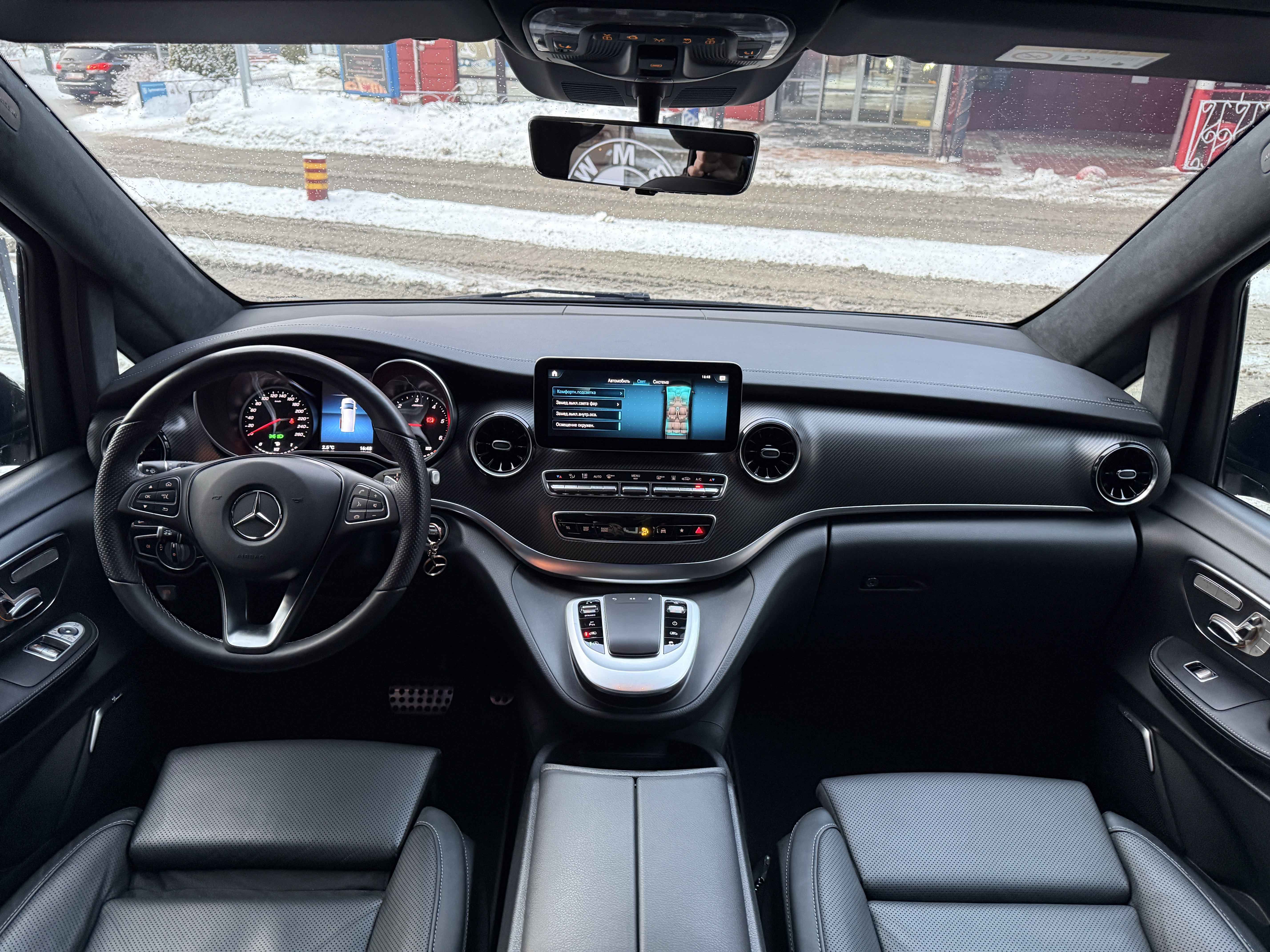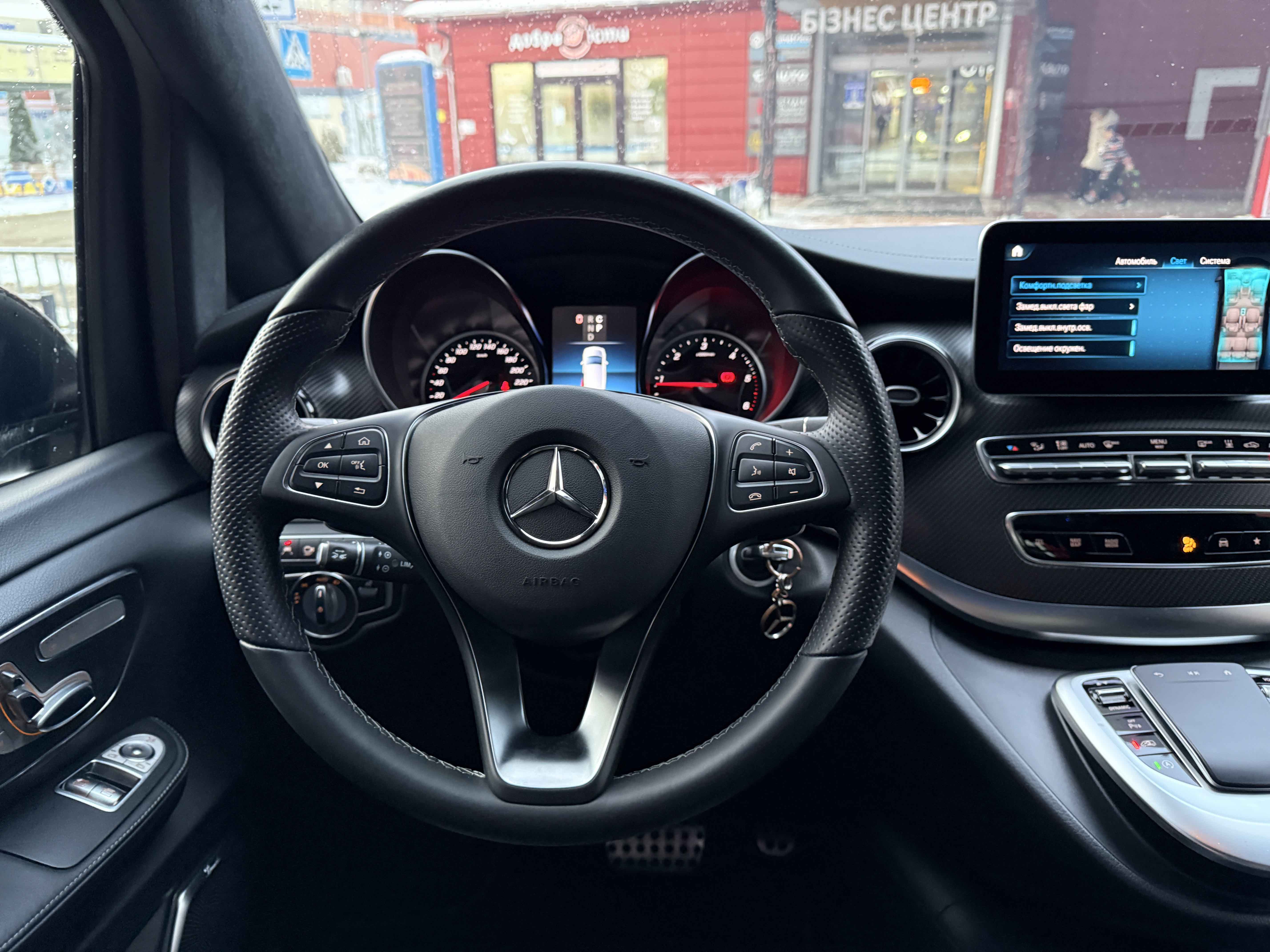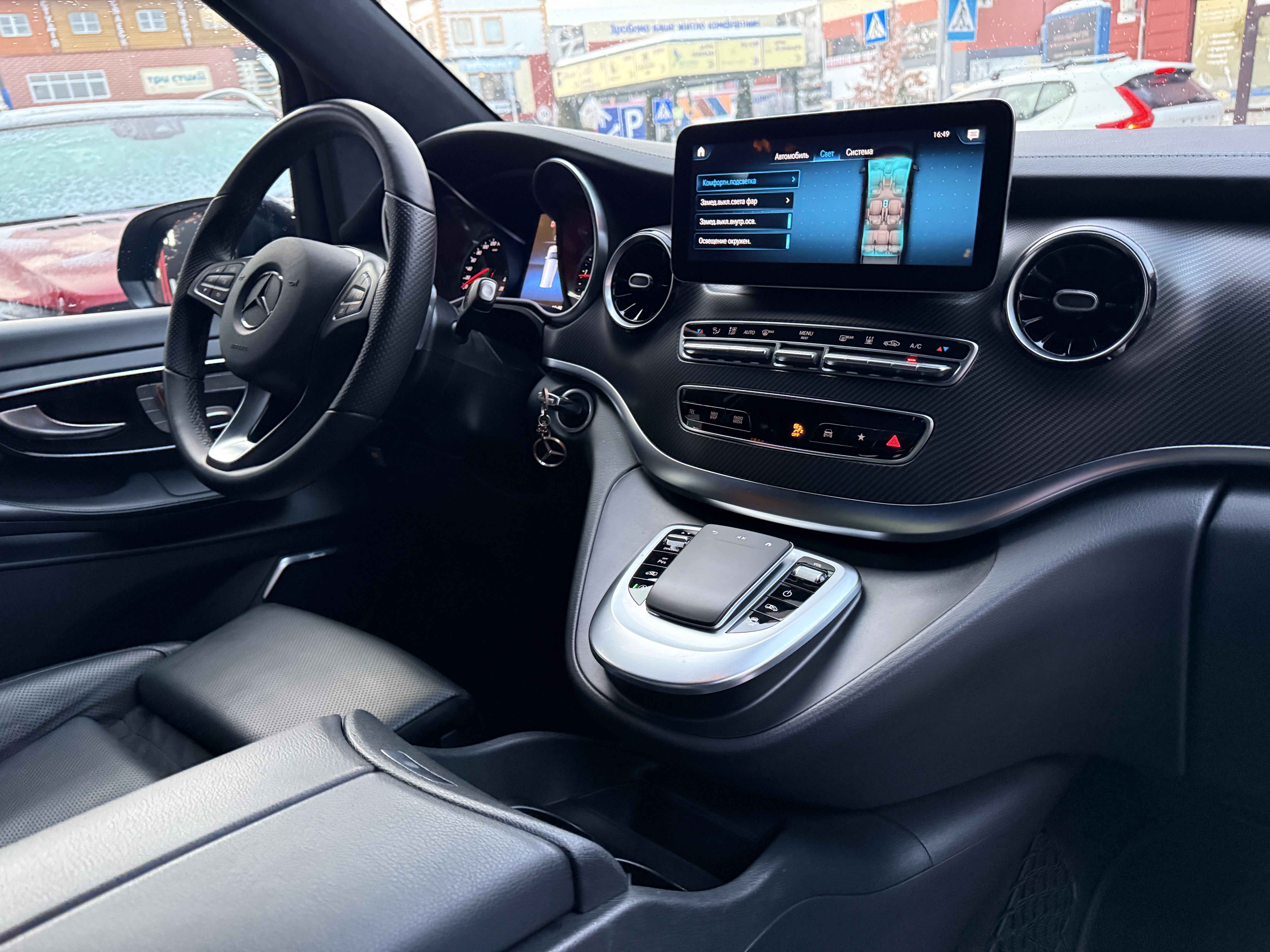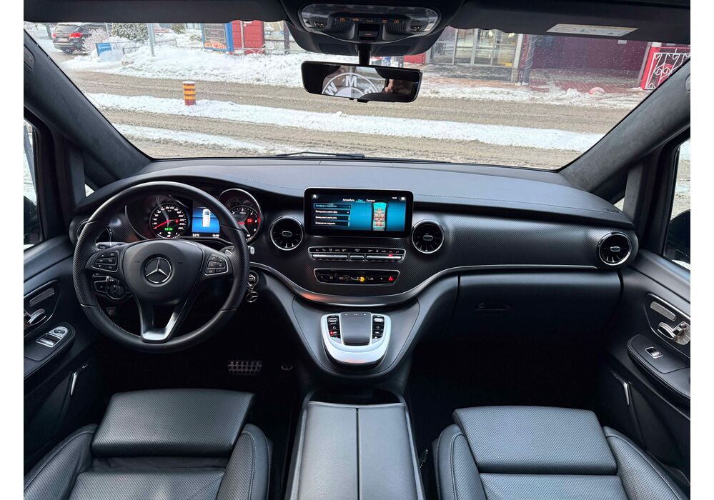 В інтер'єрі Mercedes-Benz V-класу 2019-2020 року також нічого глобального не відбулося - салон був змінений точково. Трохи змінилася архітектура передньої панелі, в яку вдало вписалися стильні вентиляційні отвори, що нагадують авіаційні турбіни, на щитку приладів змінилися циферблати, а інструментарій на центральній консолі розташувався зручніше. Змінилося і якість оздоблювальних матеріалів для оновленого V-Класу тепер в якості опції стала доступна дорожча шкіра Lugano і Nappa.