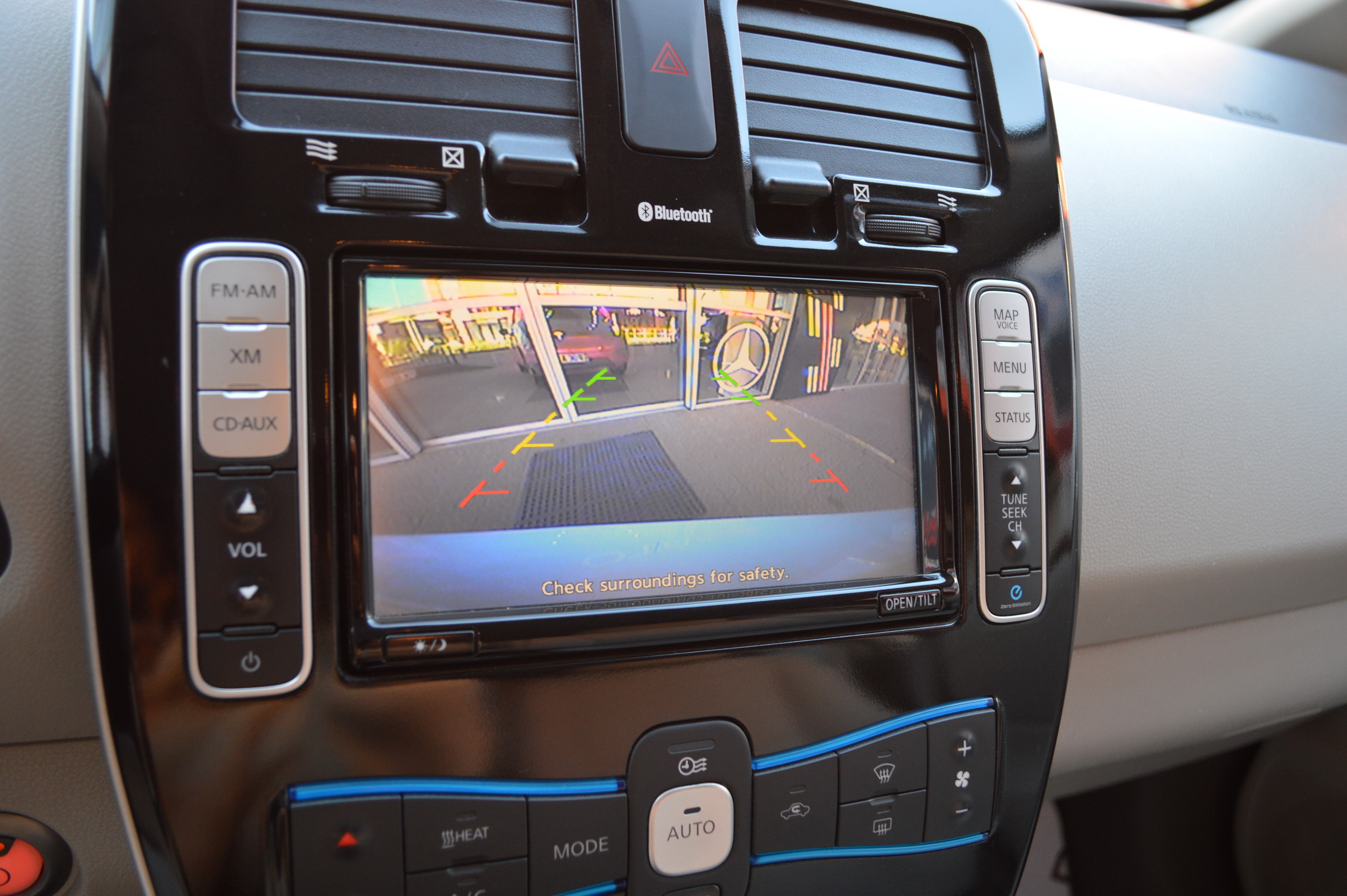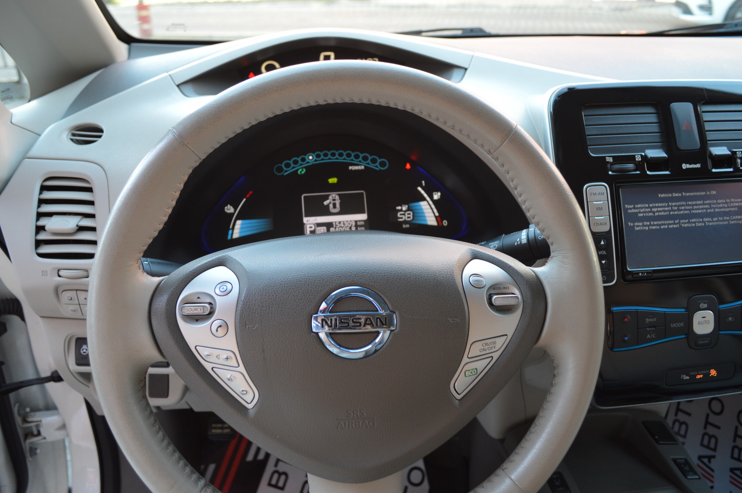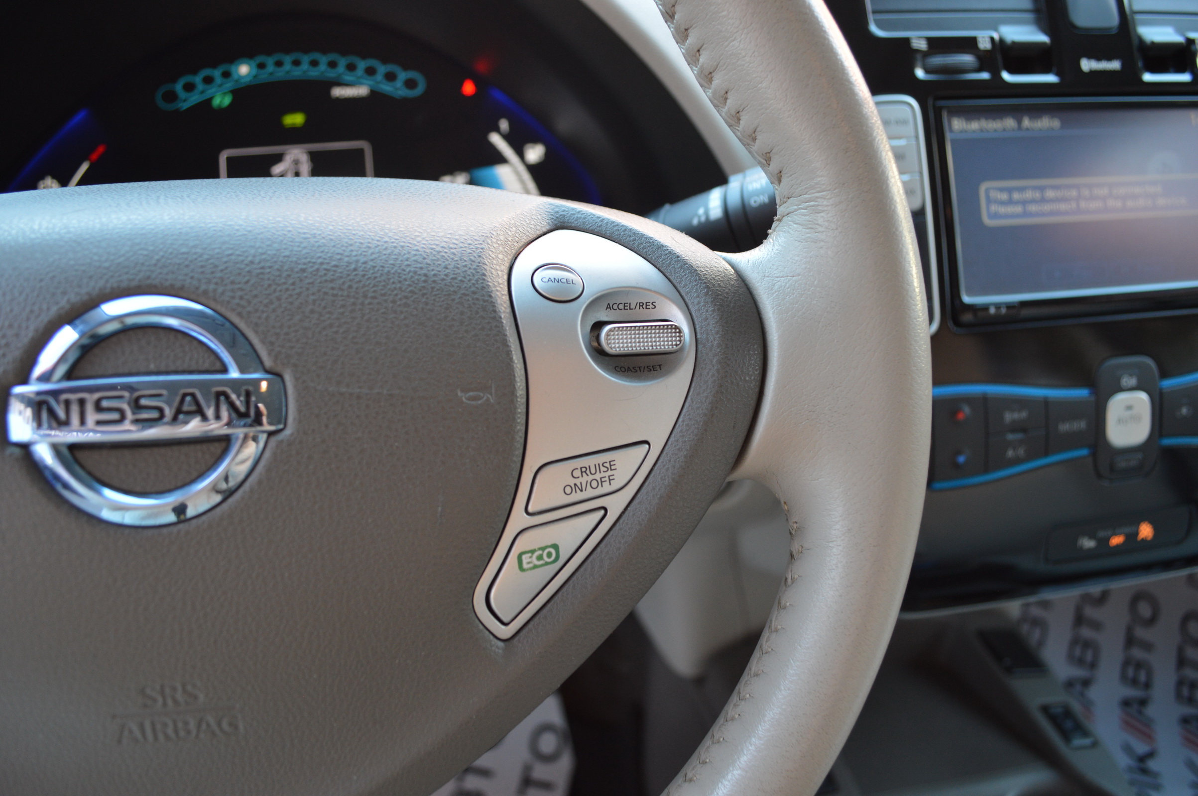 Під капотом у Leaf Ви побачите маленький електричний мотор, майже безшумний. Так само, тут немає звичної коробки передач. Замість КПП в салоні ви побачите джойстик, що дозволяє вибирати режими пересування - Eco або Drive, і задню передачу. Змінюючи режими водіння, ви змінюєте роботу двигуна-батареї, кліматичну систему автомобіля, і т.д., що дозволяє економити більше енергії. До речі, зарядка батареї займе близько восьми годин від звичайної розетки, і 30 хвилин на спеціальній зарядної станції.