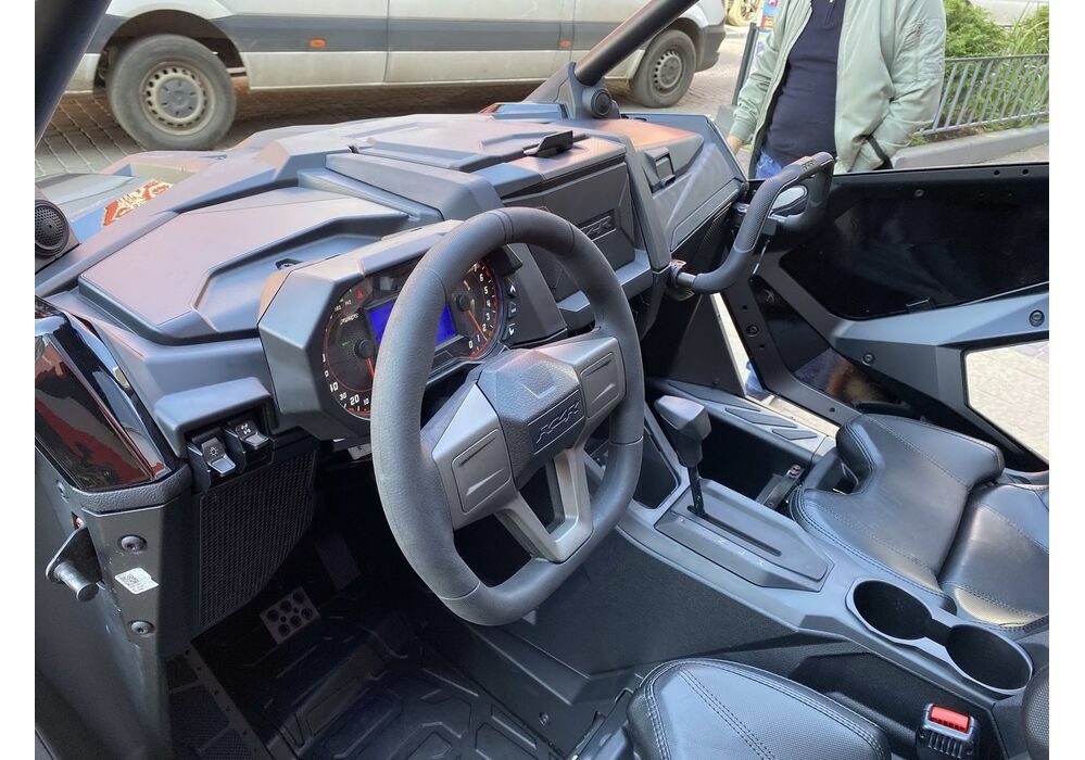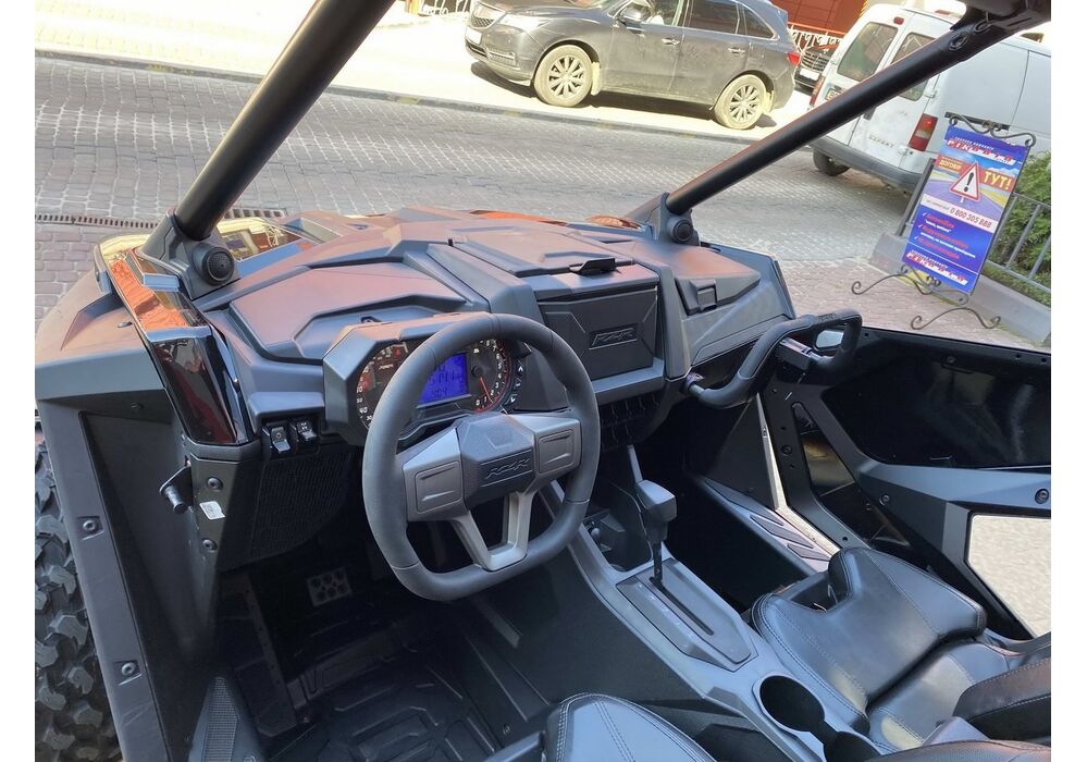 Приборна панель Polaris rzr pro xp 2020 нова, з великим відсіком для зберігання, поручні мають більш зручну форму і їх легше відрегулювати. Рульове колесо має новий дизайн і покращений функціонал. Кермо має кнопки управління системами і регулюється за кутом нахилу і вильоту. Панель має більше місць для додаткових вимикачів. Цифровий пристрій Ride Command (модель Ultimate) має передню і задню камери, а також функцію "групова поїздка", яка працює без сигналу стільникового зв'язку, як Trail Tech Voyager Pro.
