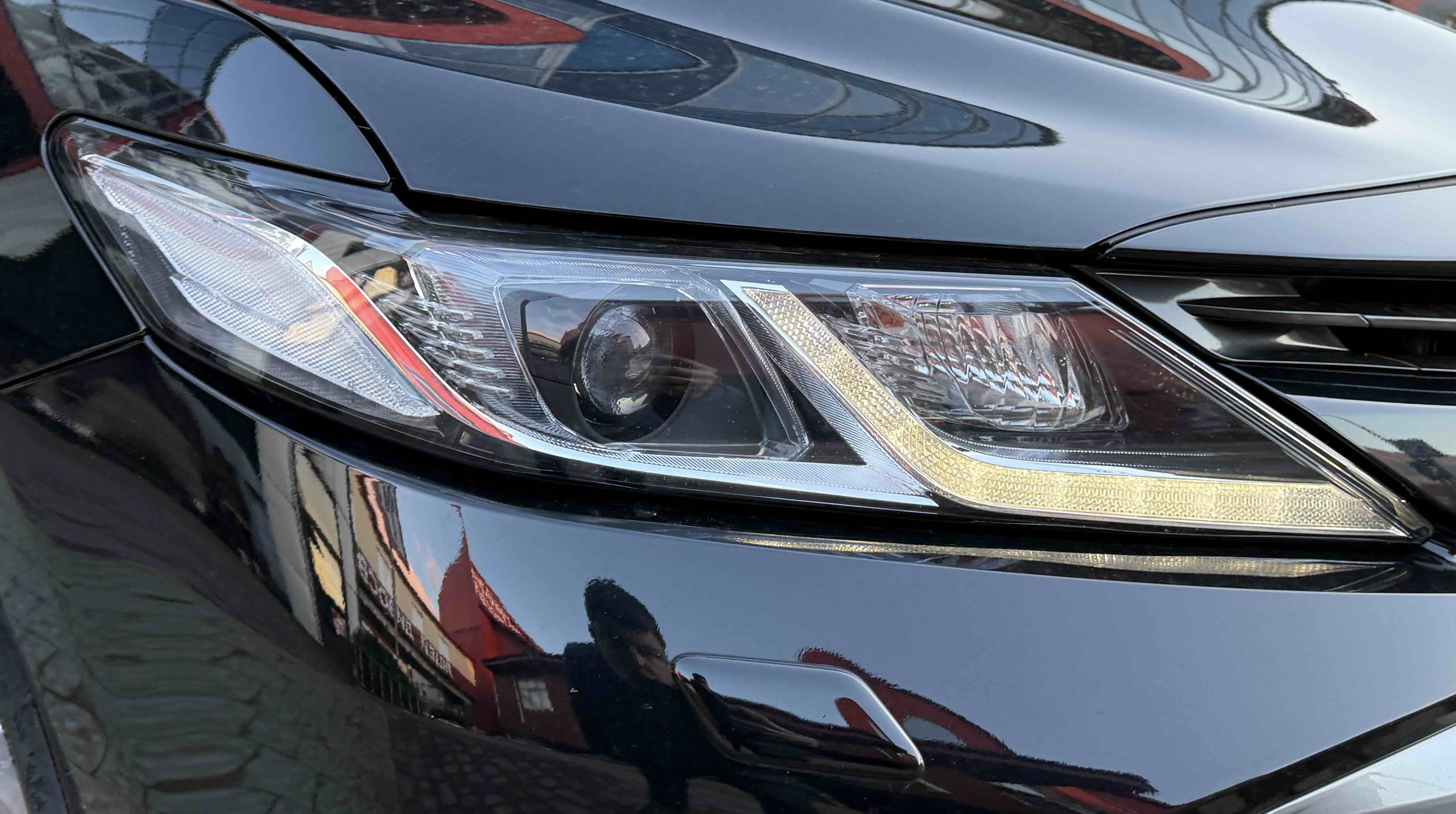 Седан став виглядати значно виразніше, з'явився динамічний силует, хижий погляд, здається що з такими величезними гратами повітрозабірника, немов кит, він може проковтнути все на своєму шляху. Але при всьому цьому в образі чітко простежується фірмовий силует Camry.Восьме покоління побудовано на модульній платформі ТNGA (Toyota New Global Architecture), точніше на її середньорозмірні різновиди під індексом GA-K. За запевненням творців, седан повинен стати більш драйверським.