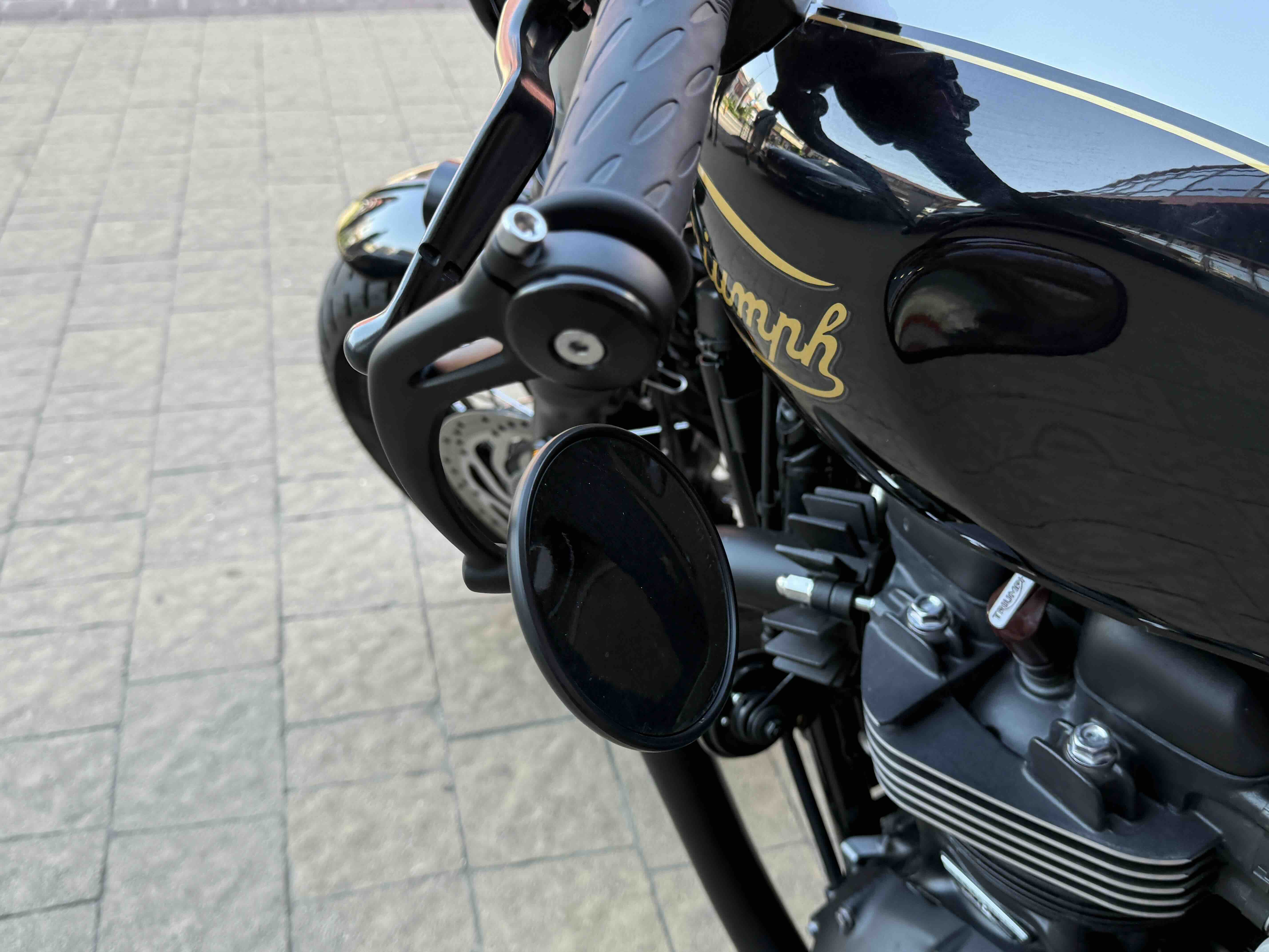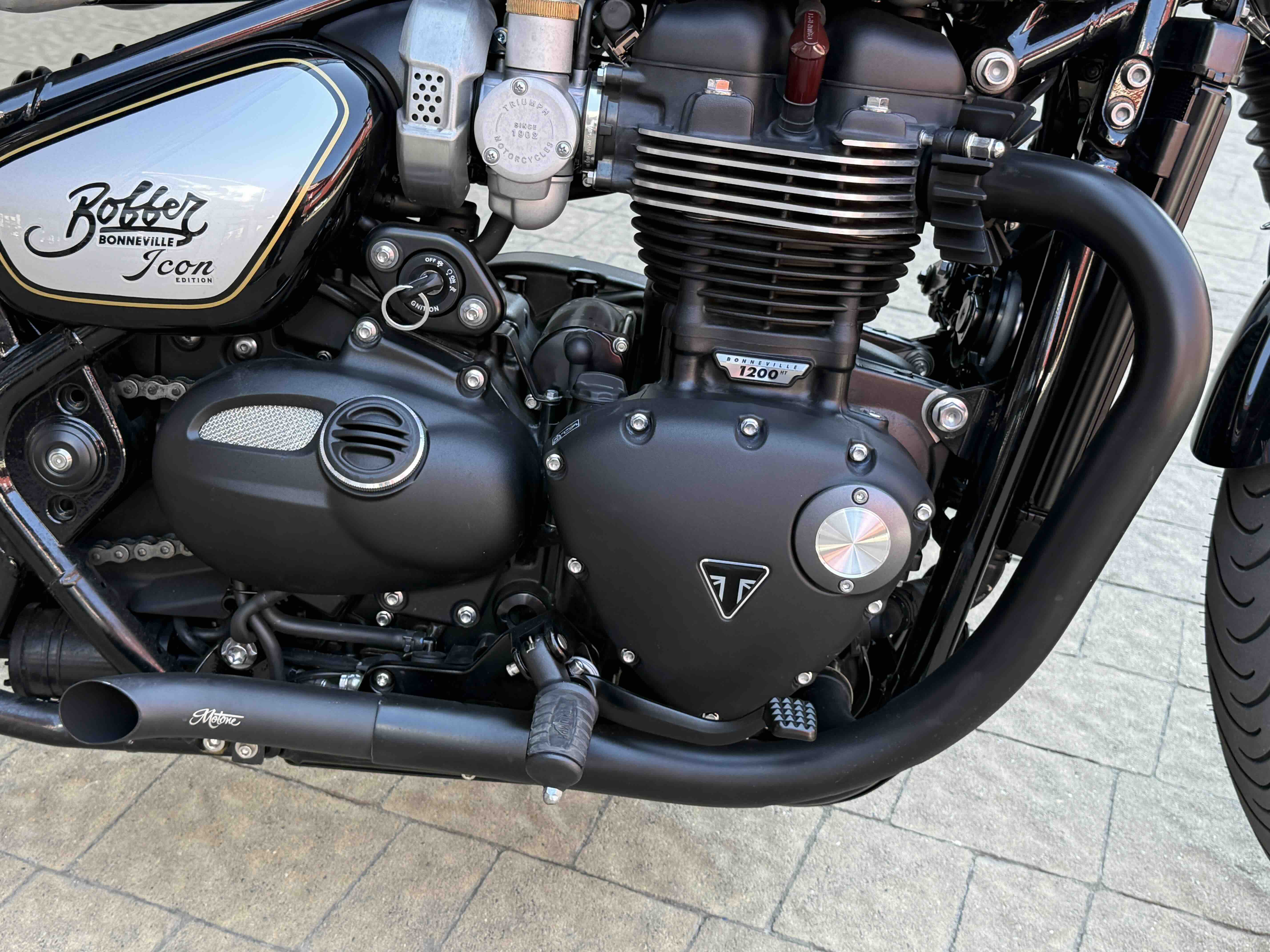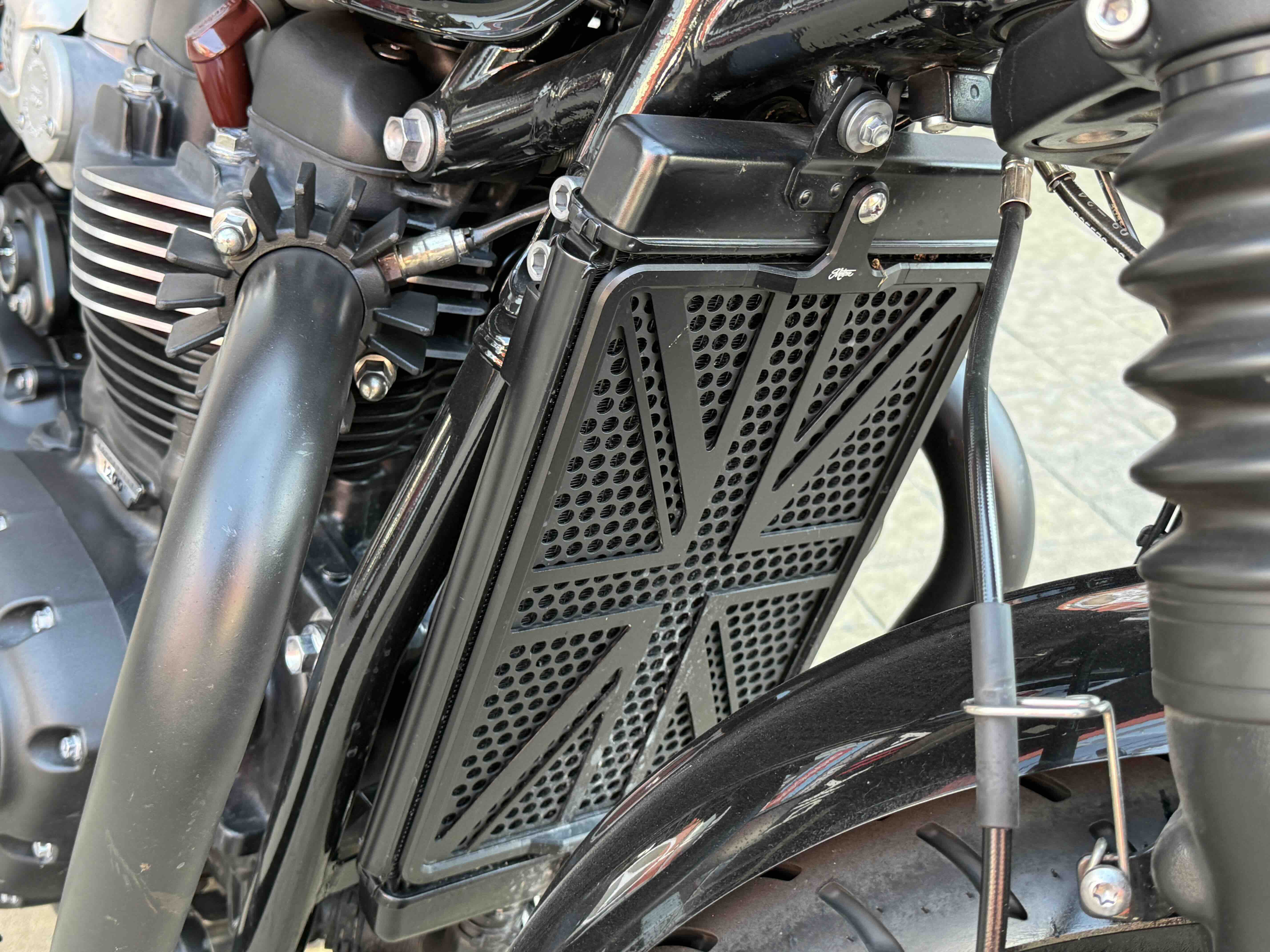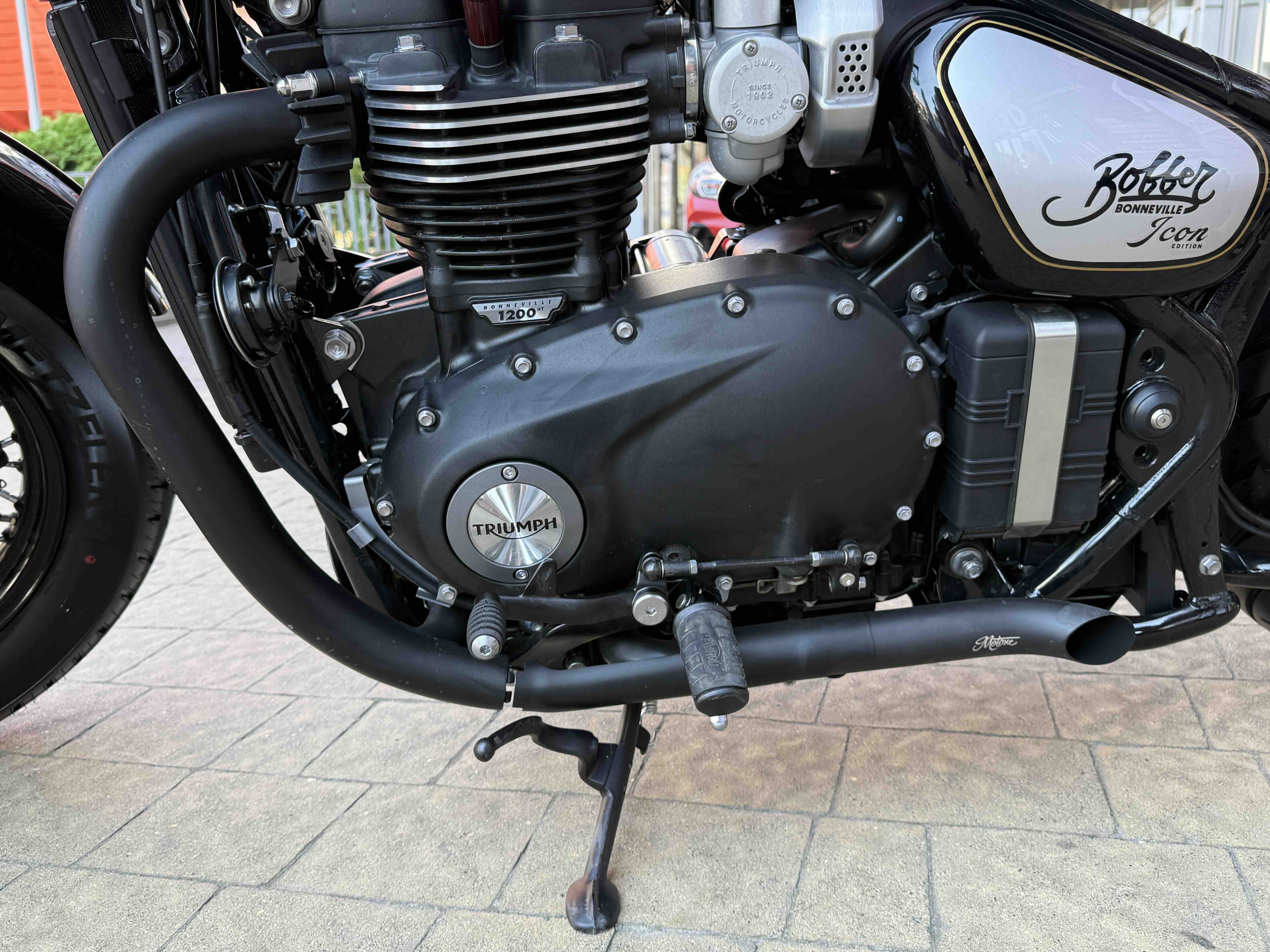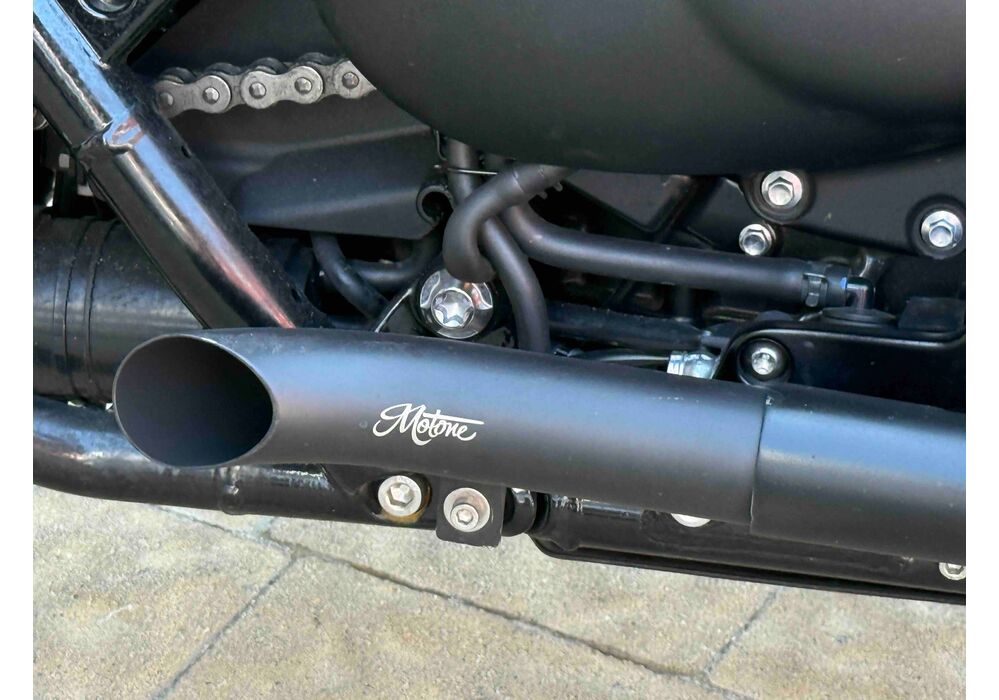 Кастомні деталі від Motone (британське кастом ательє яке спеціалізується на Тріумфах) на 2500 євро ( захист радіатора і дна, замінені поворотники, стопи, сліпони).