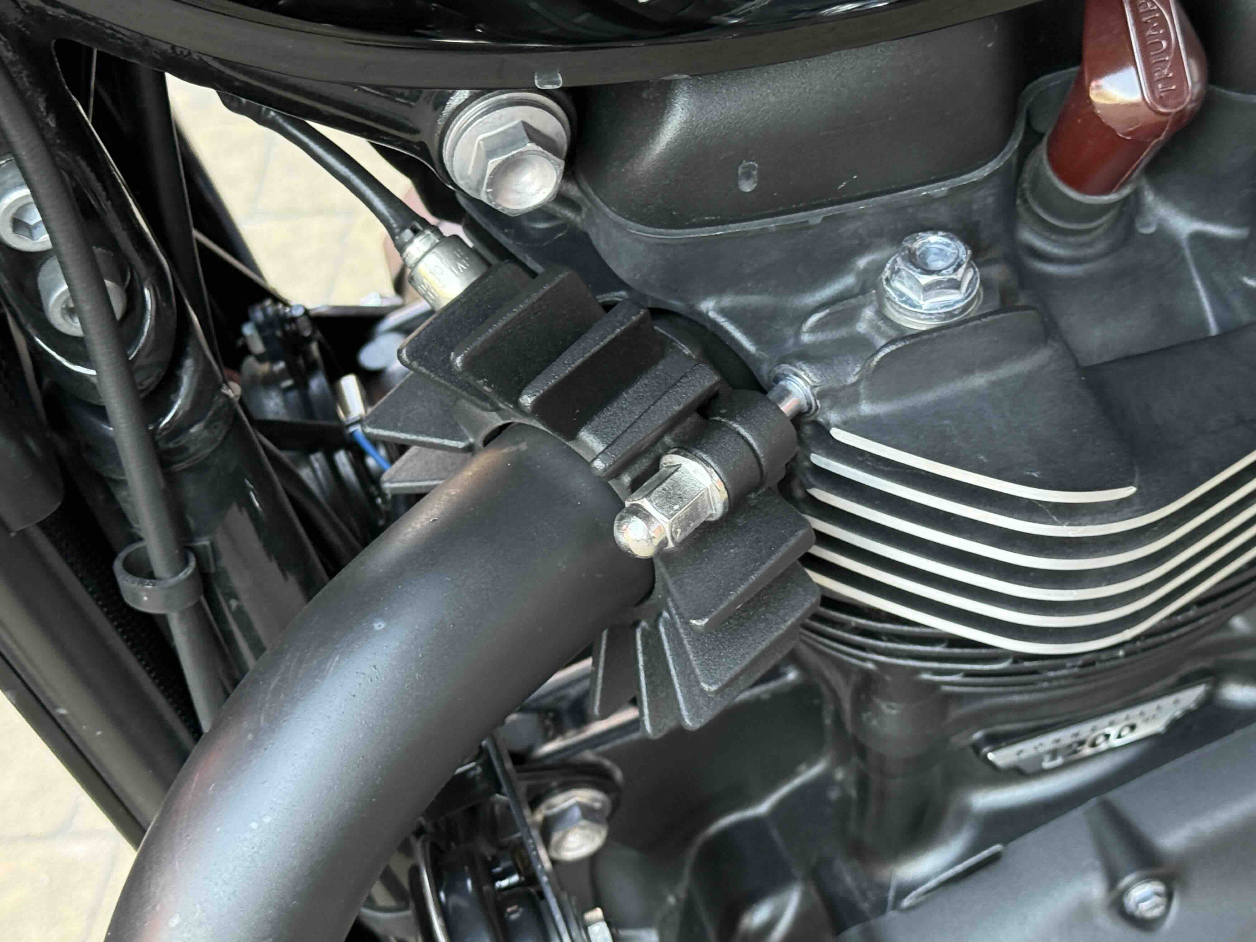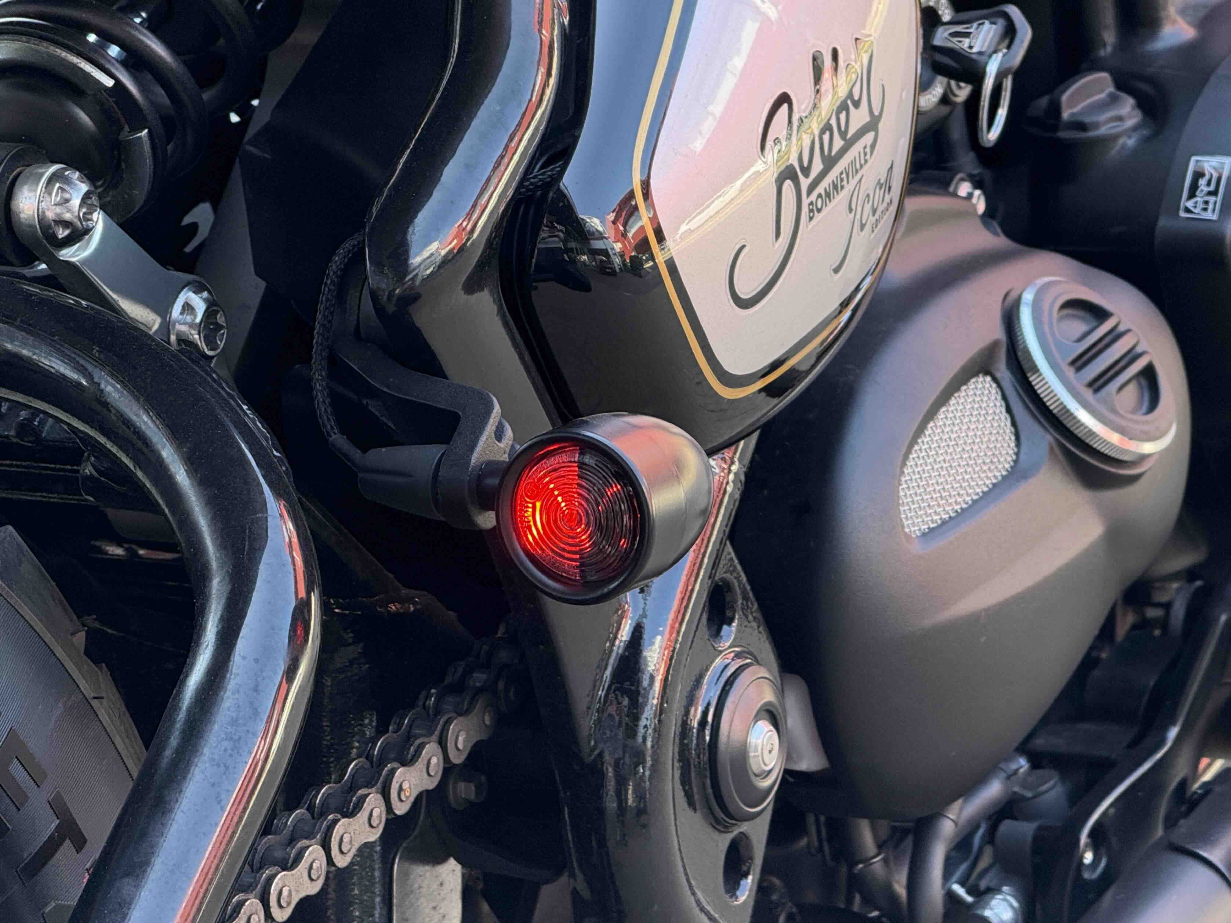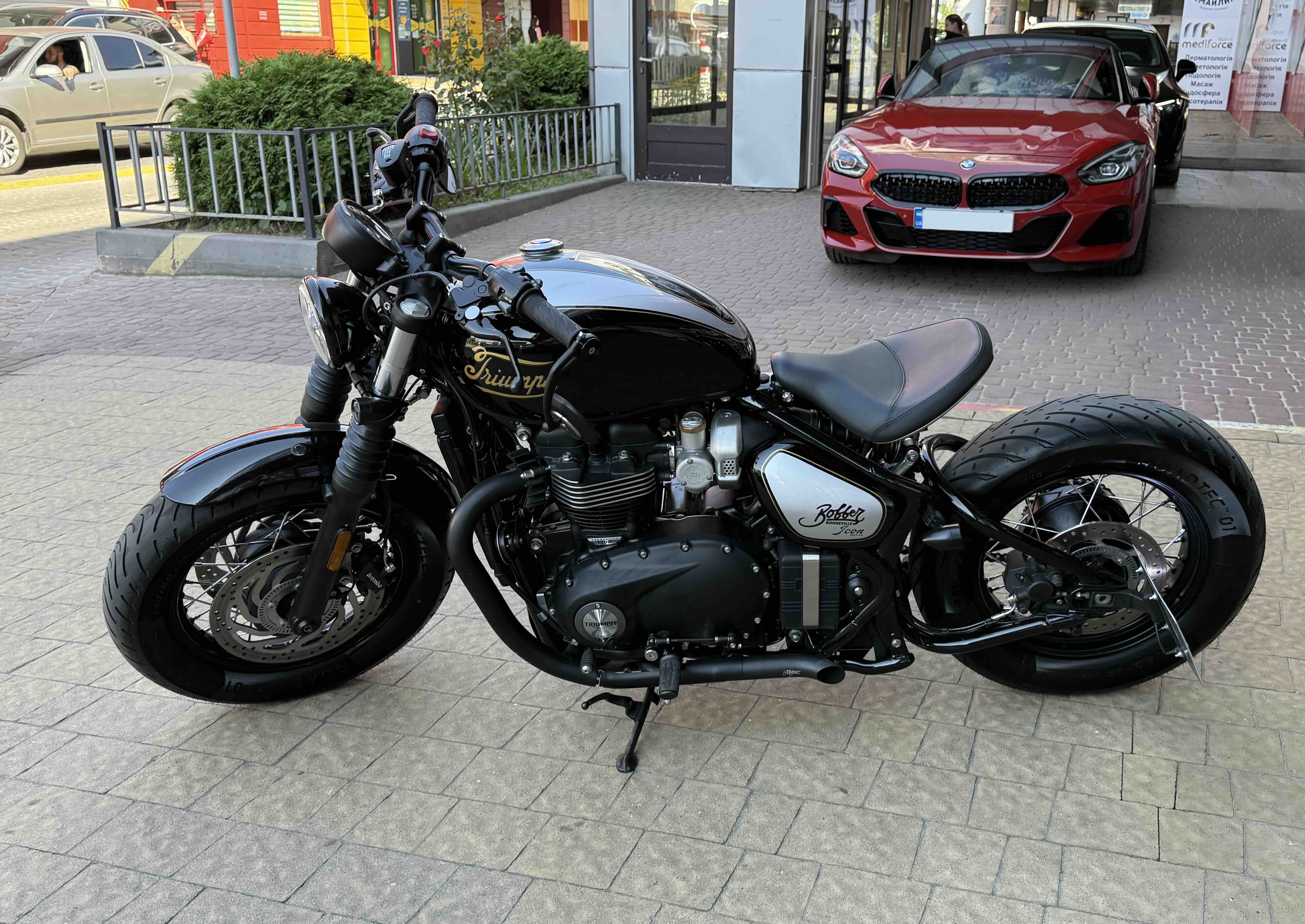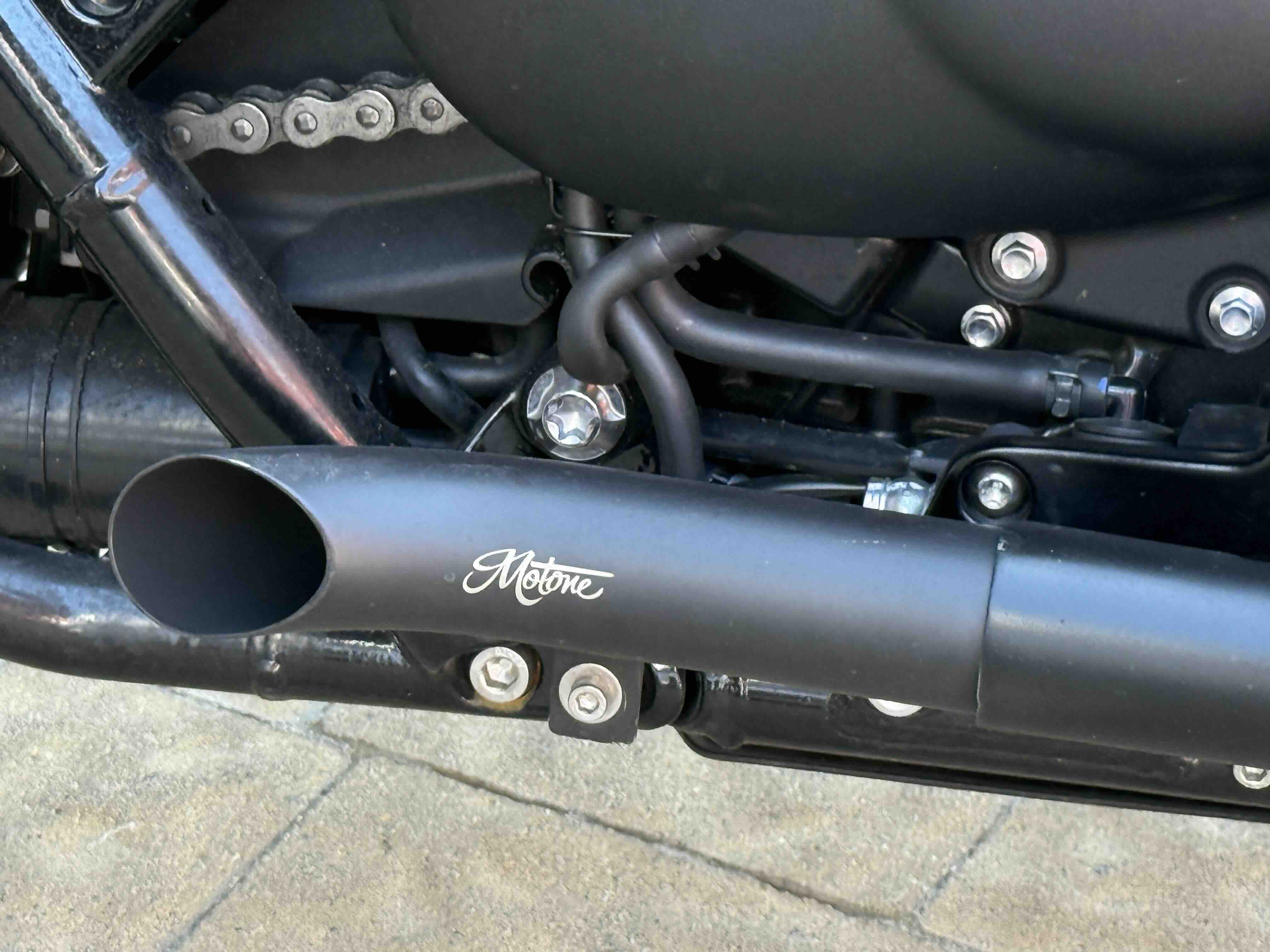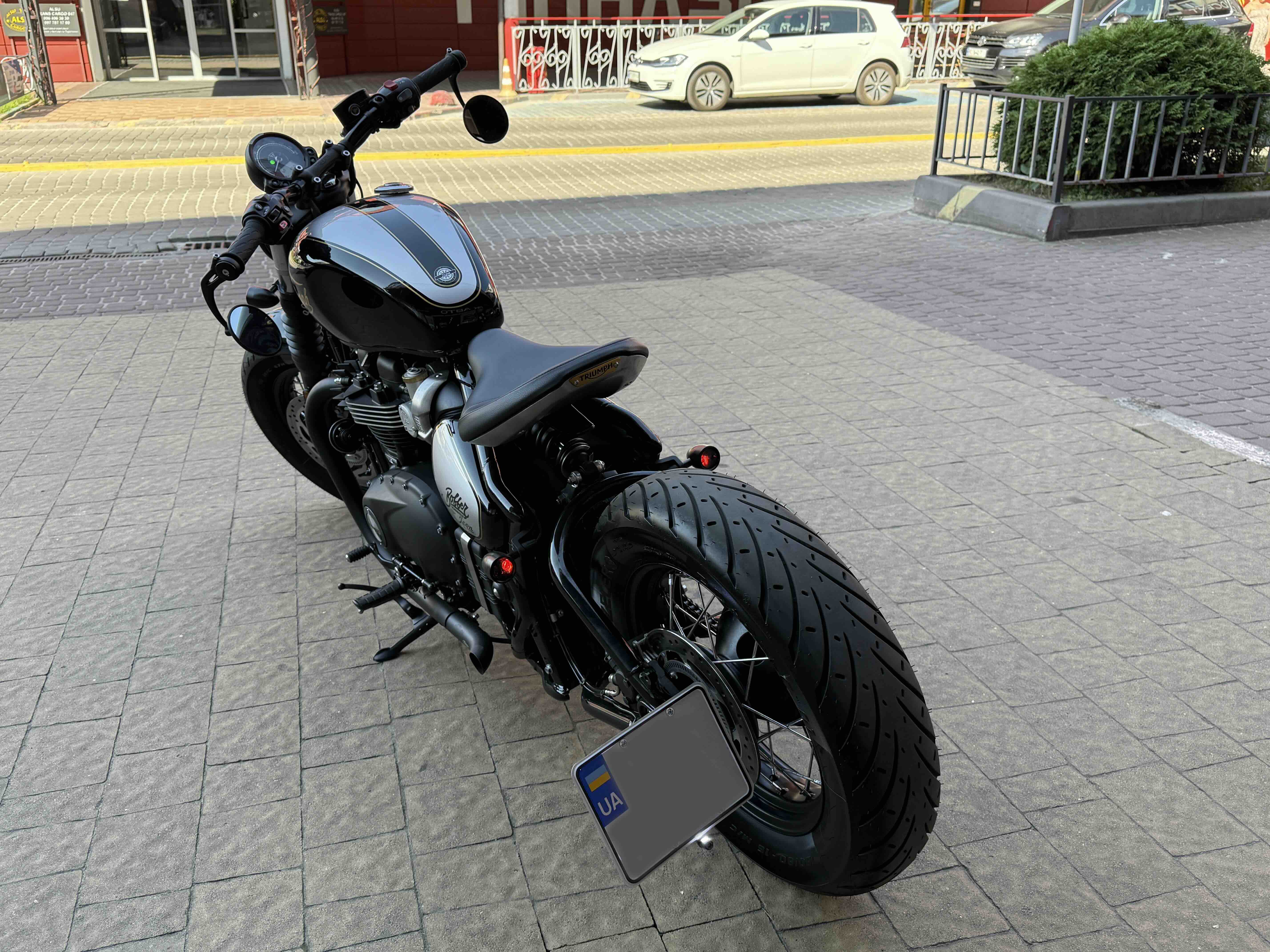Кастомні деталі від Motone (британське кастом ательє яке спеціалізується на Тріумфах) на 2500 євро ( захист радіатора і дна, замінені поворотники, стопи, сліпони).