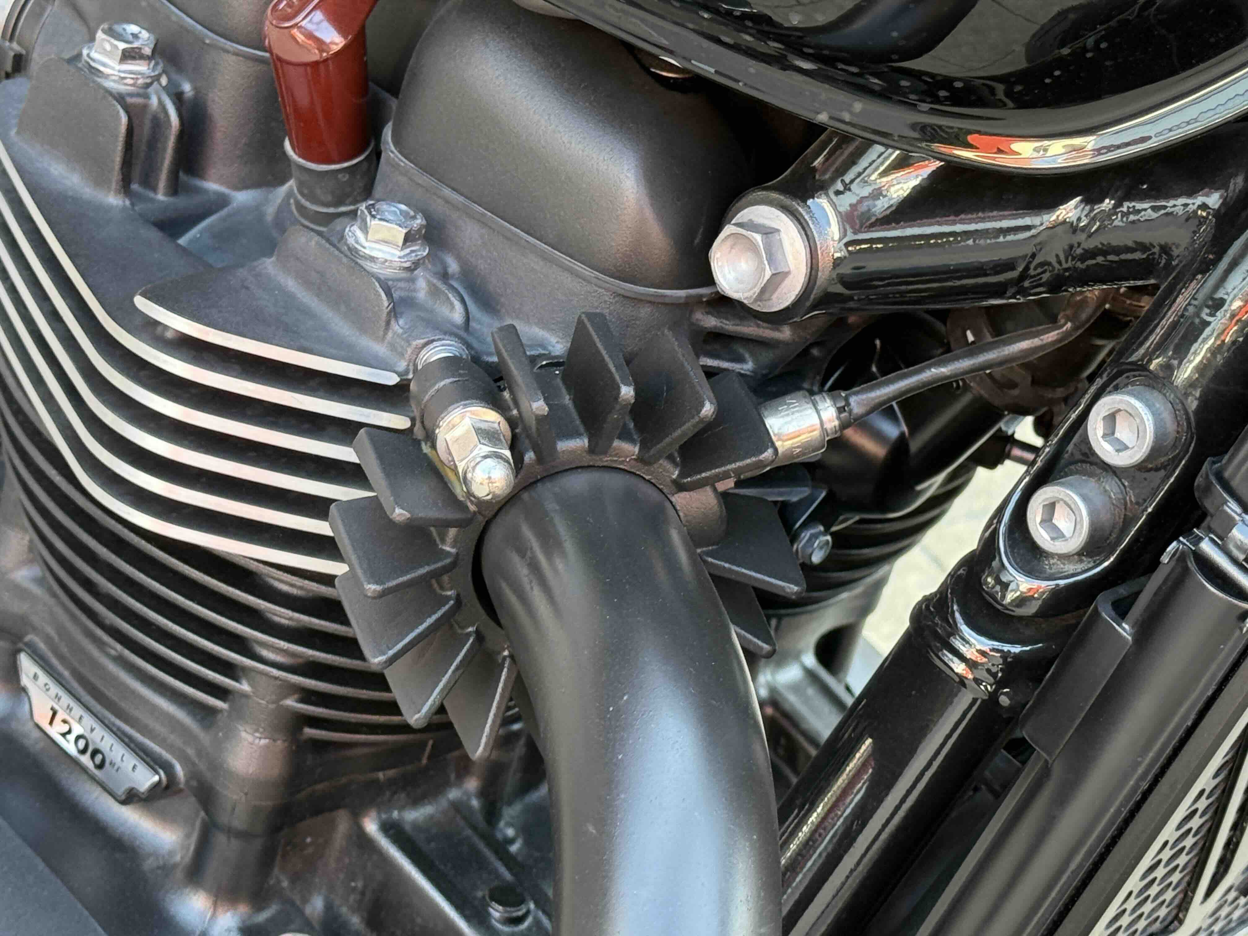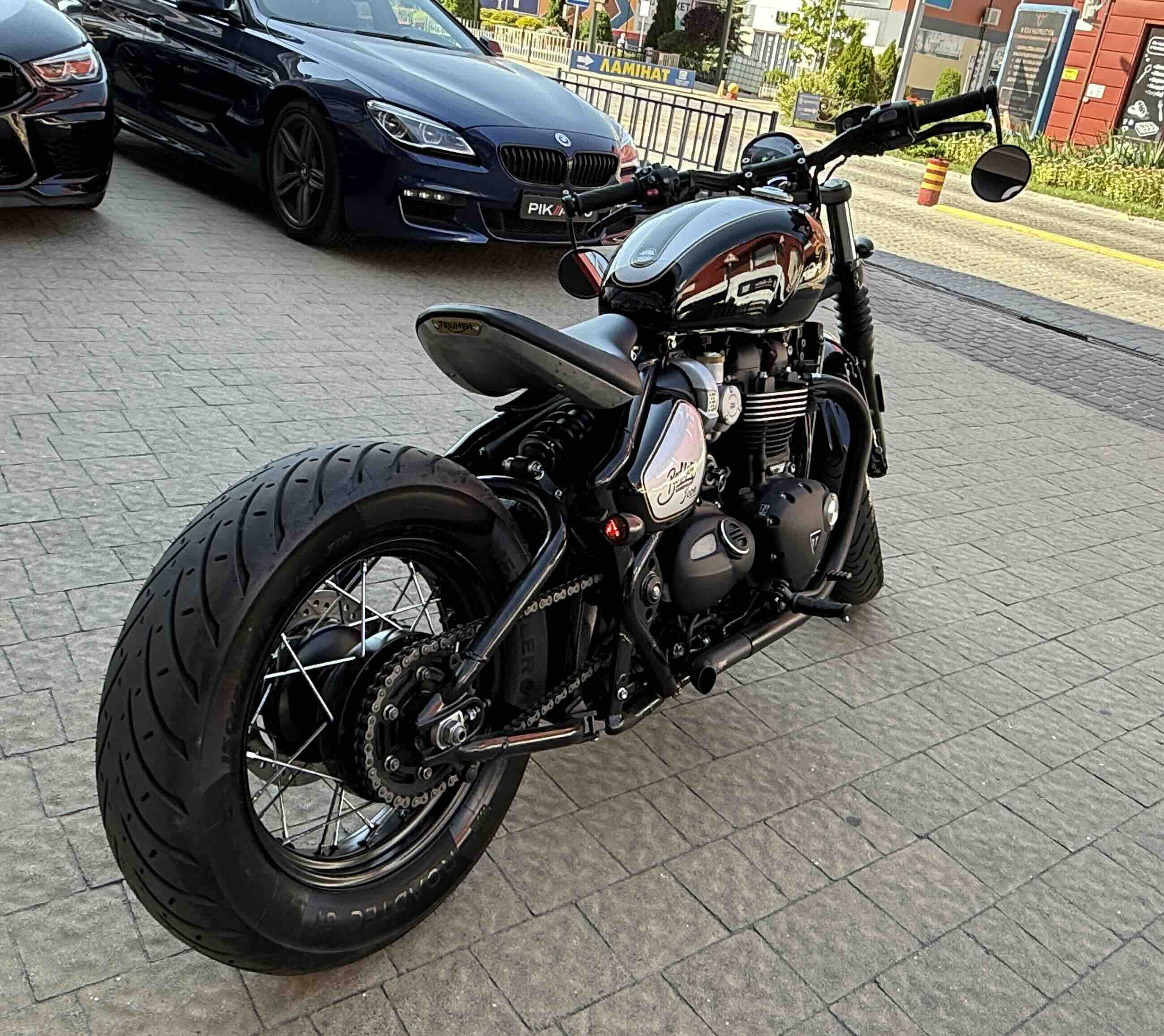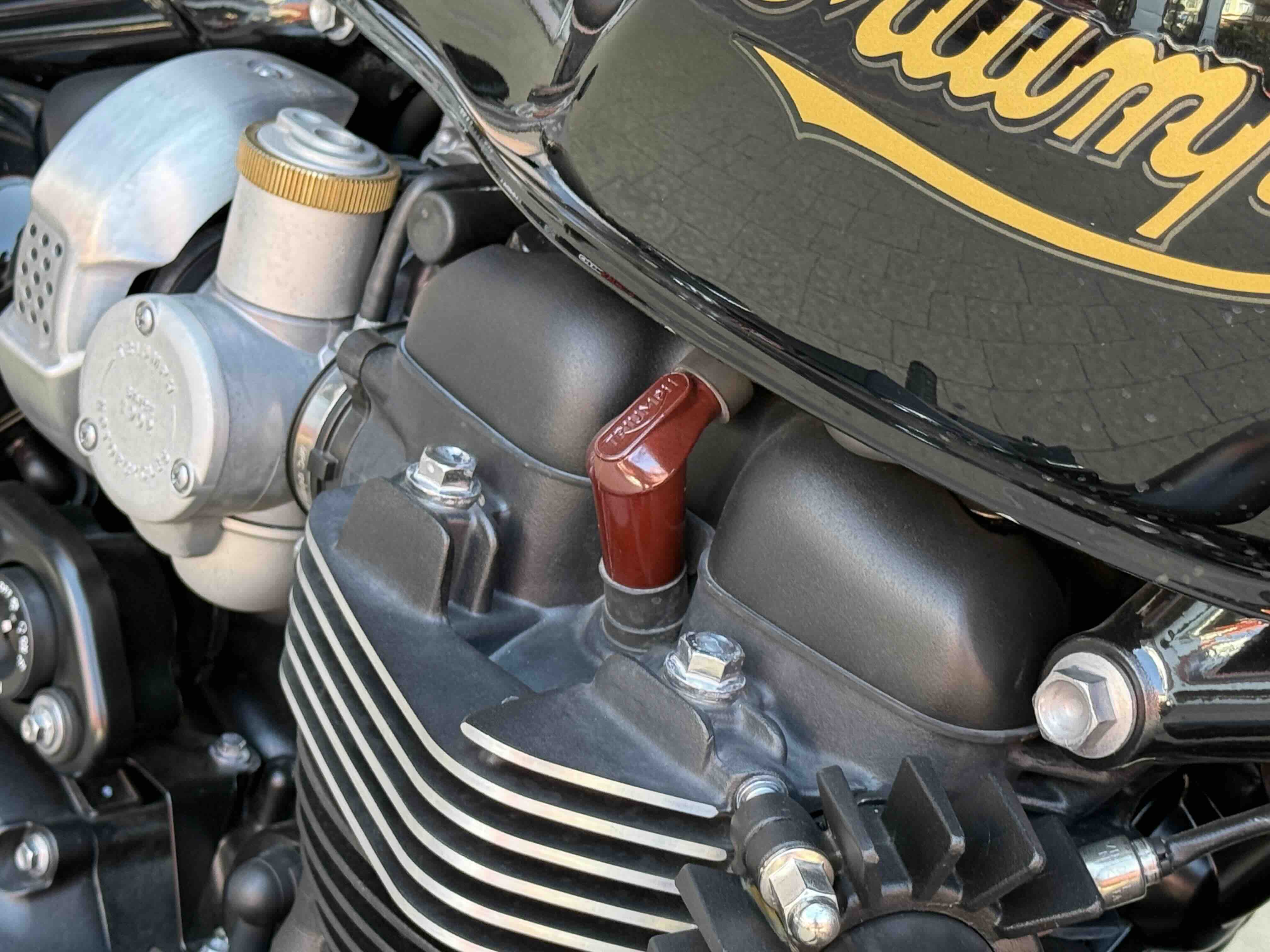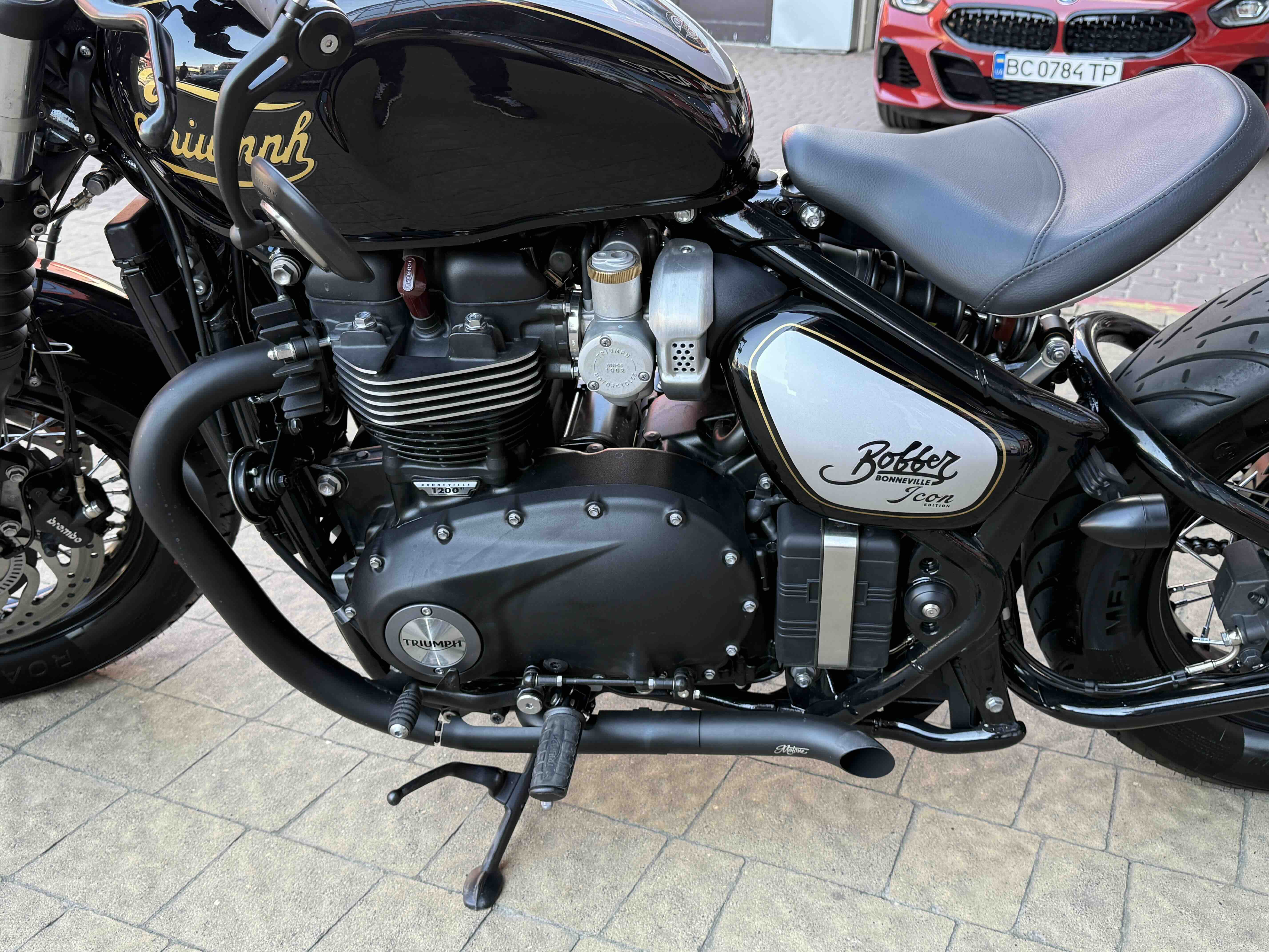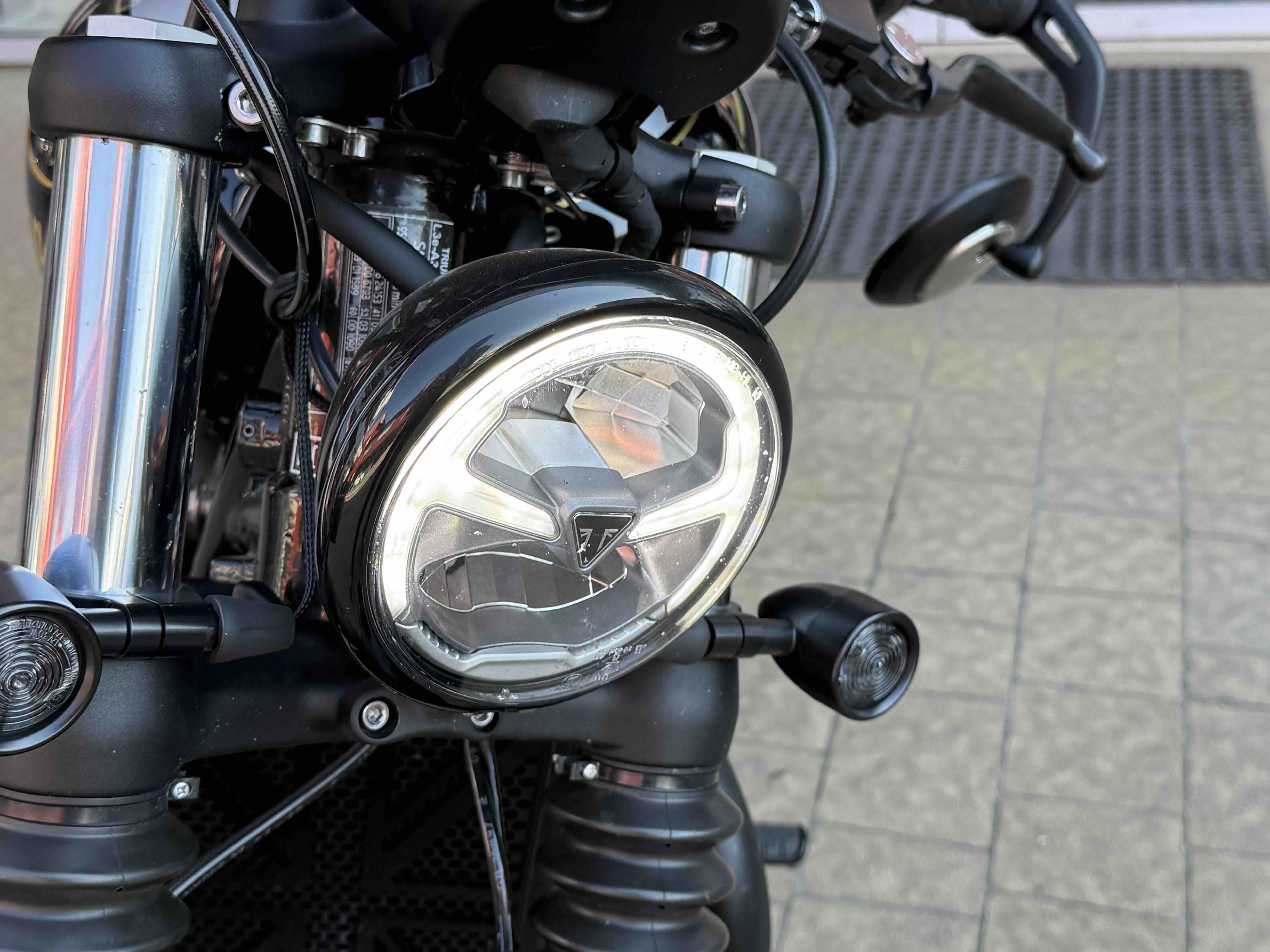 Кастомні деталі від Motone (британське кастом ательє яке спеціалізується на Тріумфах) на 2500 євро ( захист радіатора і дна, замінені поворотники, стопи, сліпони).