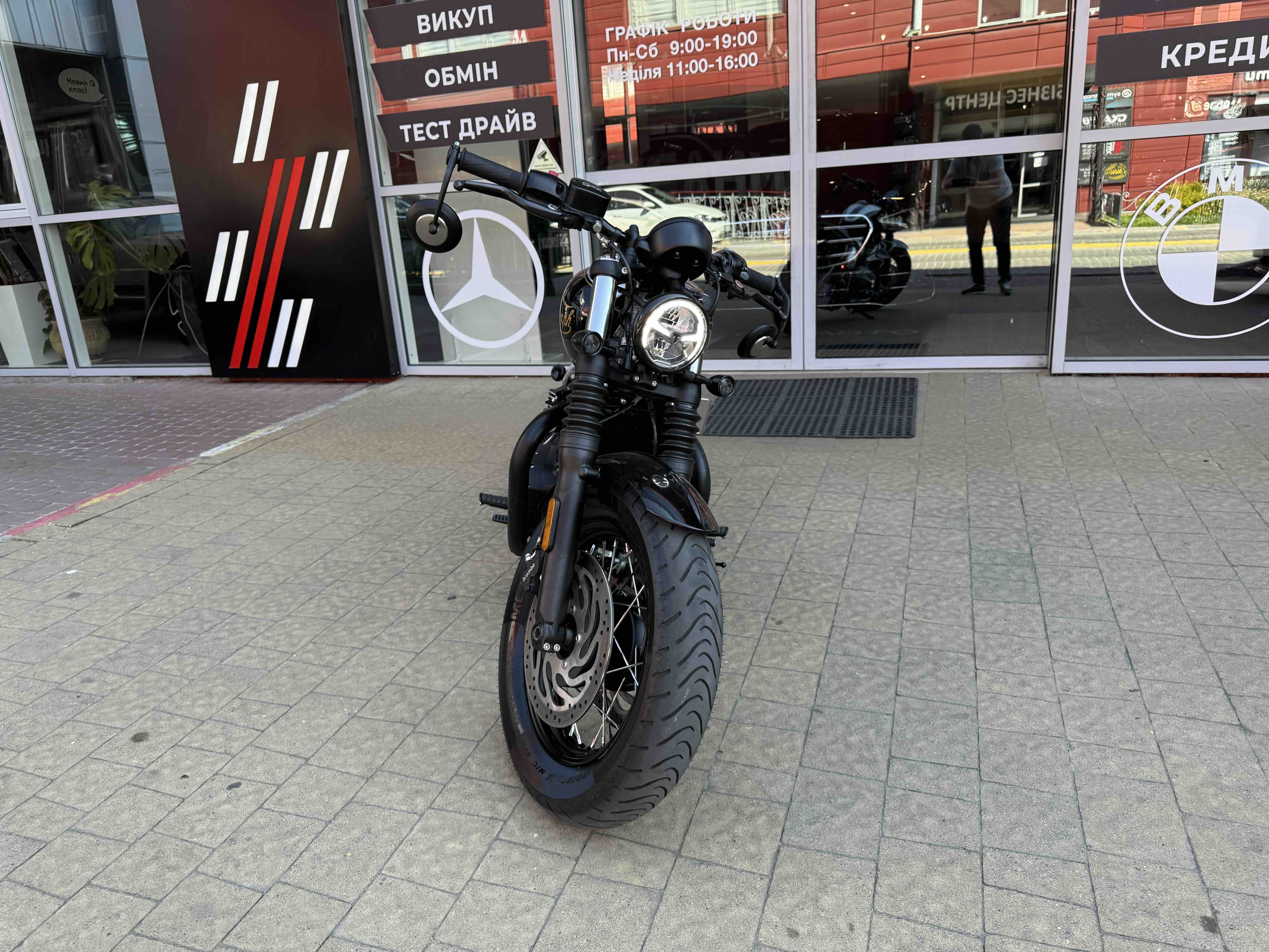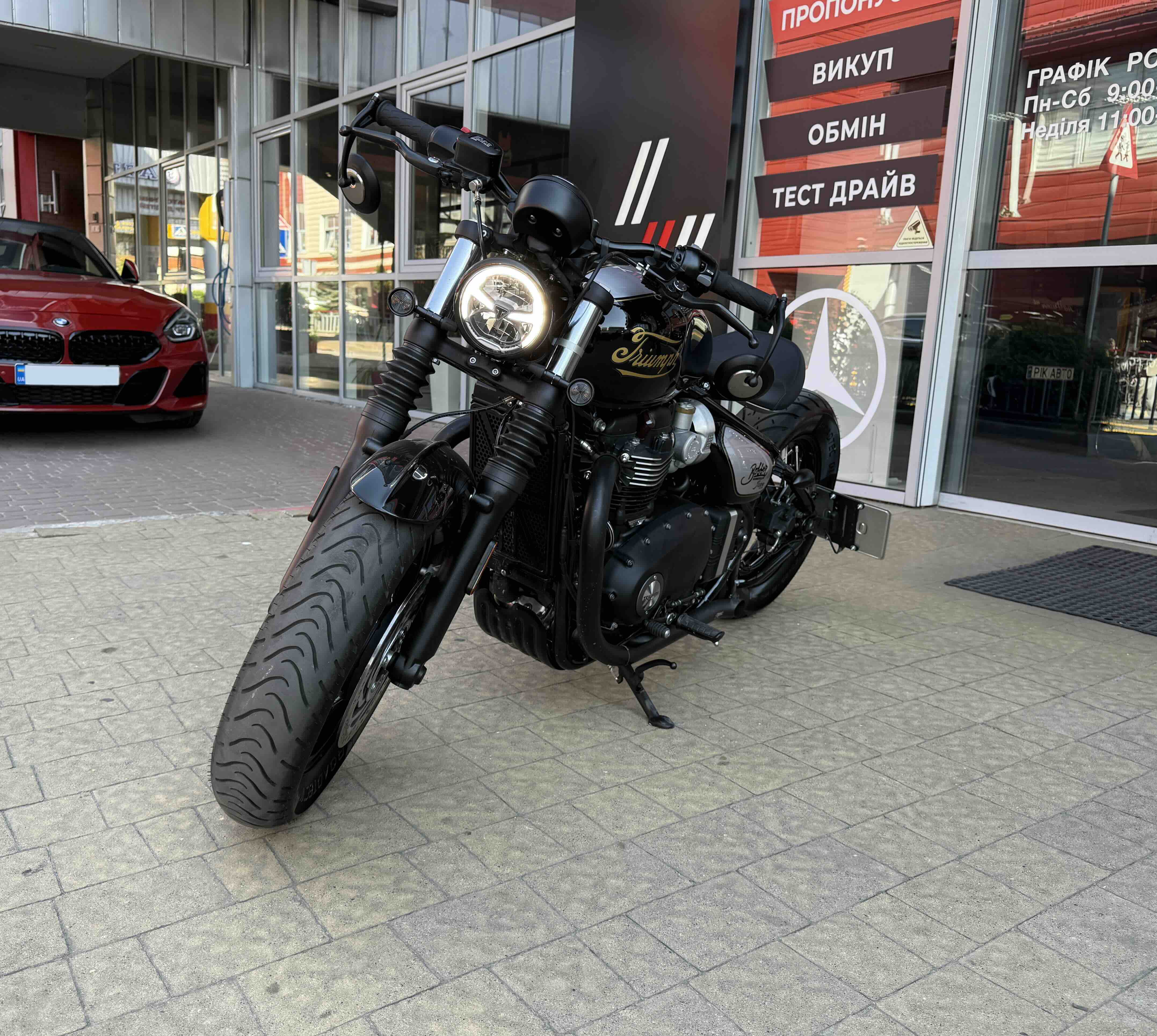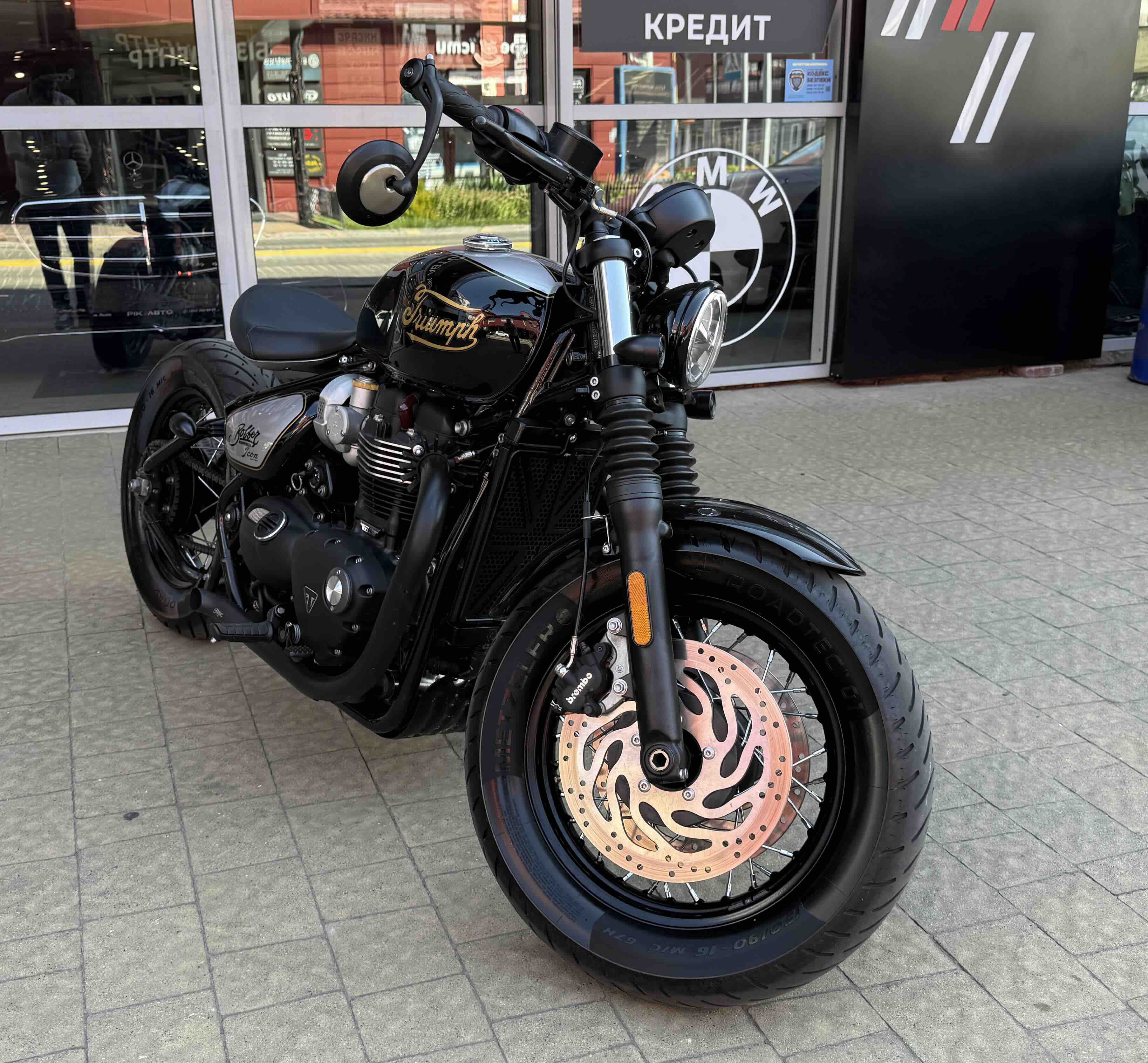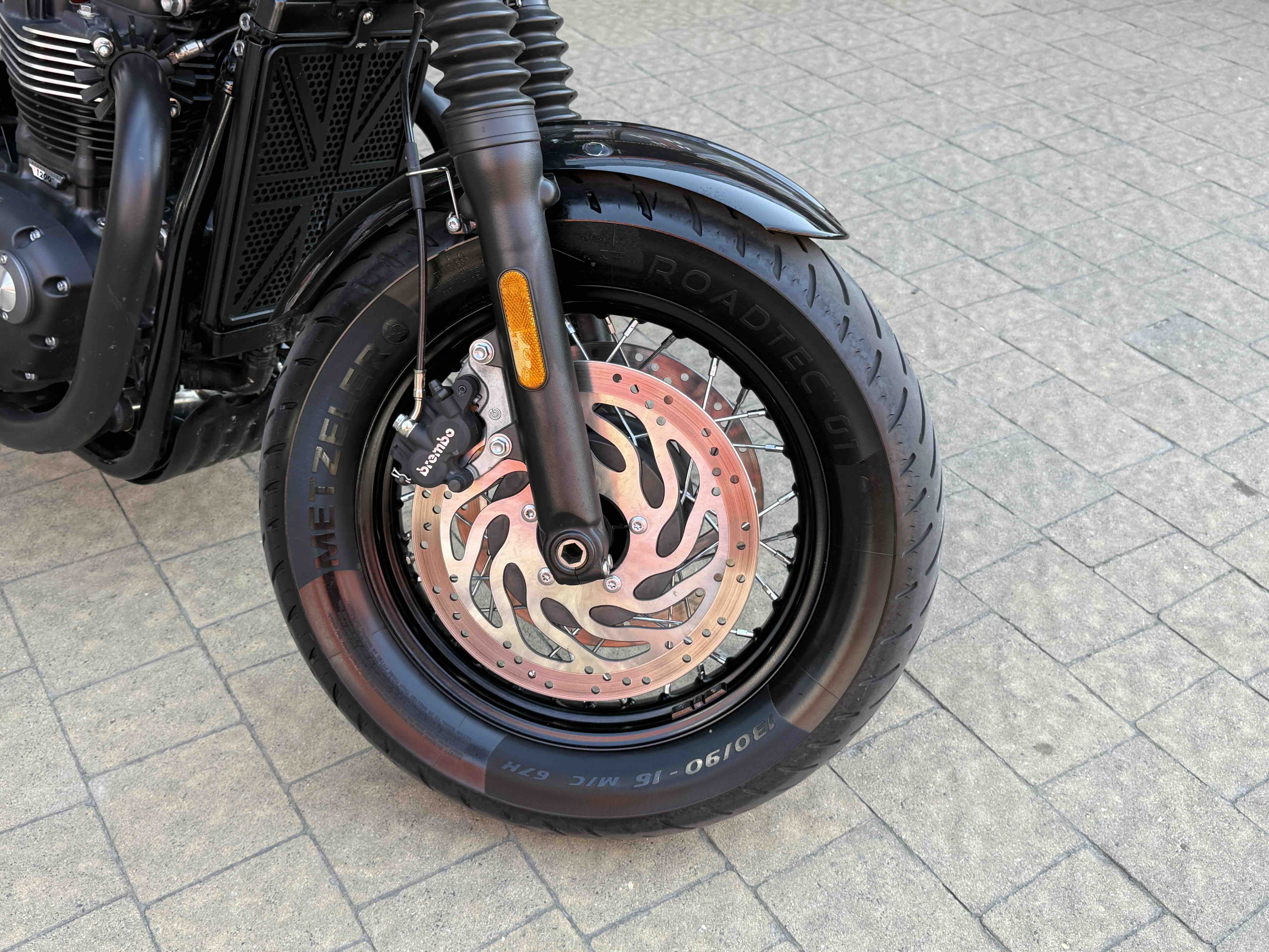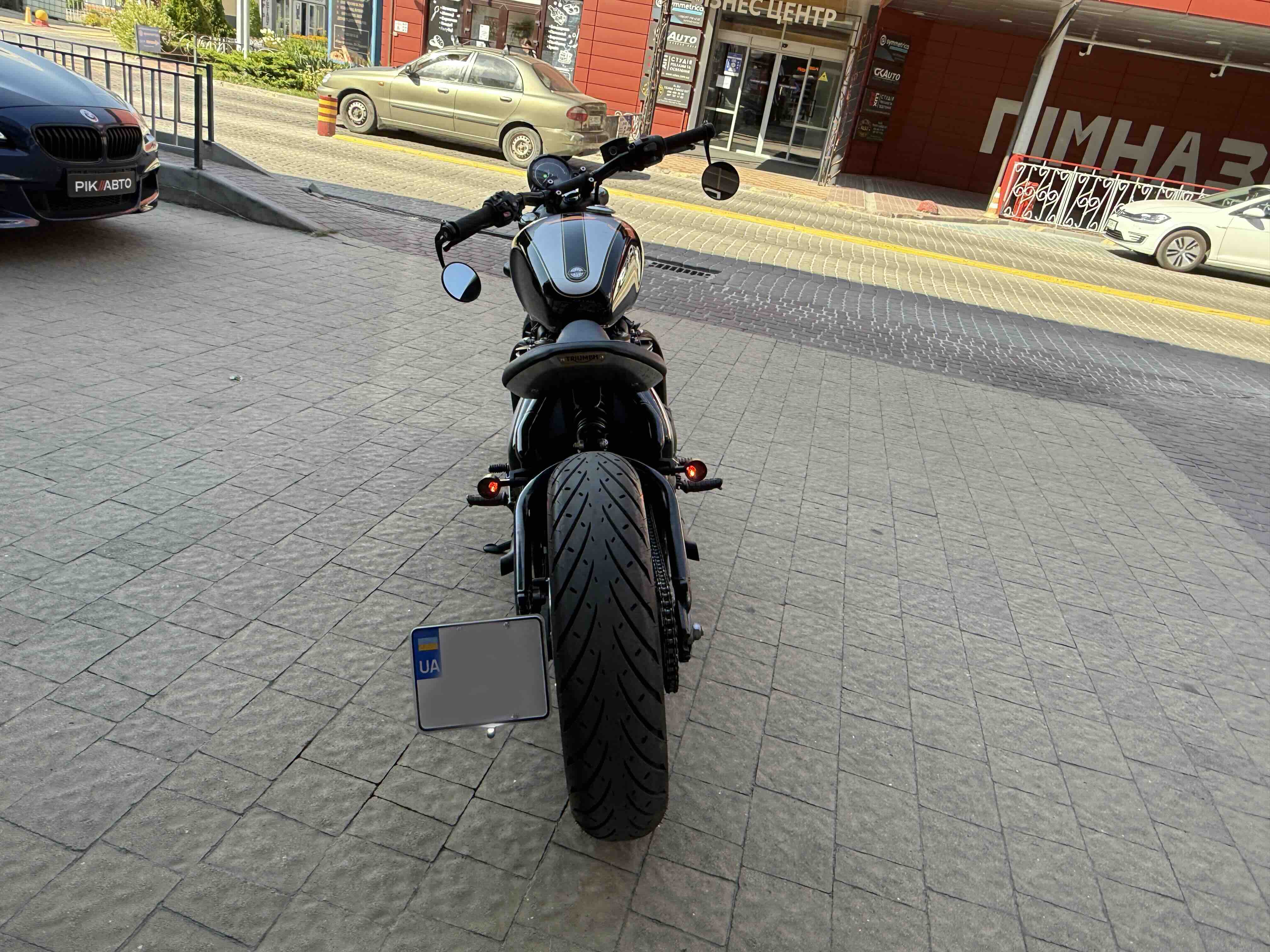 Кастомні деталі від Motone (британське кастом ательє яке спеціалізується на Тріумфах) на 2500 євро ( захист радіатора і дна, замінені поворотники, стопи, сліпони).